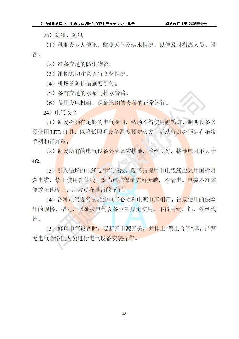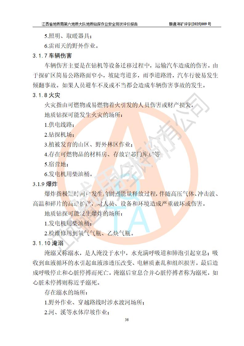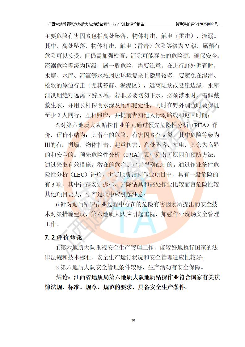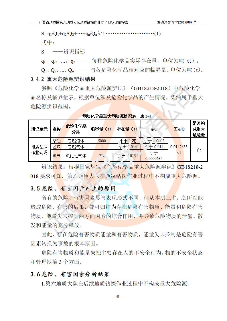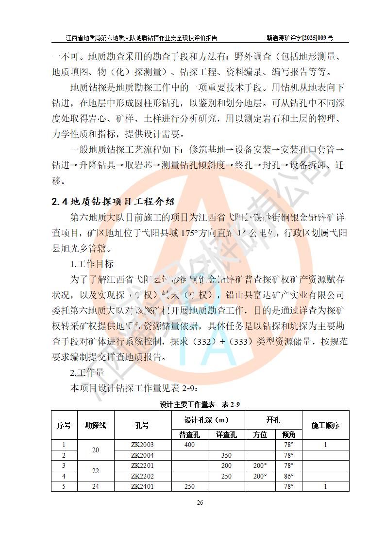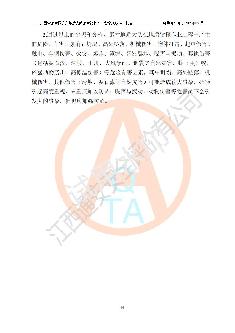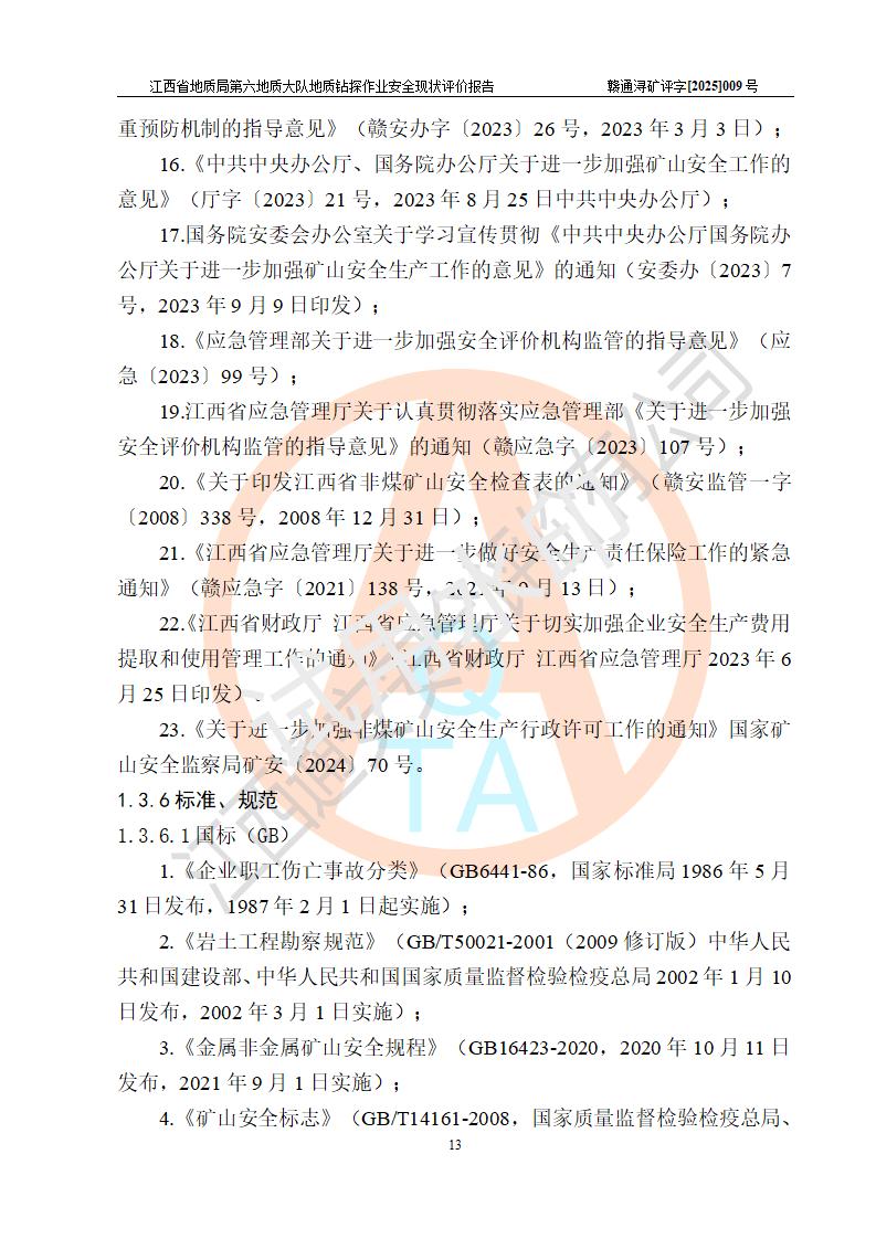 報告名稱 | 江西省地質局第六地質大隊地質鉆探作業(yè)安全現(xiàn)狀評價報告 | |||||