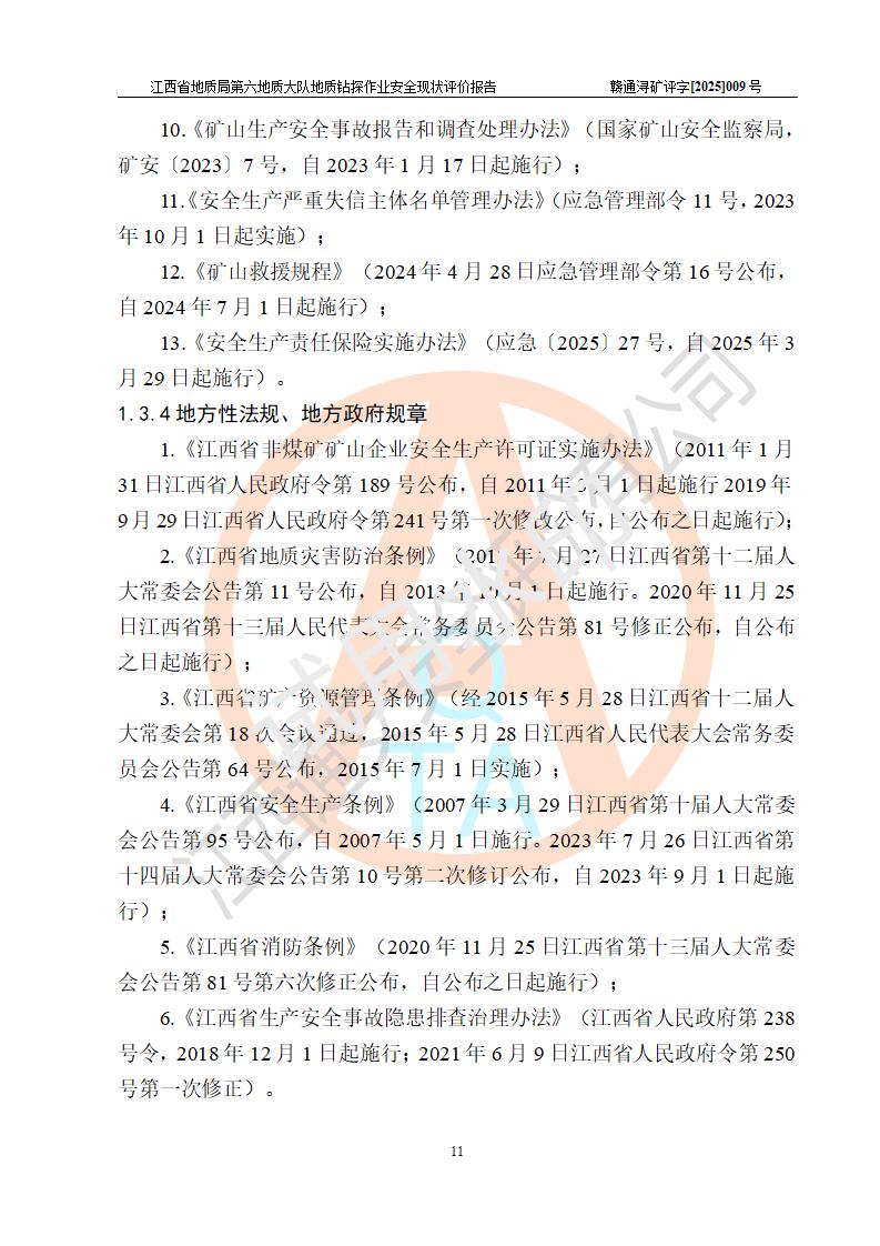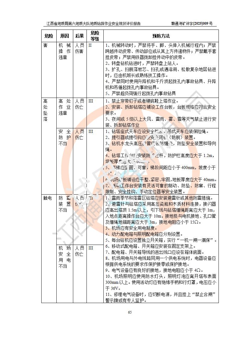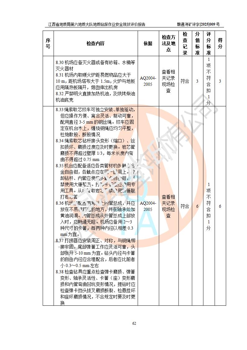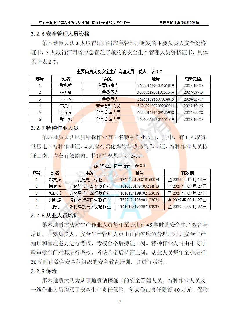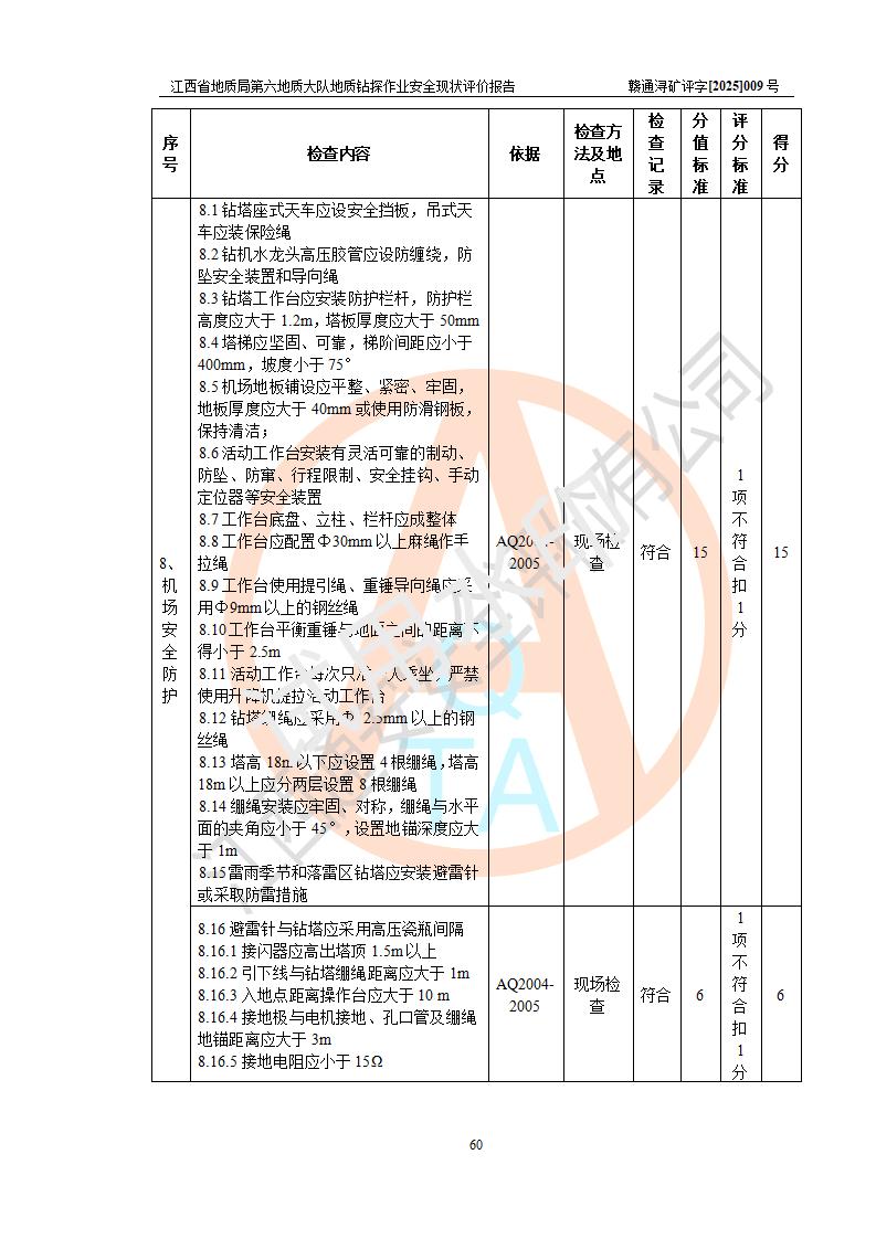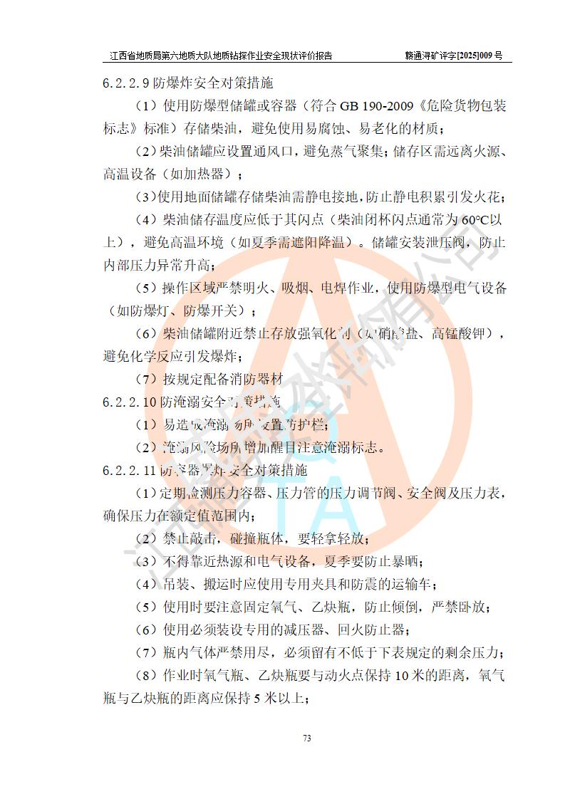 報告名稱 | 江西省地質局第六地質大隊地質鉆探作業(yè)安全現(xiàn)狀評價報告 | |||||