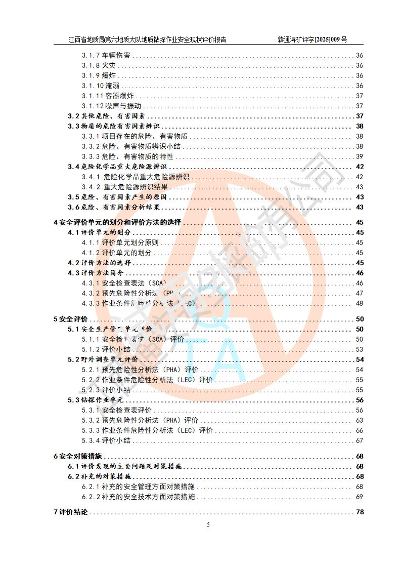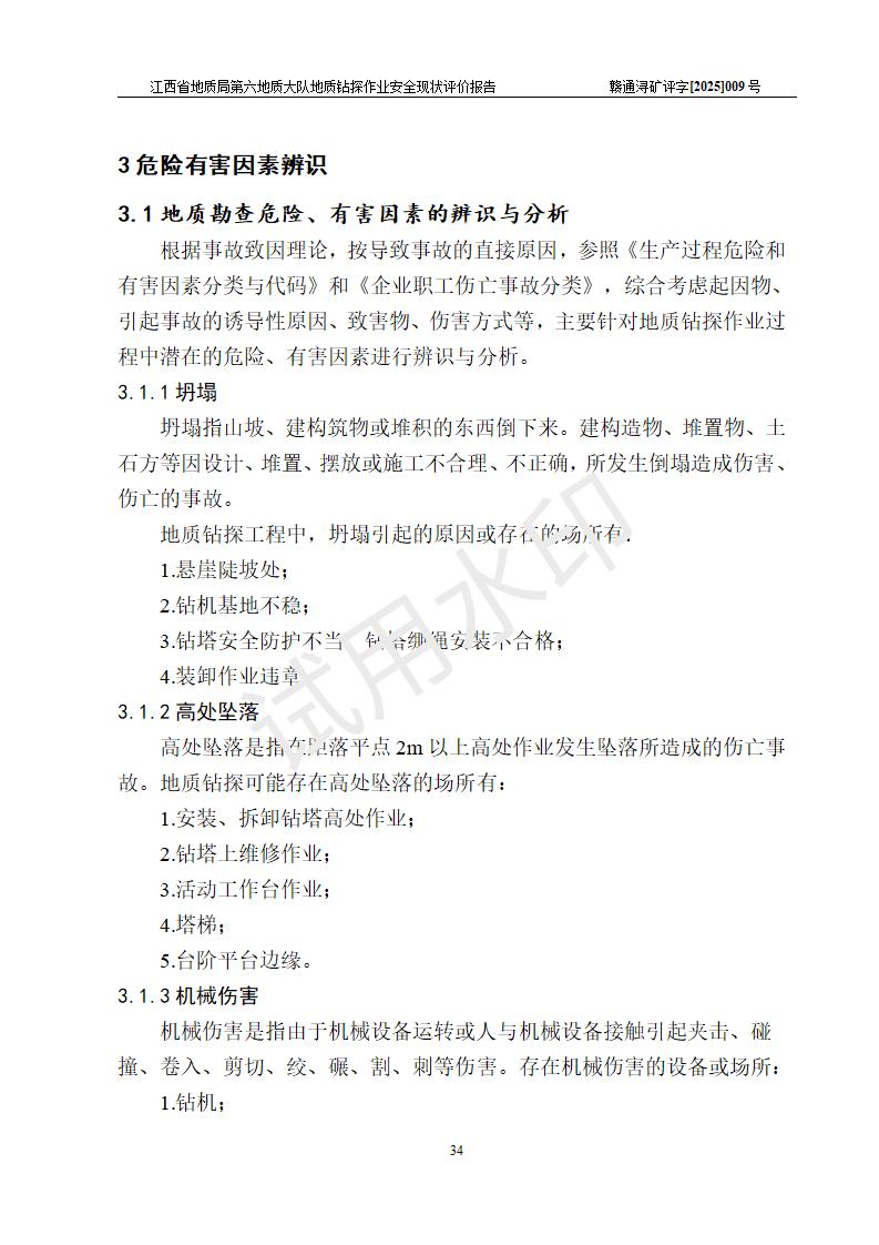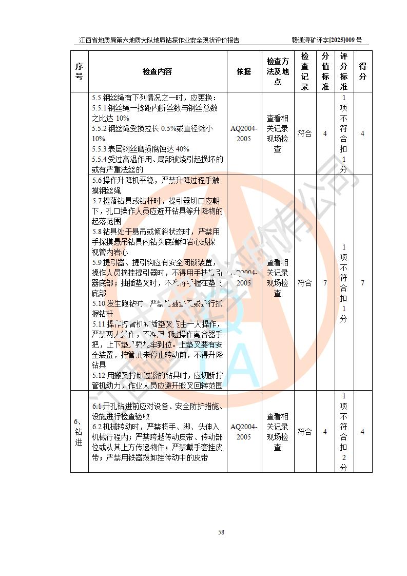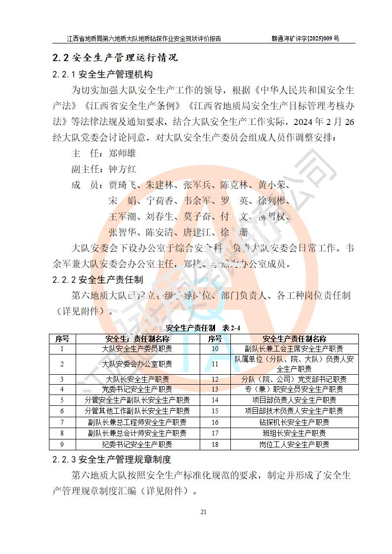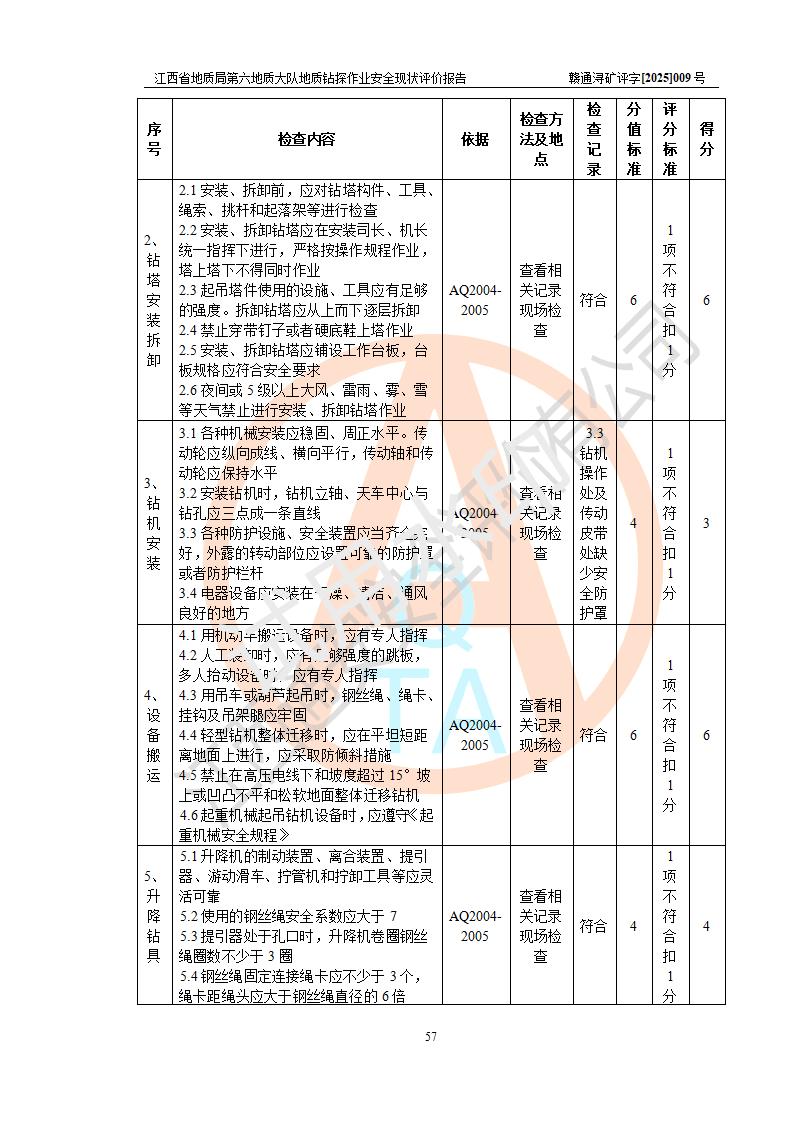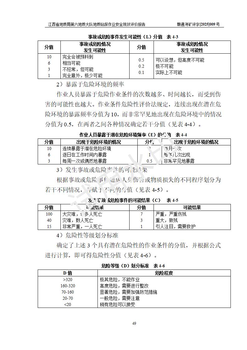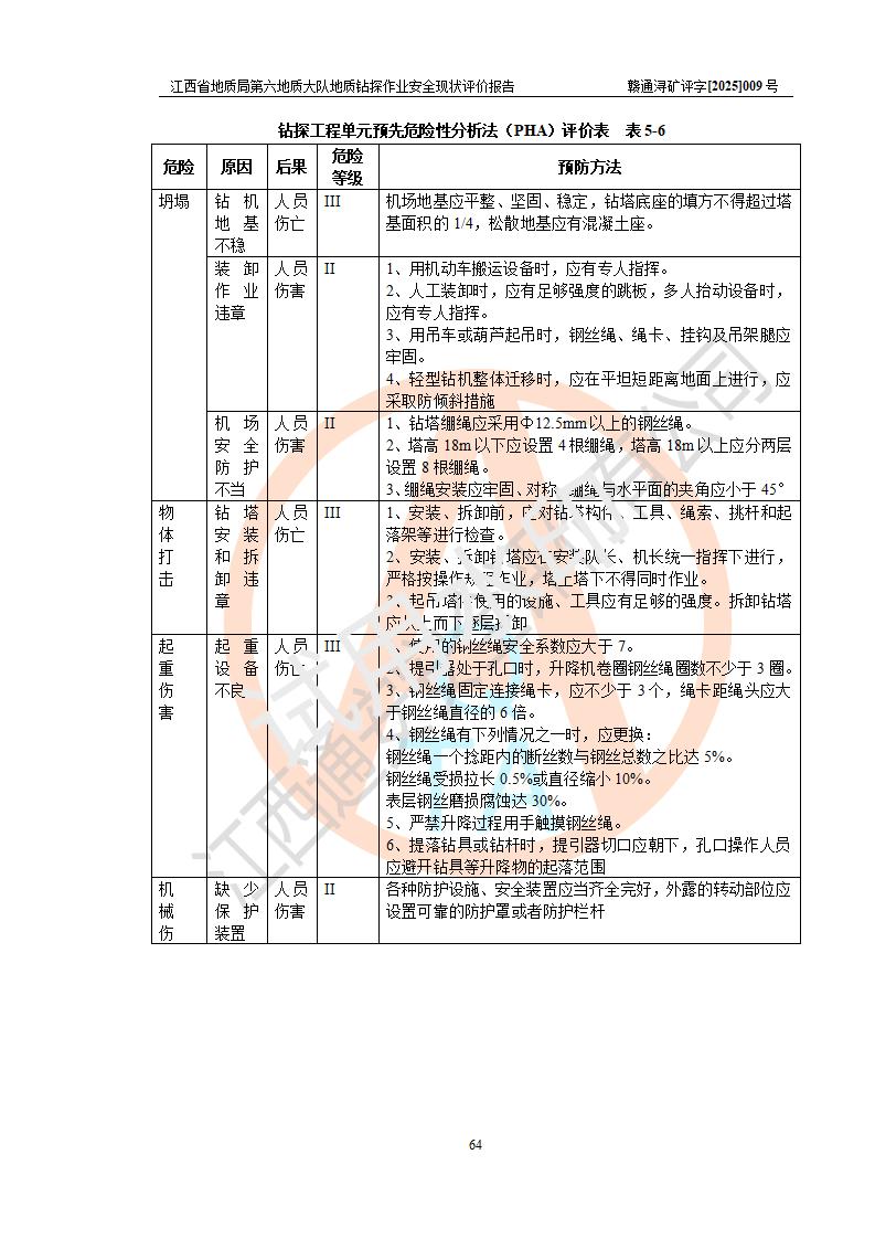 報告名稱 | 江西省地質局第六地質大隊地質鉆探作業(yè)安全現(xiàn)狀評價報告 | |||||