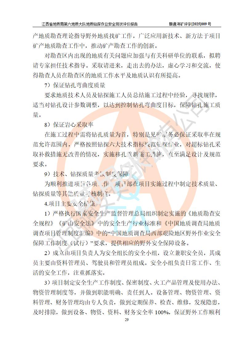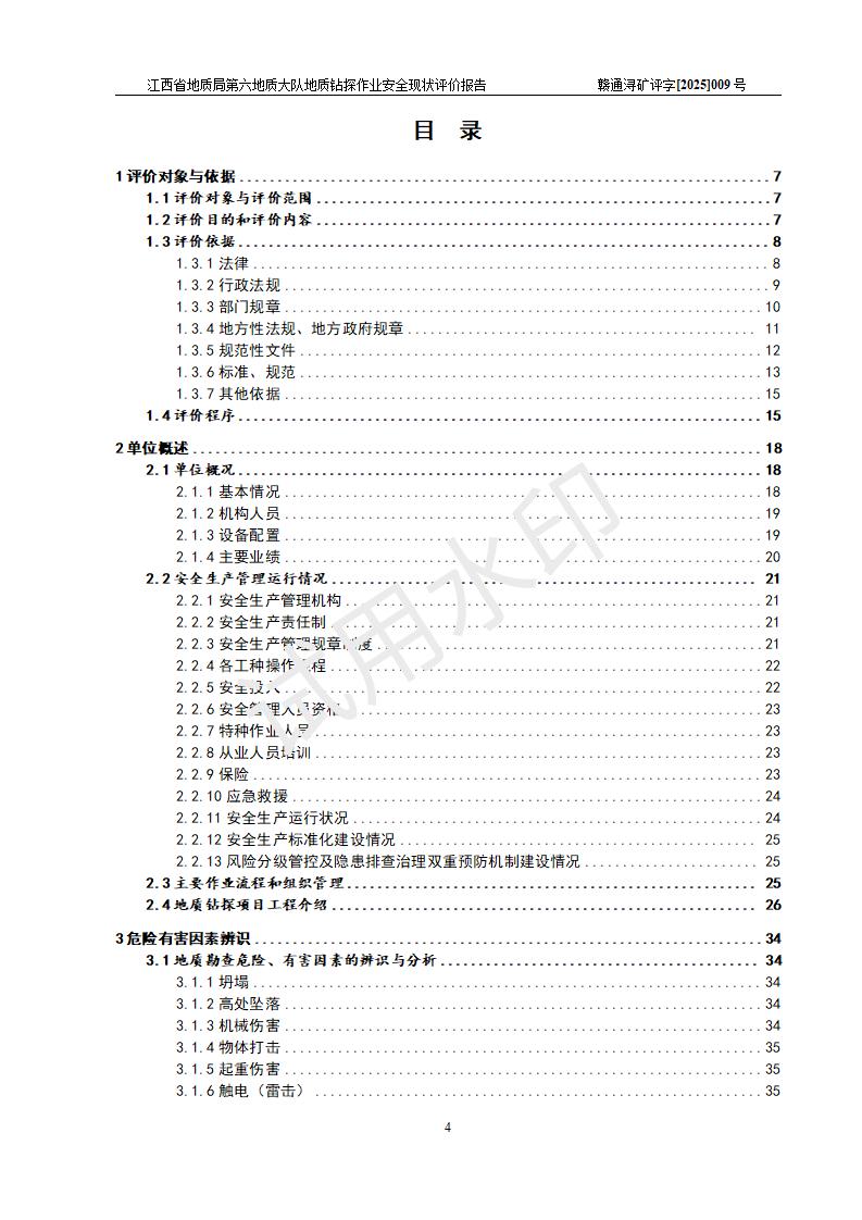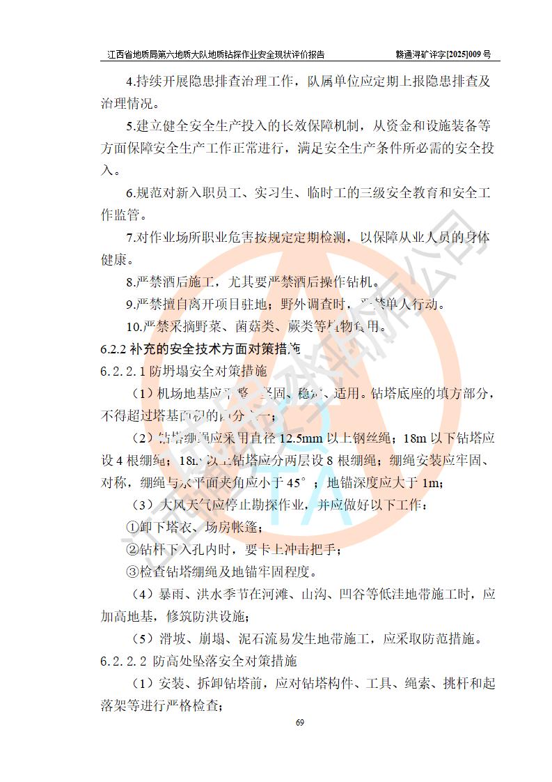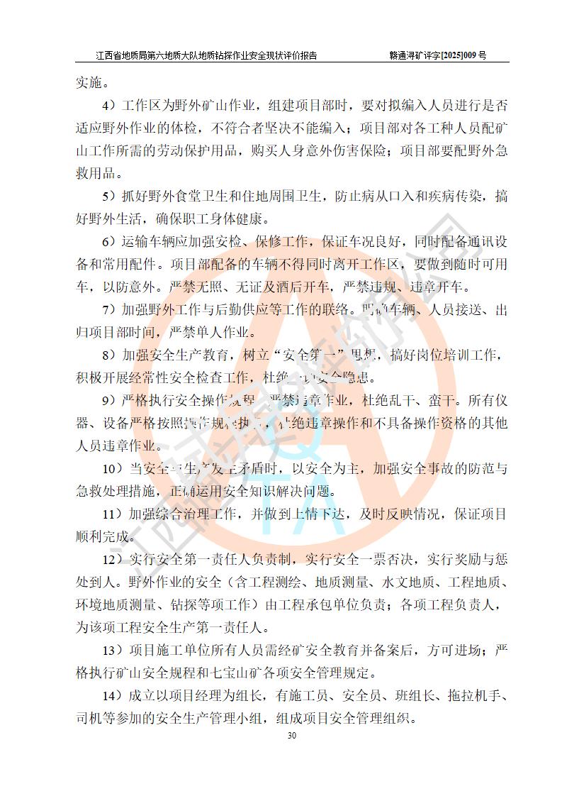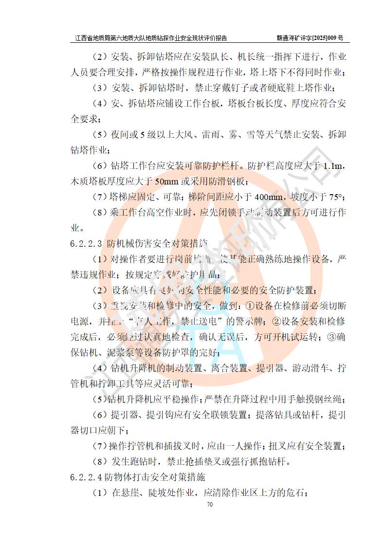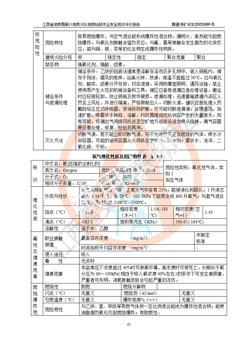 報告名稱 | 江西省地質局第六地質大隊地質鉆探作業(yè)安全現(xiàn)狀評價報告 | |||||