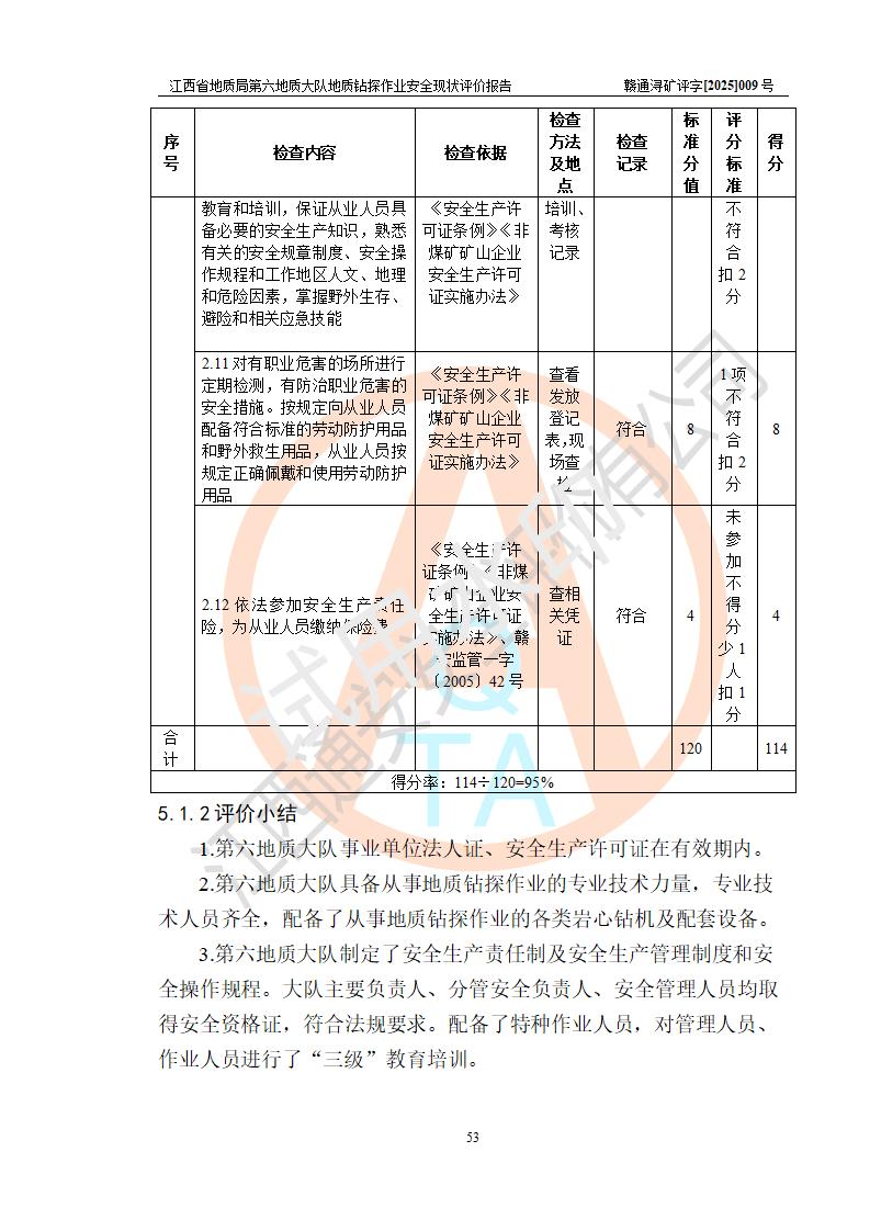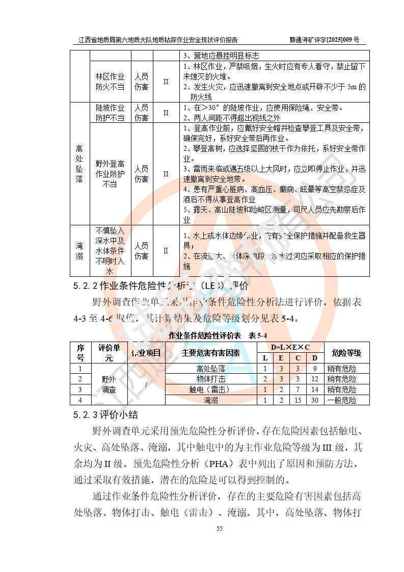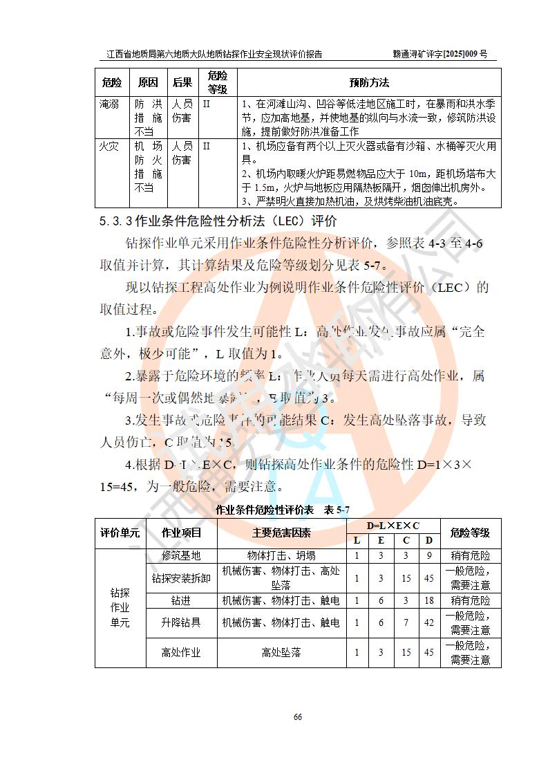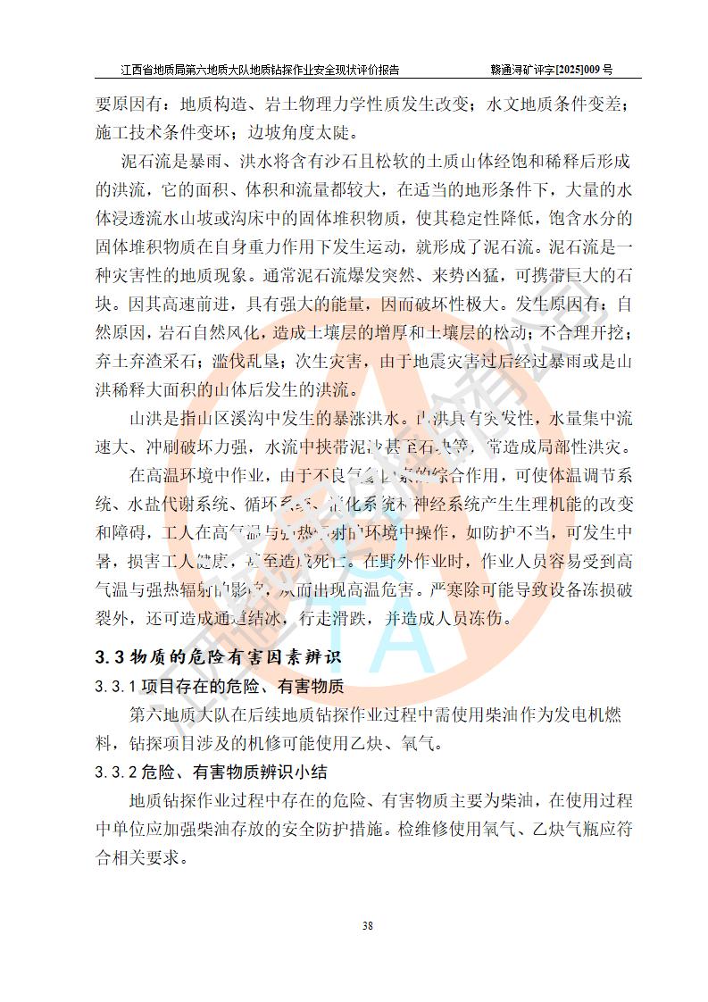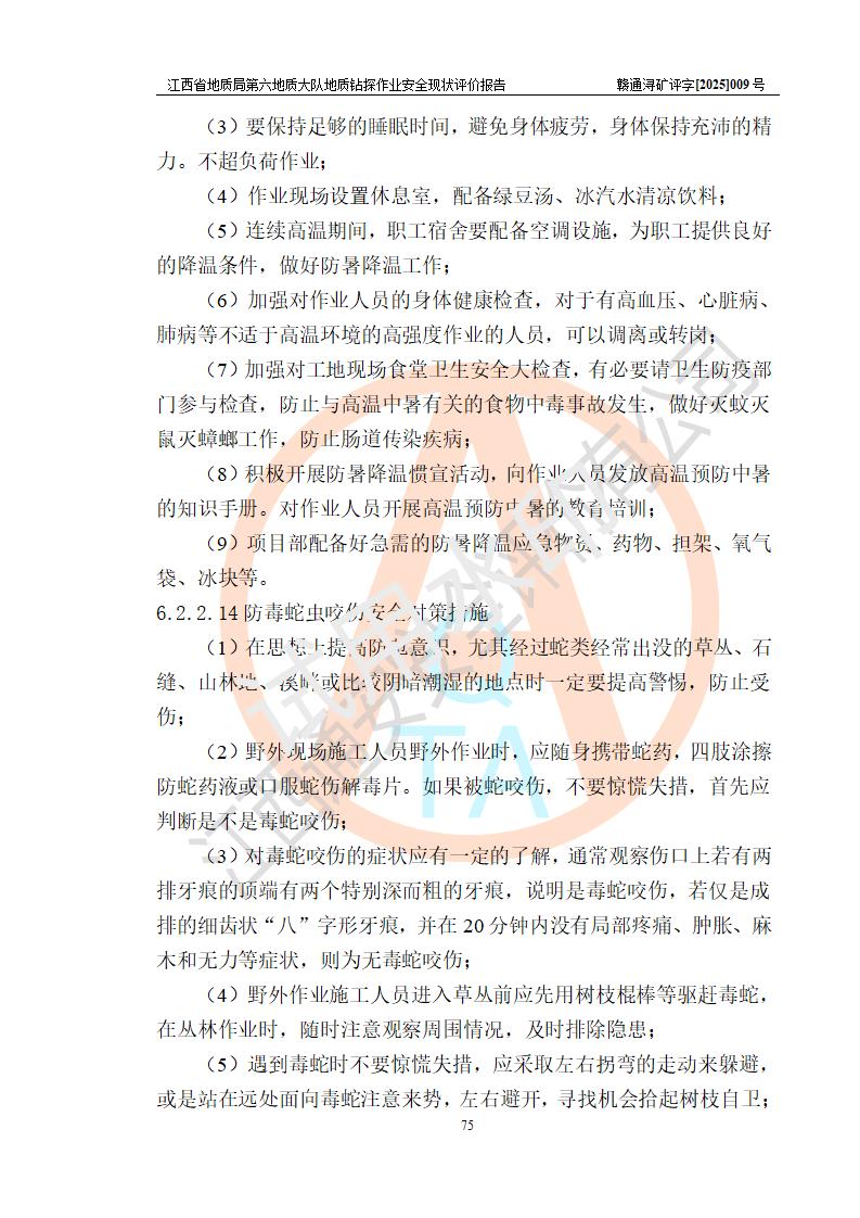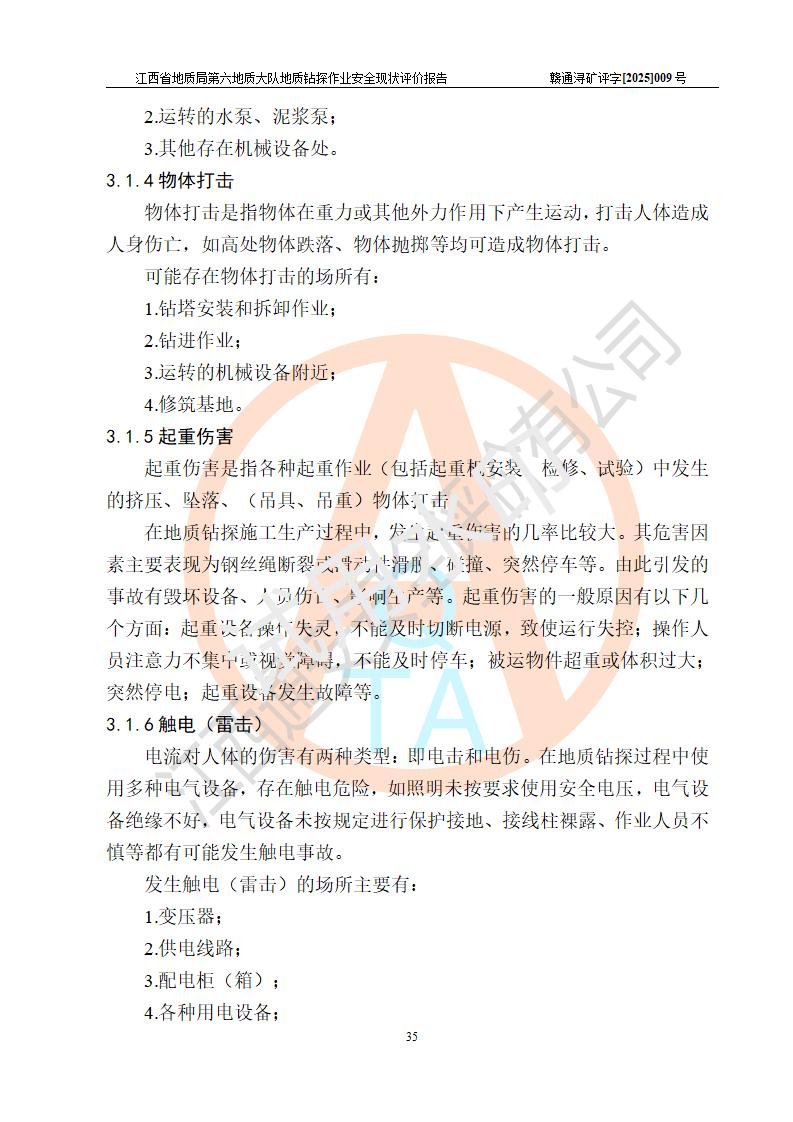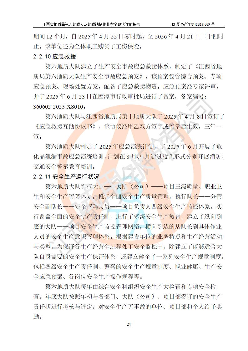 報告名稱 | 江西省地質局第六地質大隊地質鉆探作業(yè)安全現(xiàn)狀評價報告 | |||||