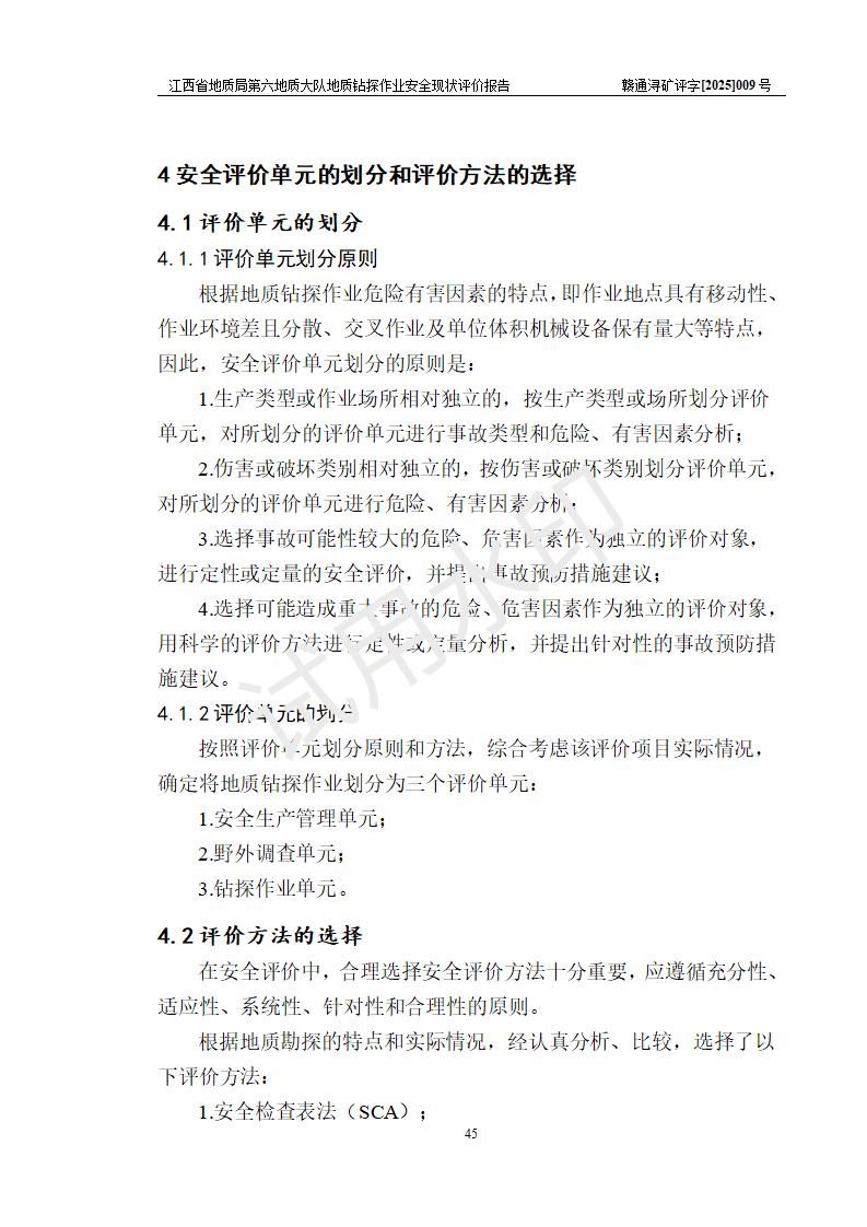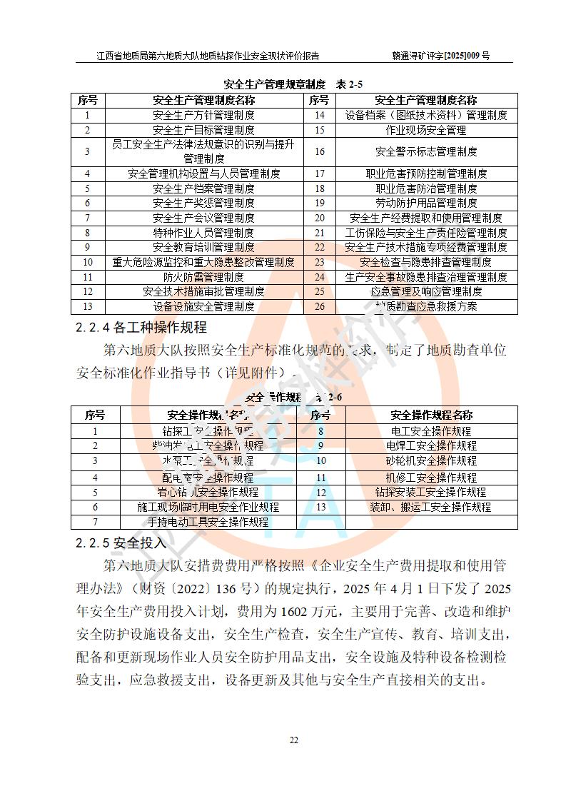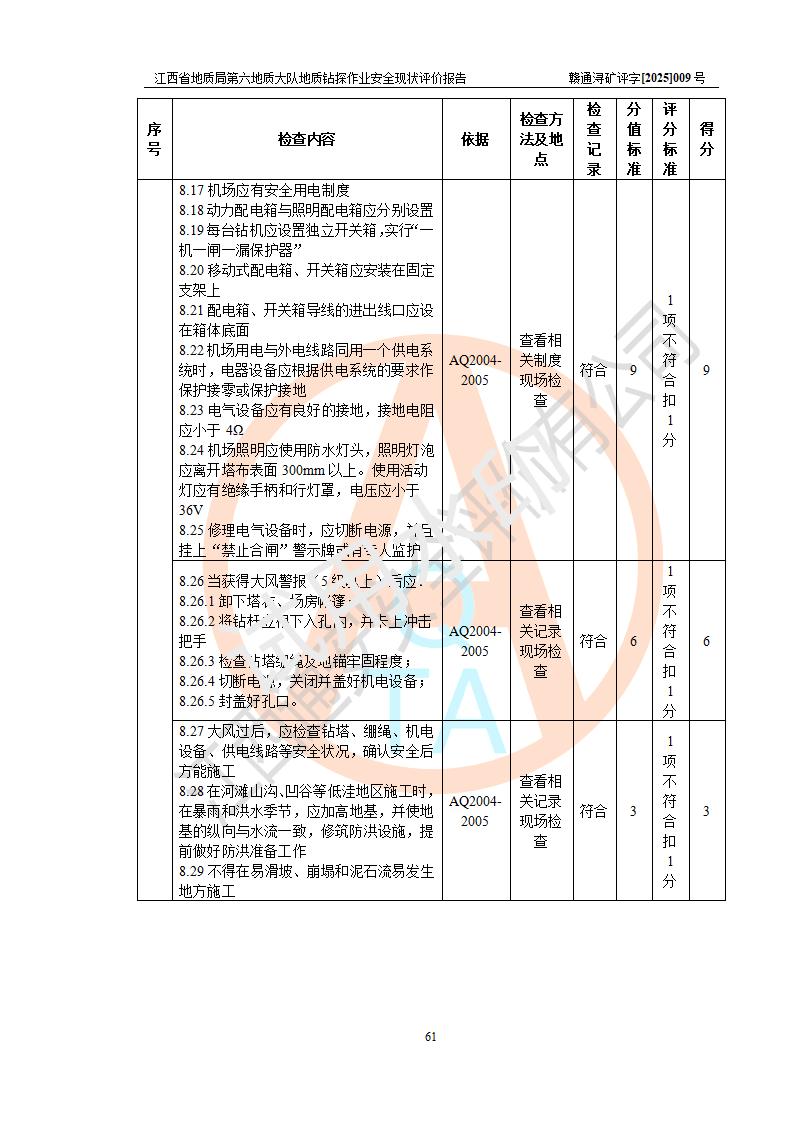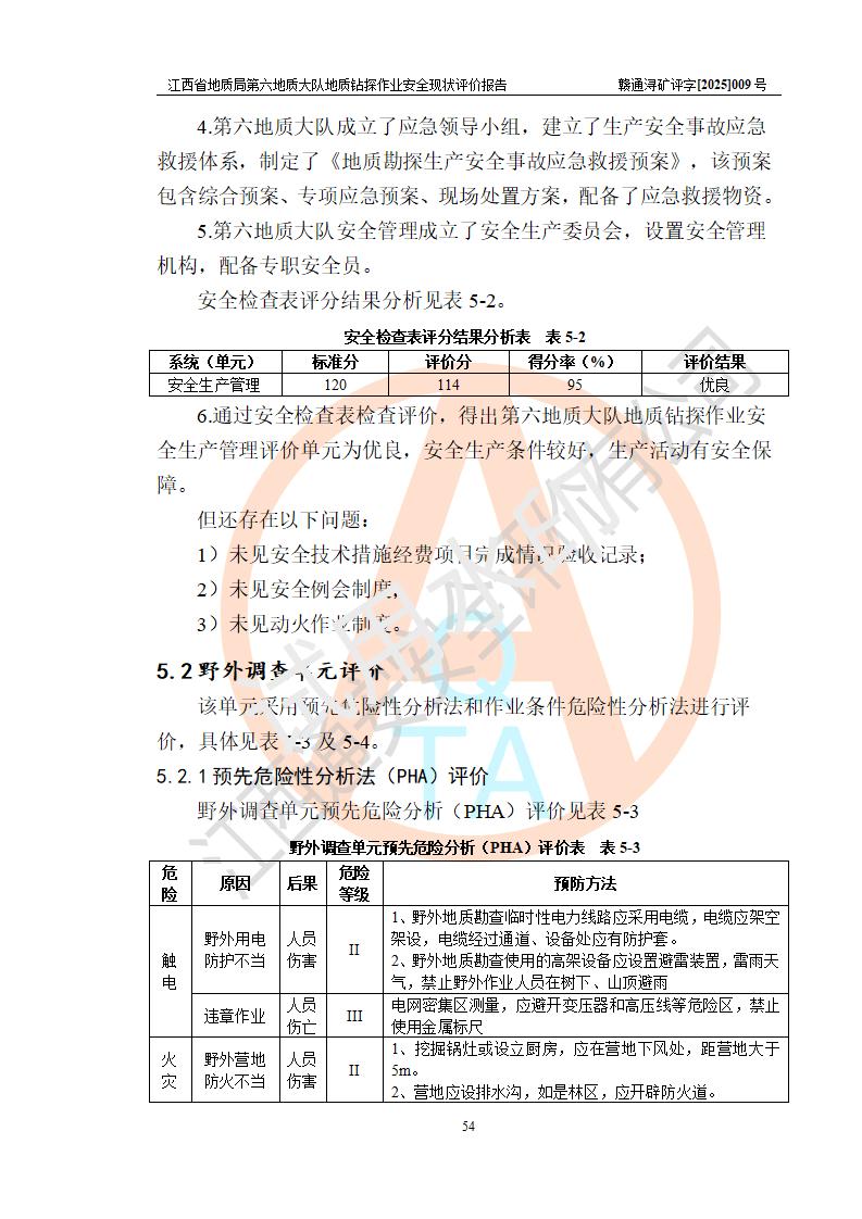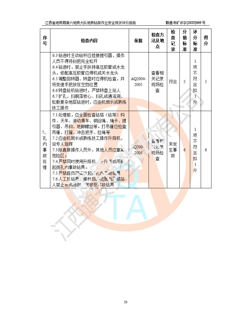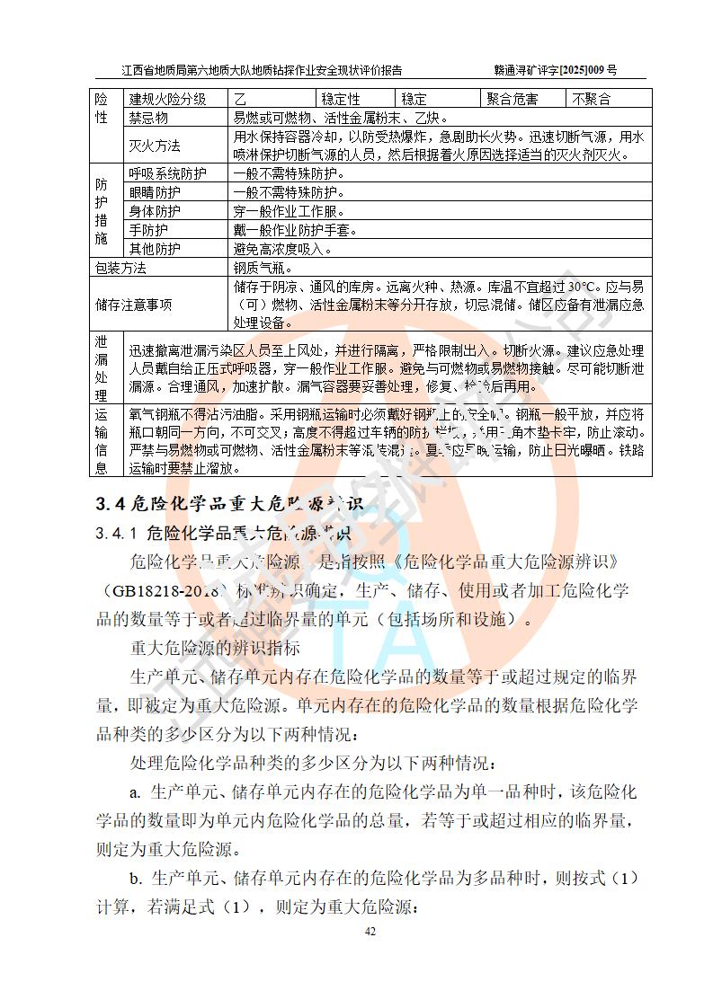 報告名稱 | 江西省地質局第六地質大隊地質鉆探作業(yè)安全現(xiàn)狀評價報告 | |||||
