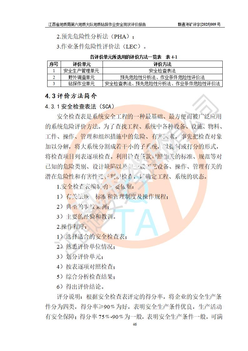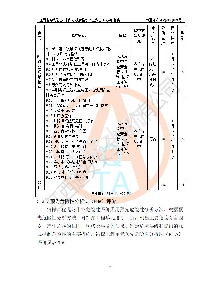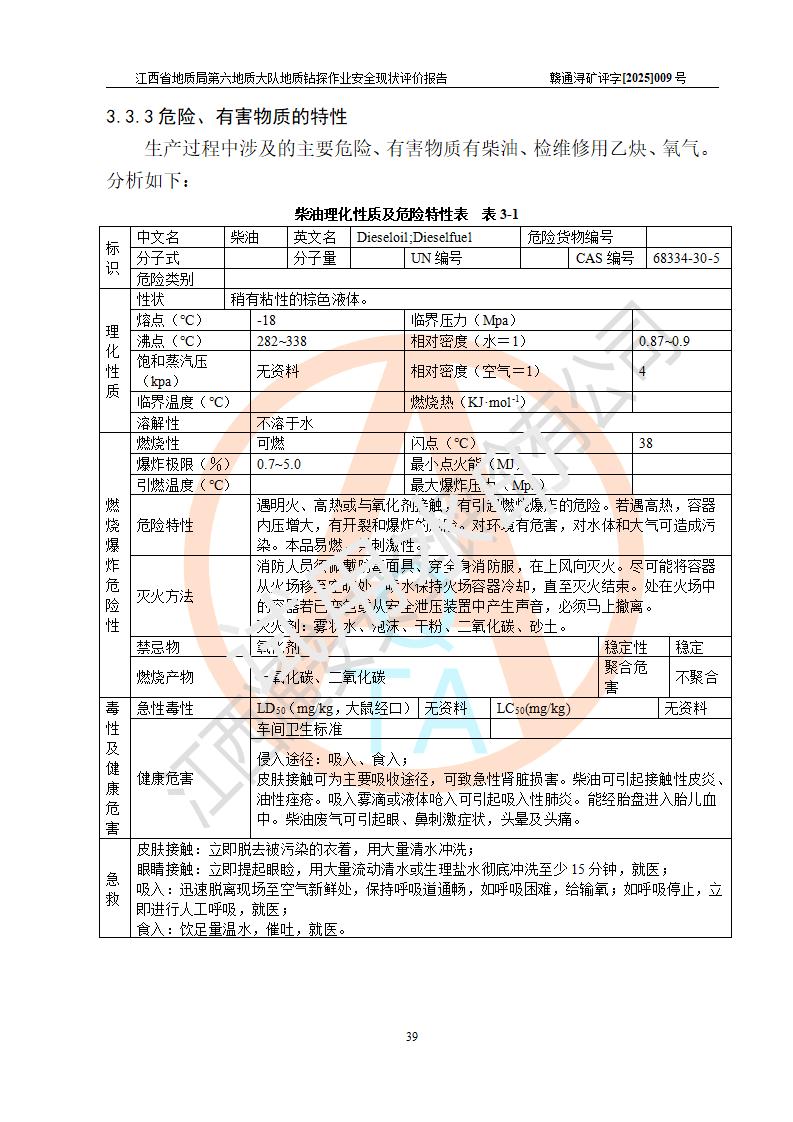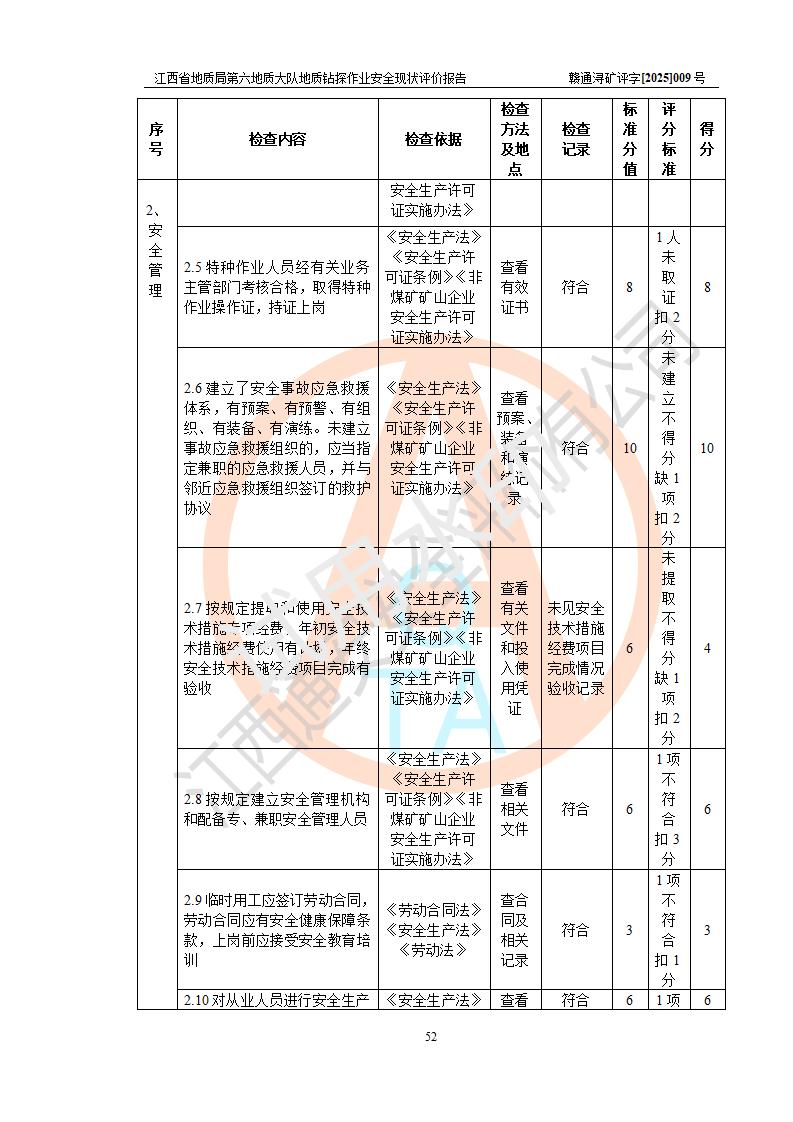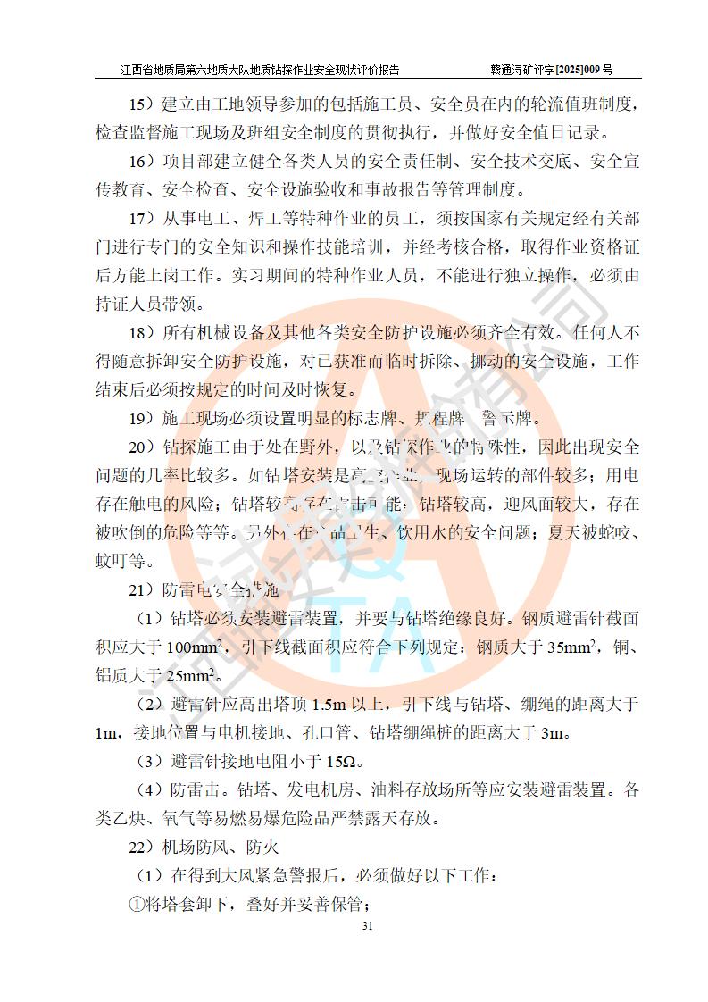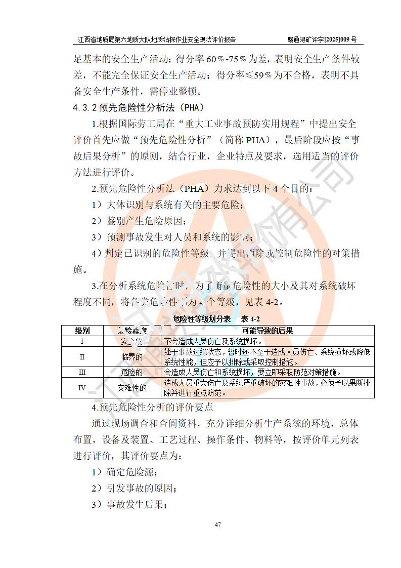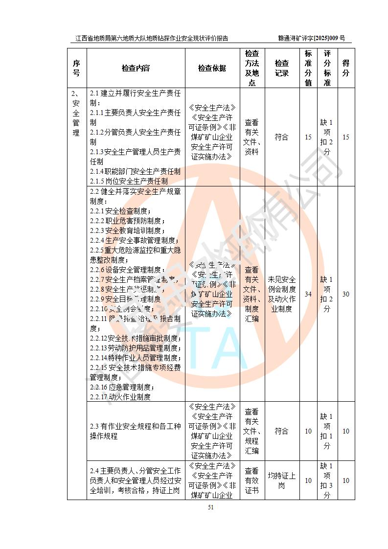 報告名稱 | 江西省地質局第六地質大隊地質鉆探作業(yè)安全現(xiàn)狀評價報告 | |||||