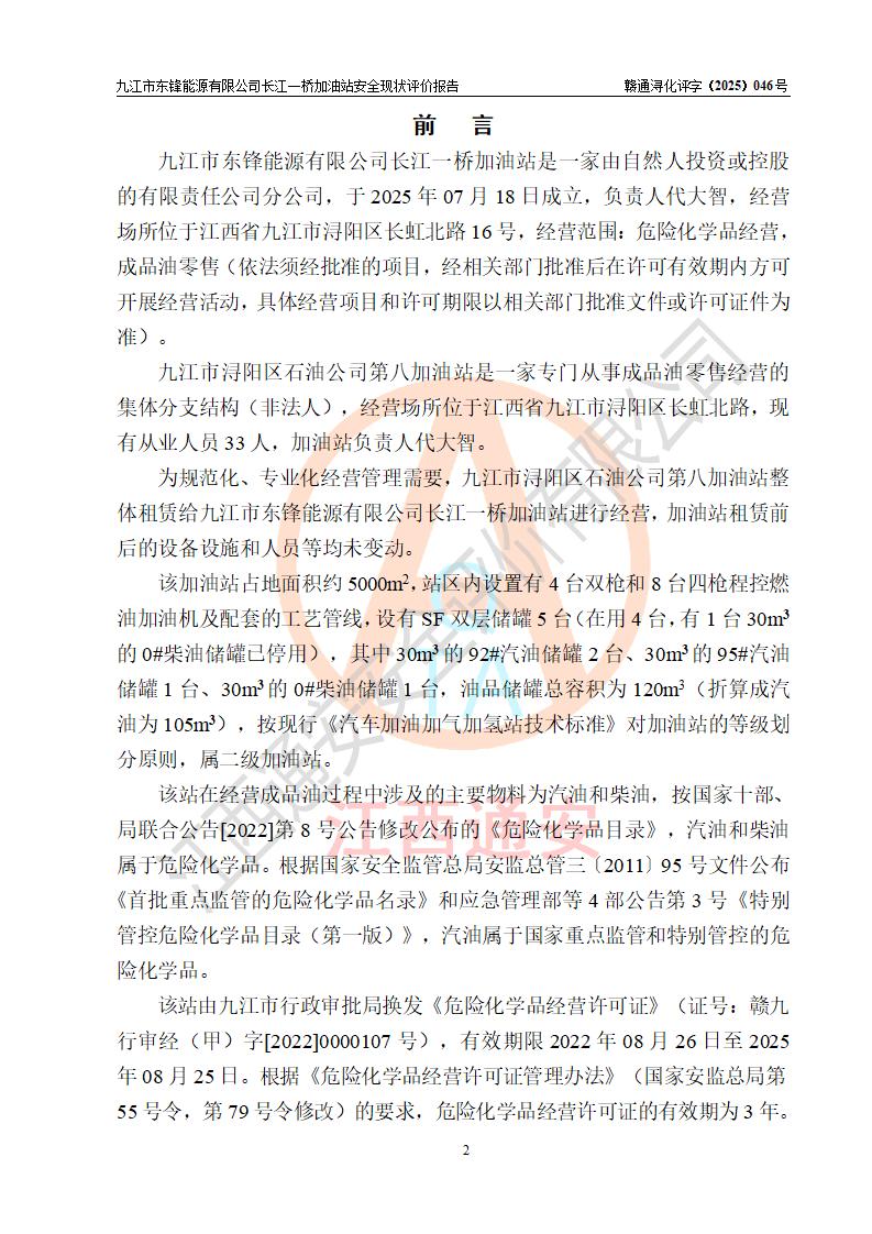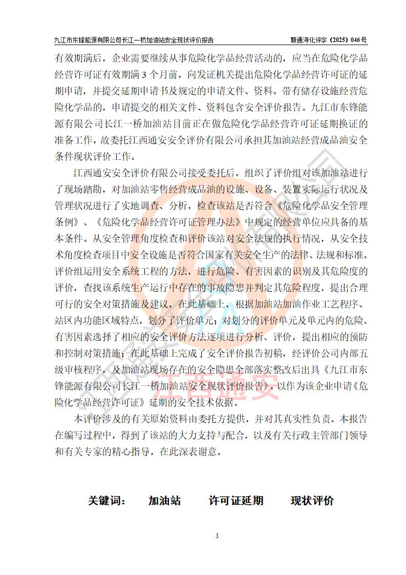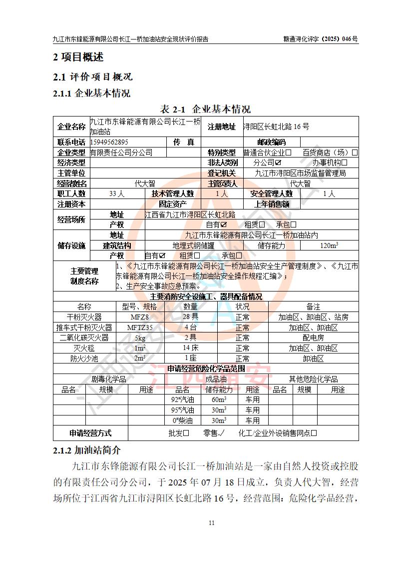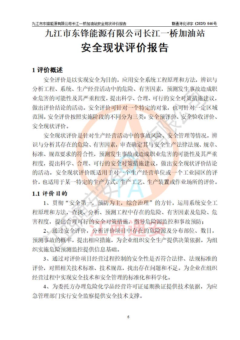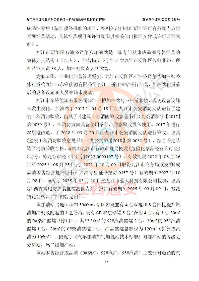 評價報告名稱 | 九江市東鋒能源有限公司長江一橋加油站安全現(xiàn)狀評價報告 | |||