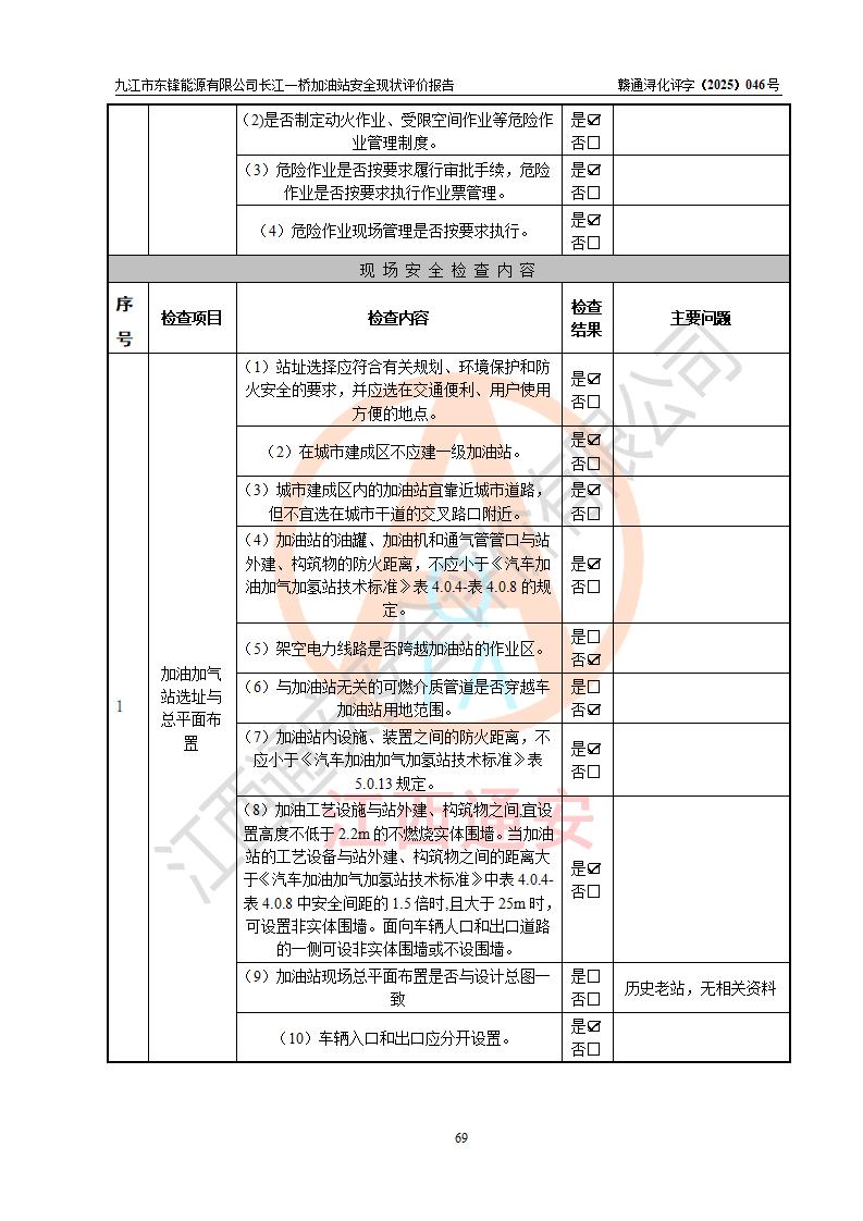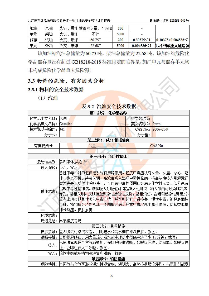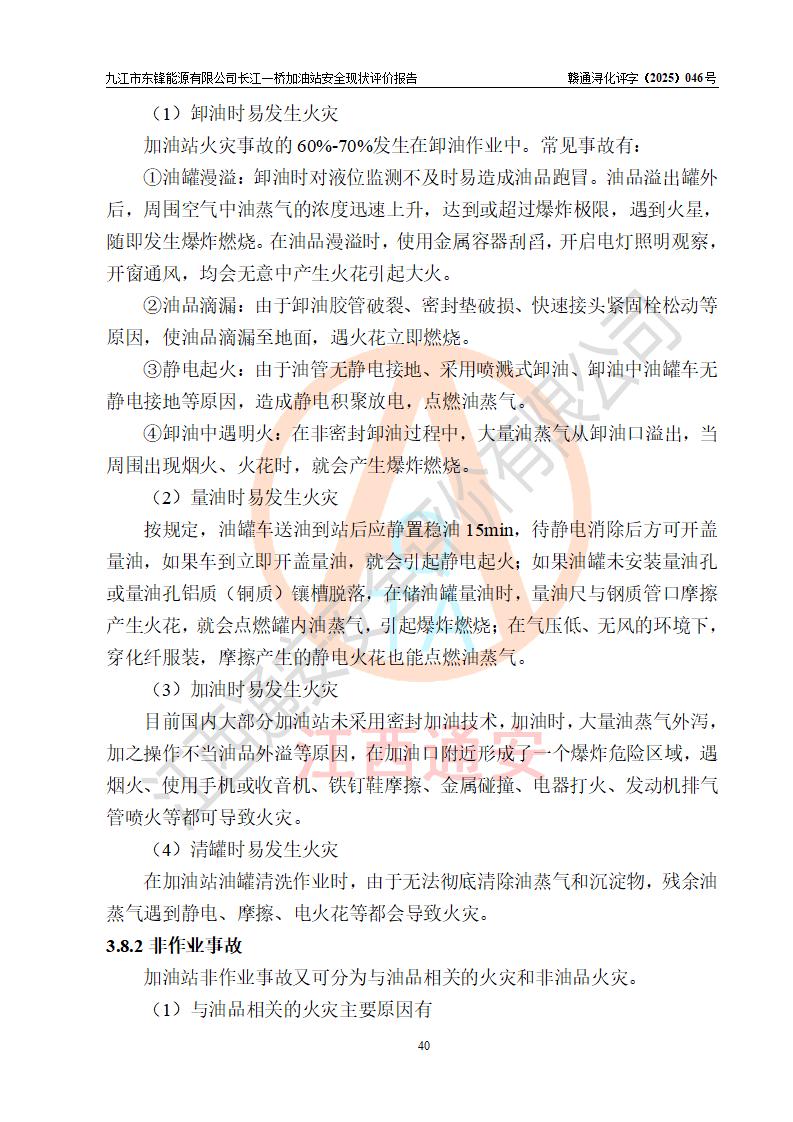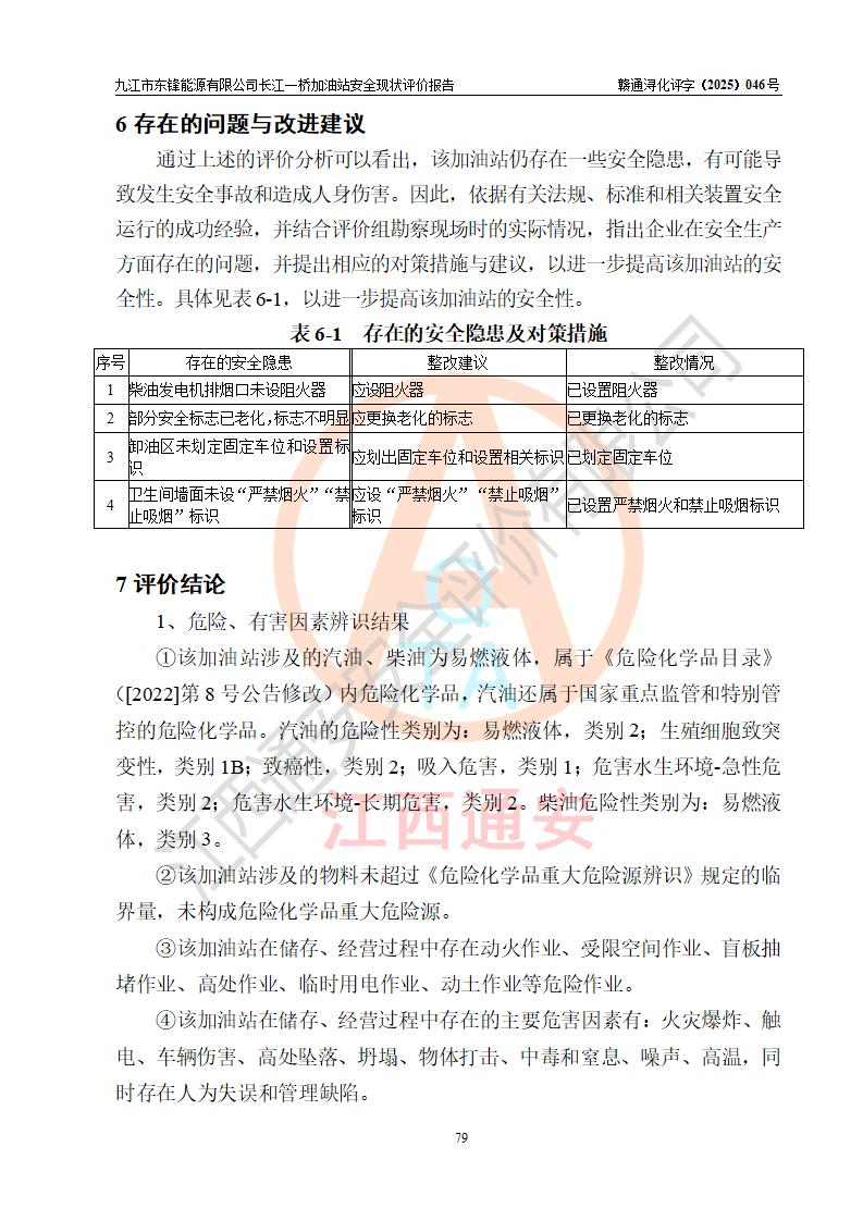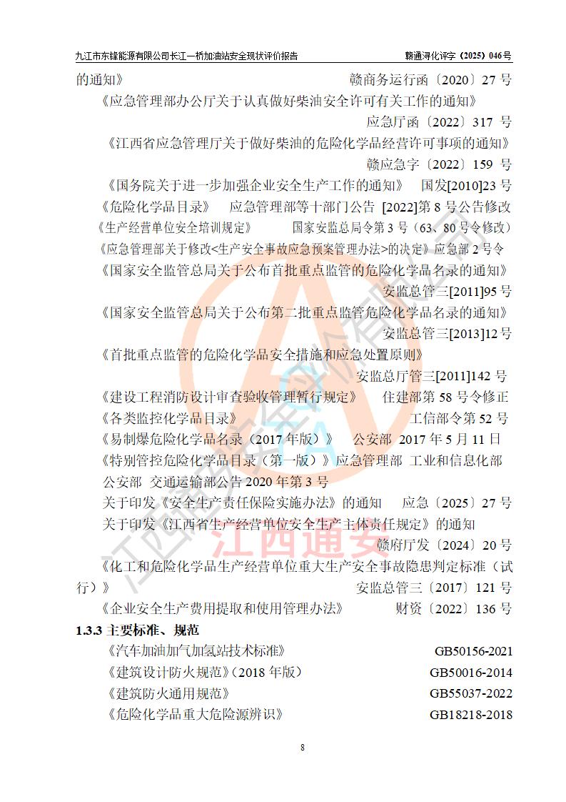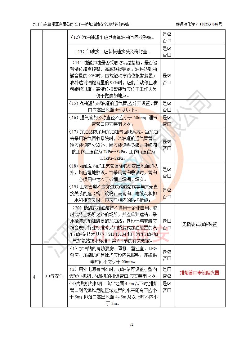 評價報告名稱 | 九江市東鋒能源有限公司長江一橋加油站安全現(xiàn)狀評價報告 | |||