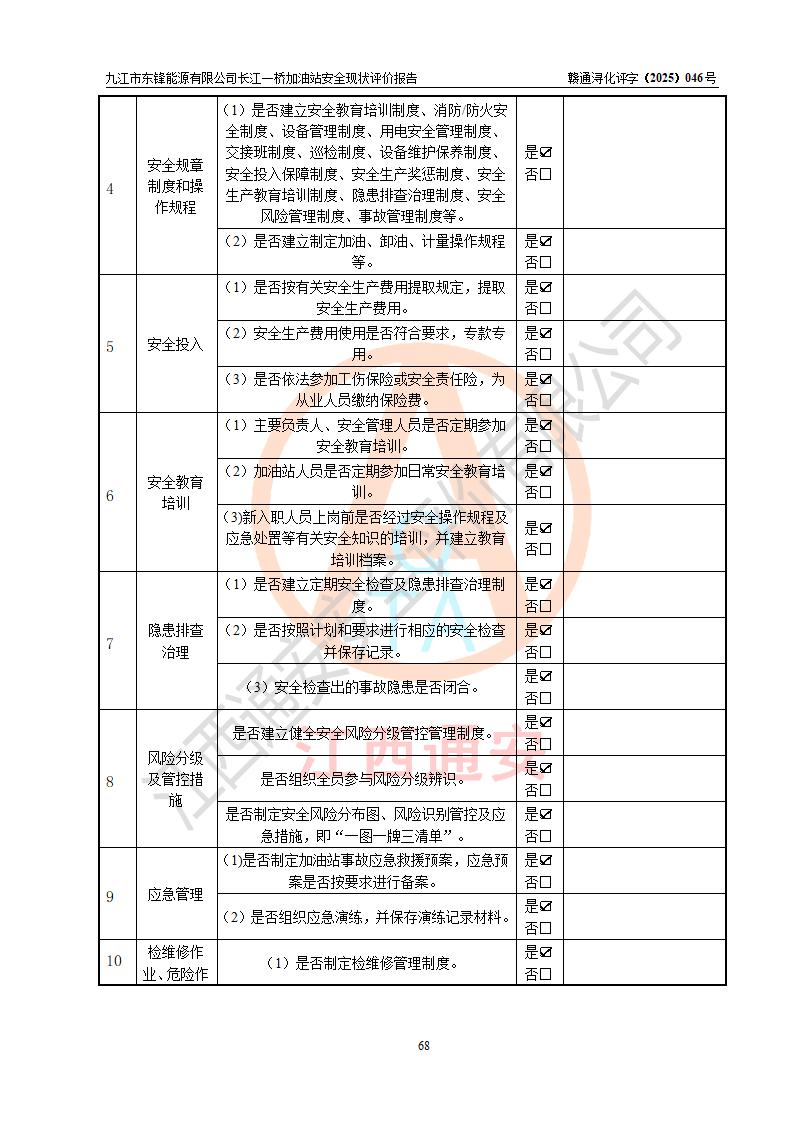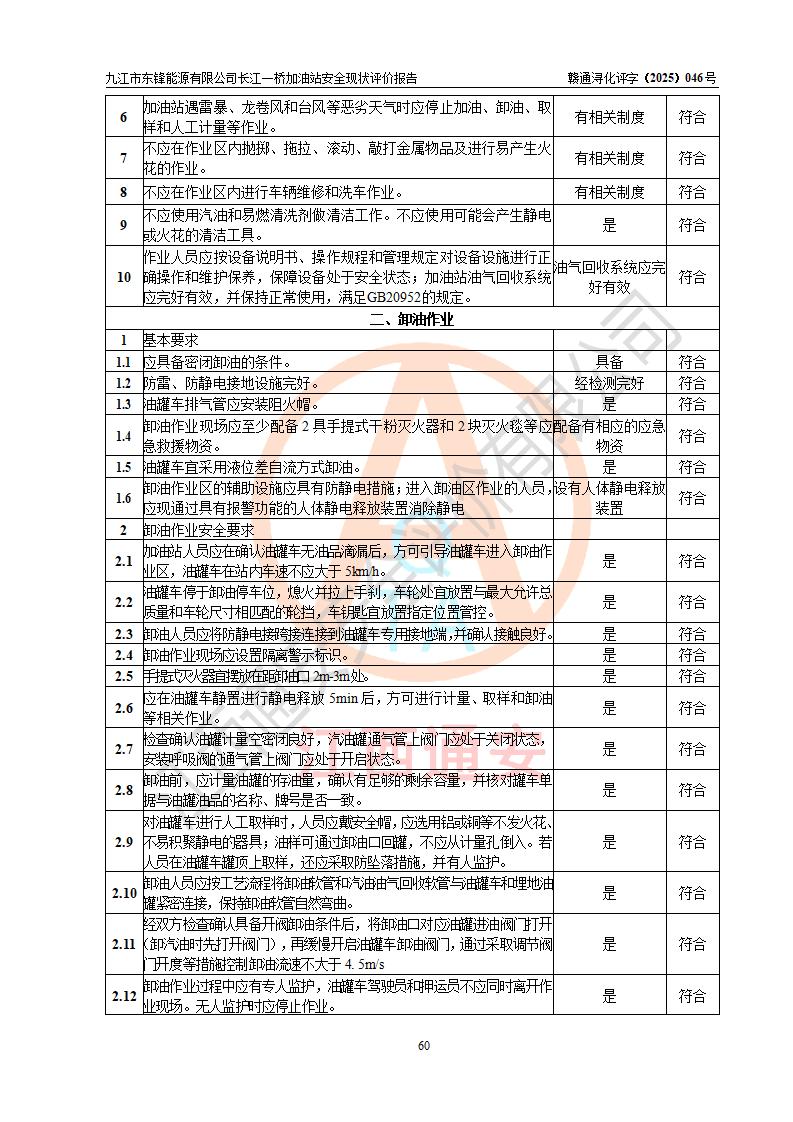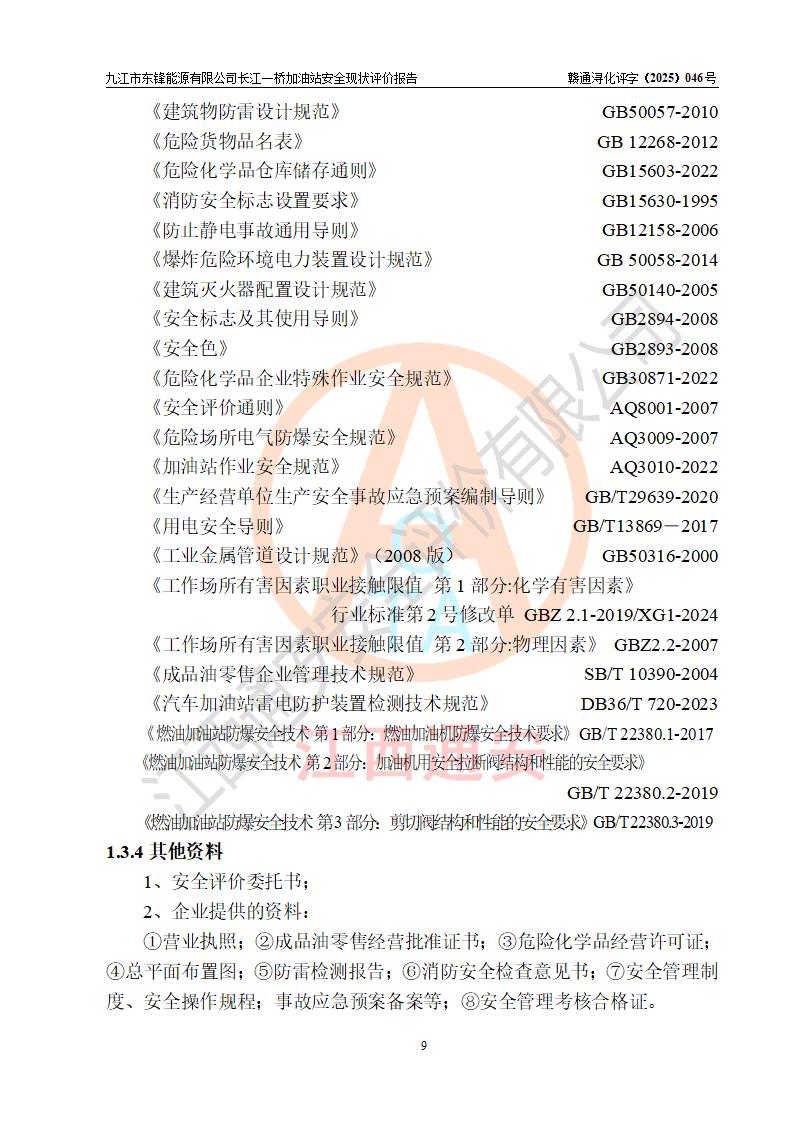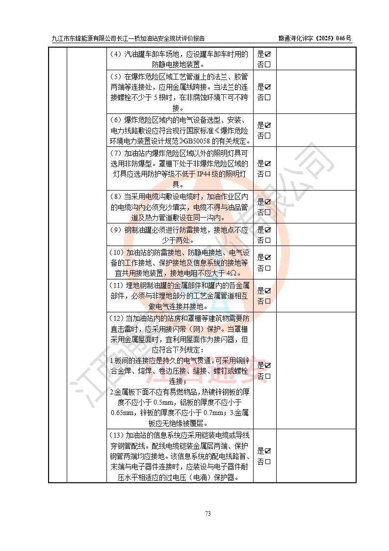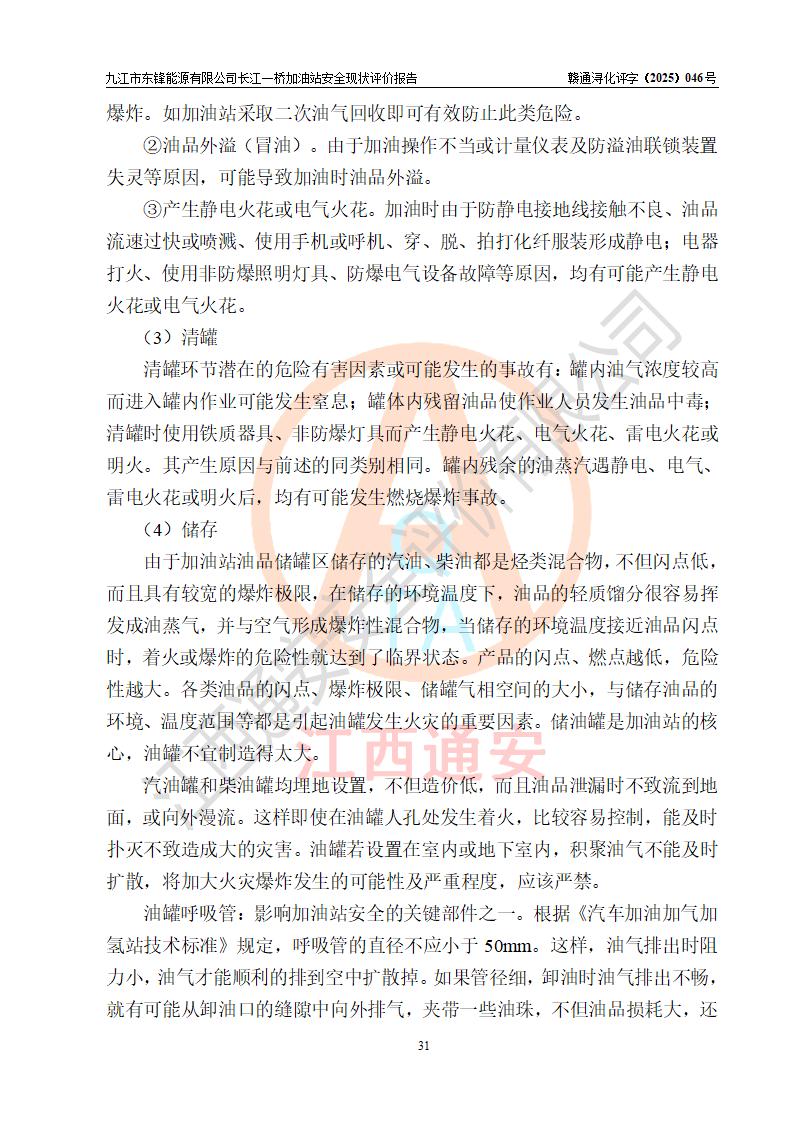 評價報告名稱 | 九江市東鋒能源有限公司長江一橋加油站安全現(xiàn)狀評價報告 | |||