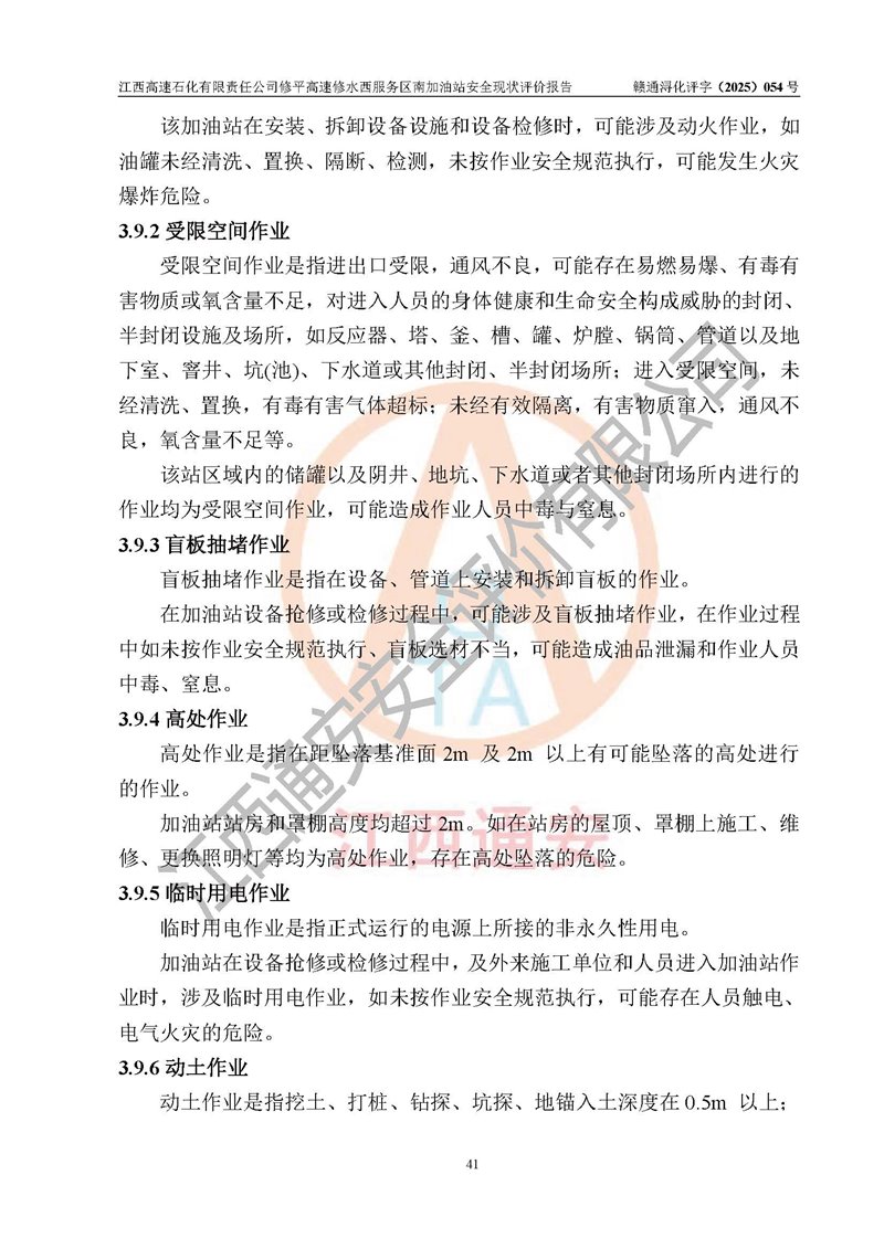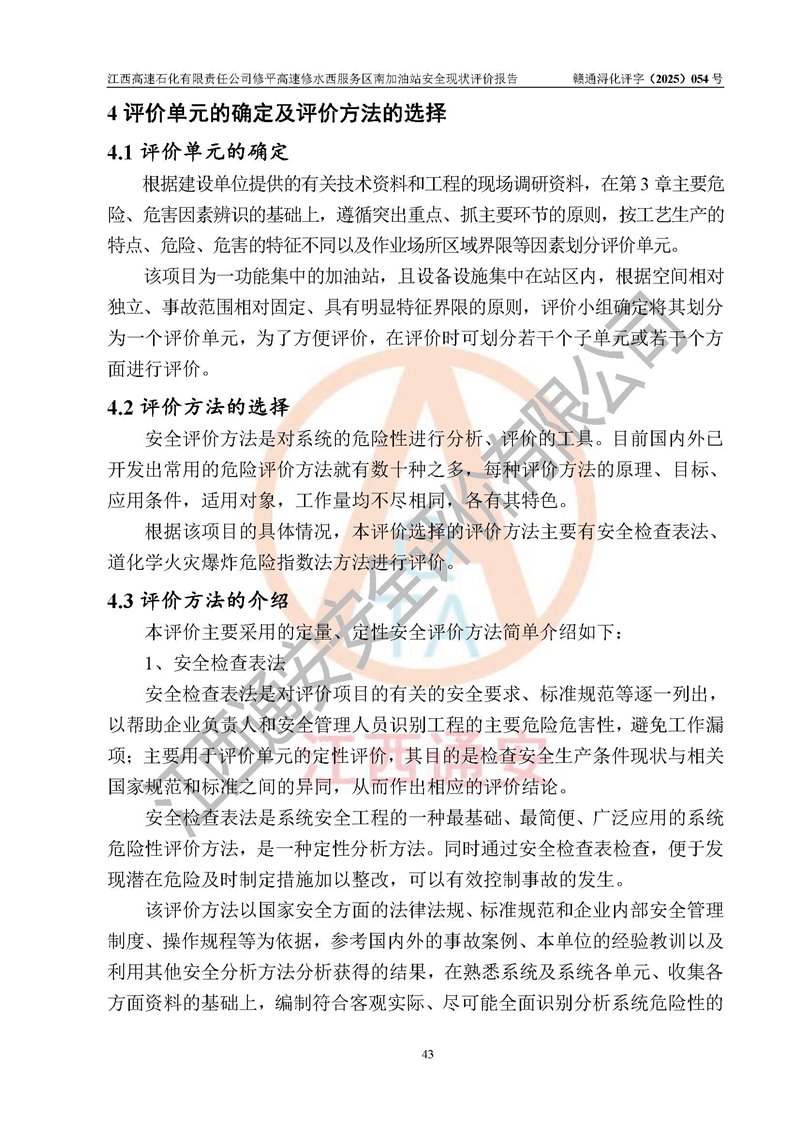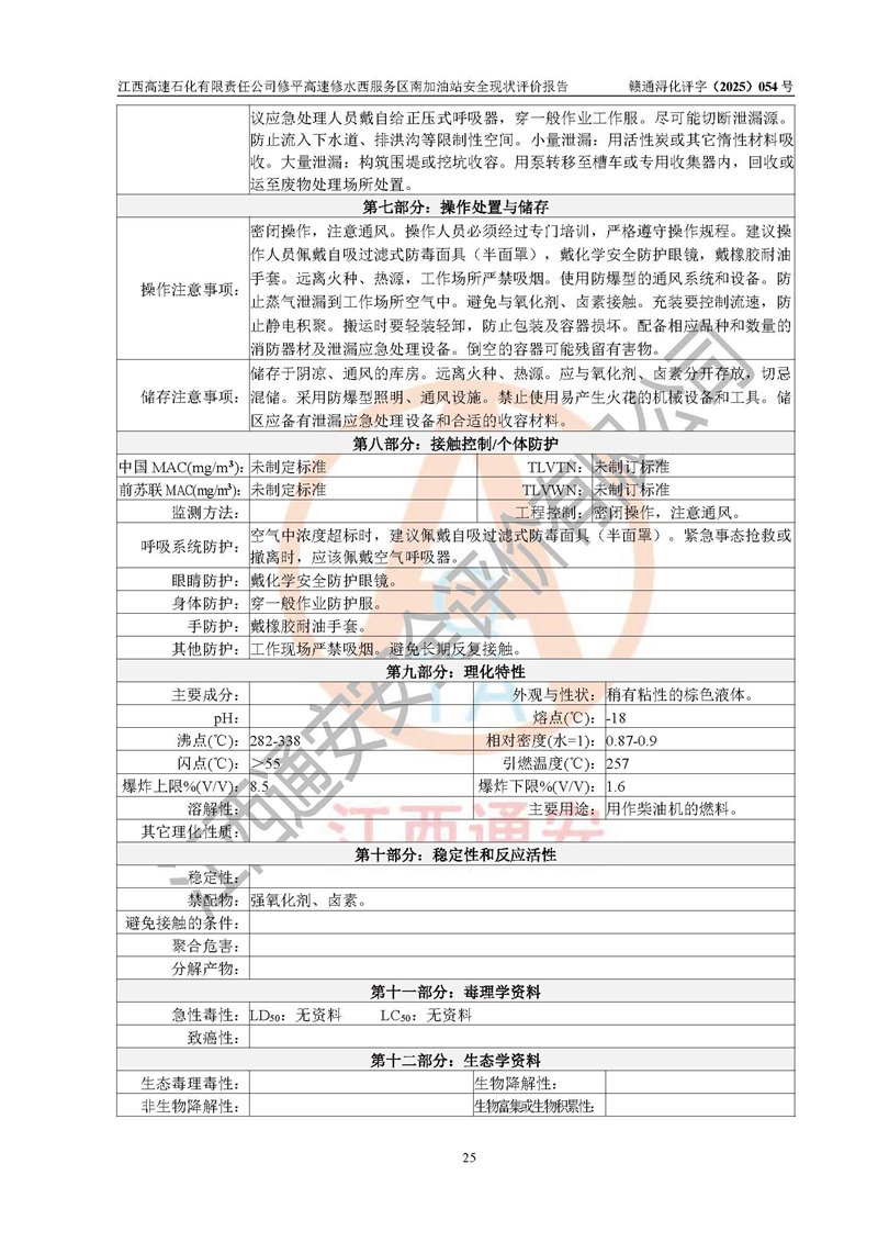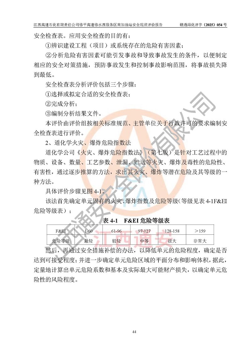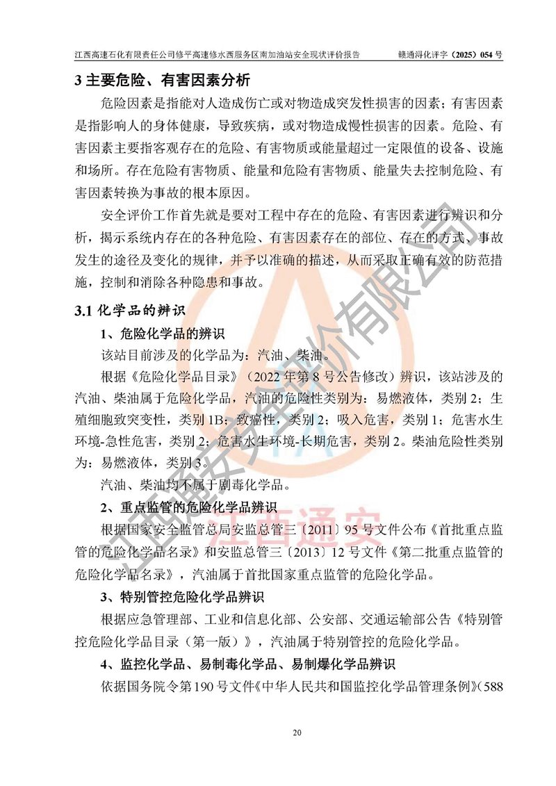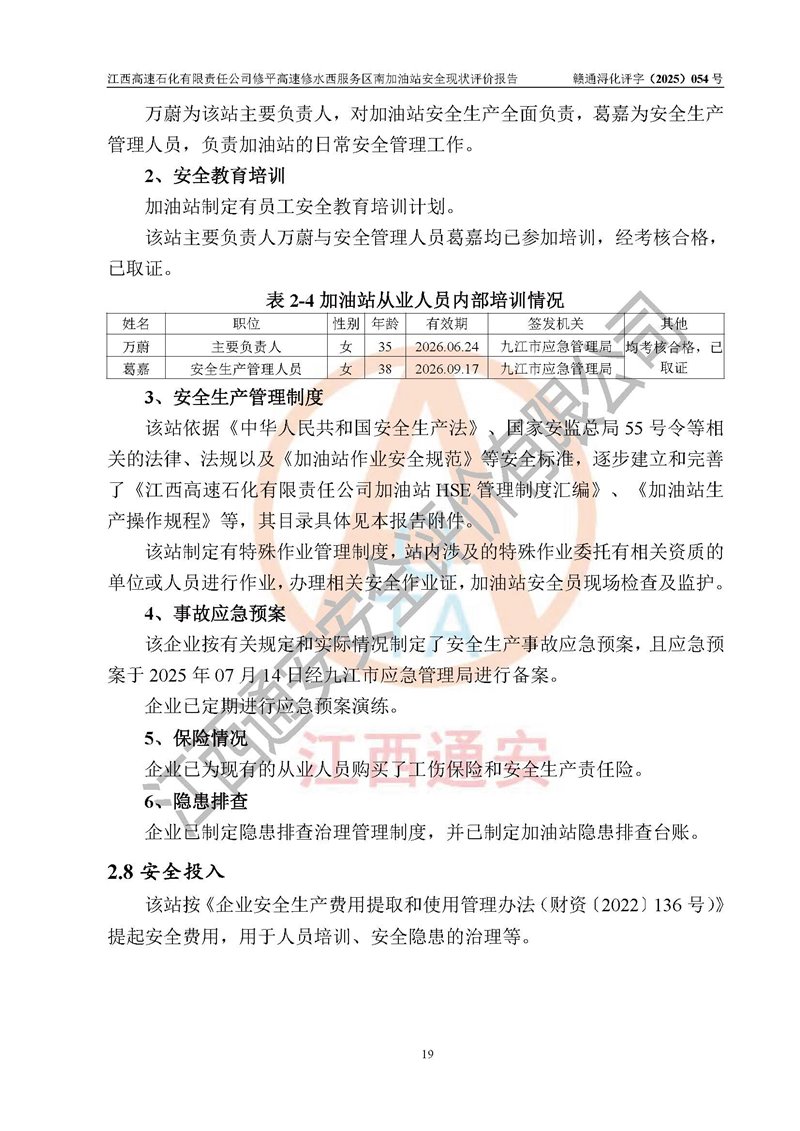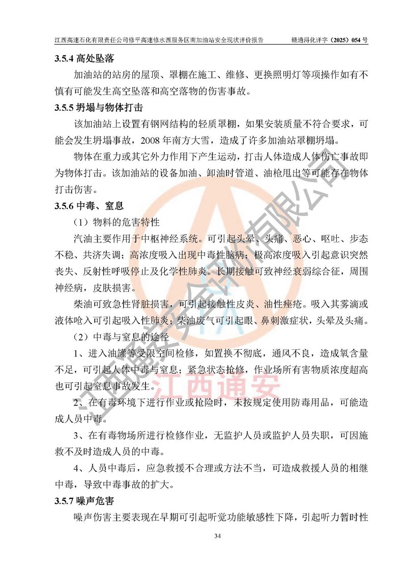 評價(jià)結(jié)論 | 江西高速石化有限責(zé)任公司修平高速修水西服務(wù)區(qū)南加油站涉及的安全條件、安全經(jīng)營條件、安全生產(chǎn)管理符合《危險(xiǎn)化學(xué)品經(jīng)營許可證管理辦法》、《汽車加油加氣加氫站技術(shù)標(biāo)準(zhǔn)》等**有關(guān)法規(guī)、標(biāo)準(zhǔn)、規(guī)范要求,能滿足危險(xiǎn)化學(xué)品經(jīng)營安全條件。 | |||