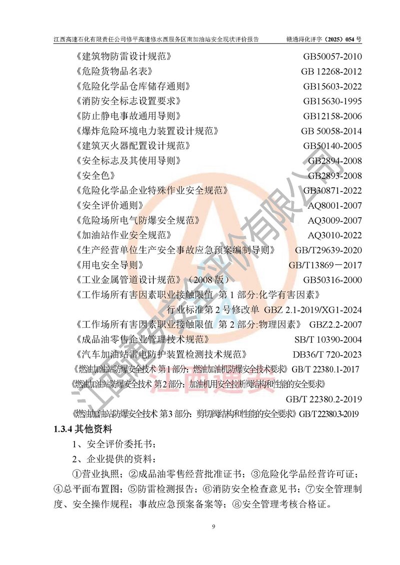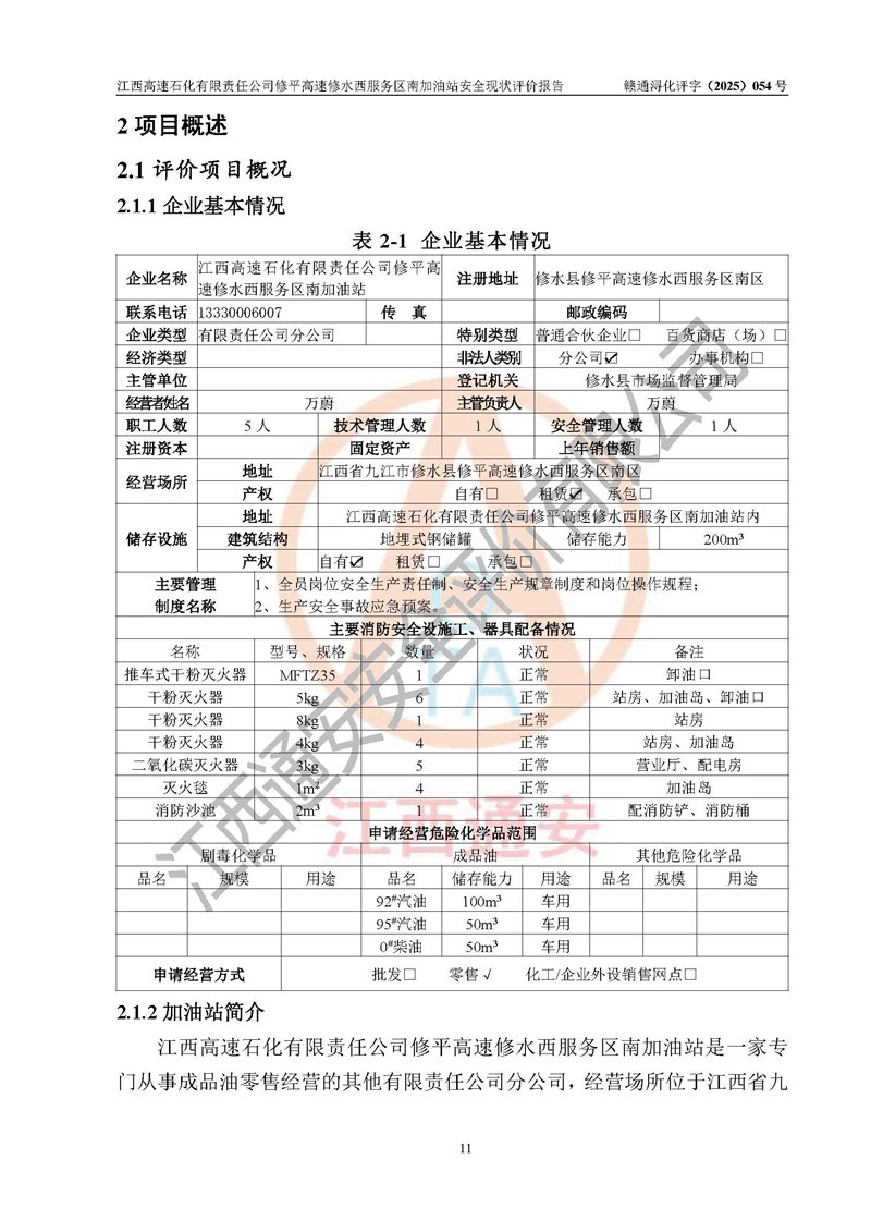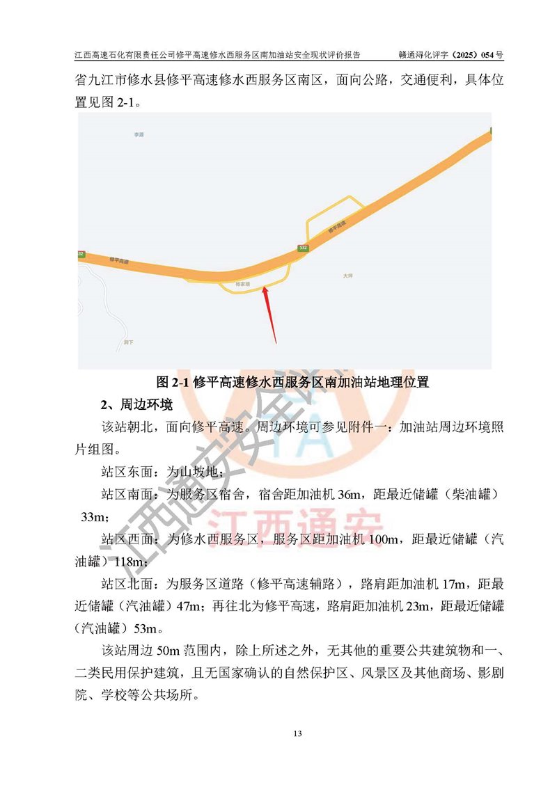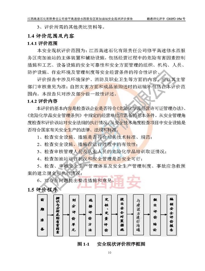 評價(jià)報(bào)告名稱 | 江西高速石化有限責(zé)任公司修平高速修水西服務(wù)區(qū)南加油站安全現(xiàn)狀評價(jià)報(bào)告 | |||