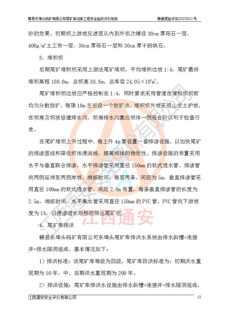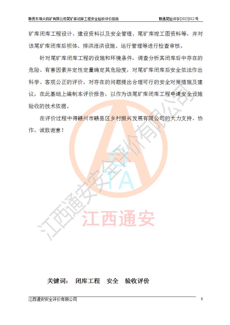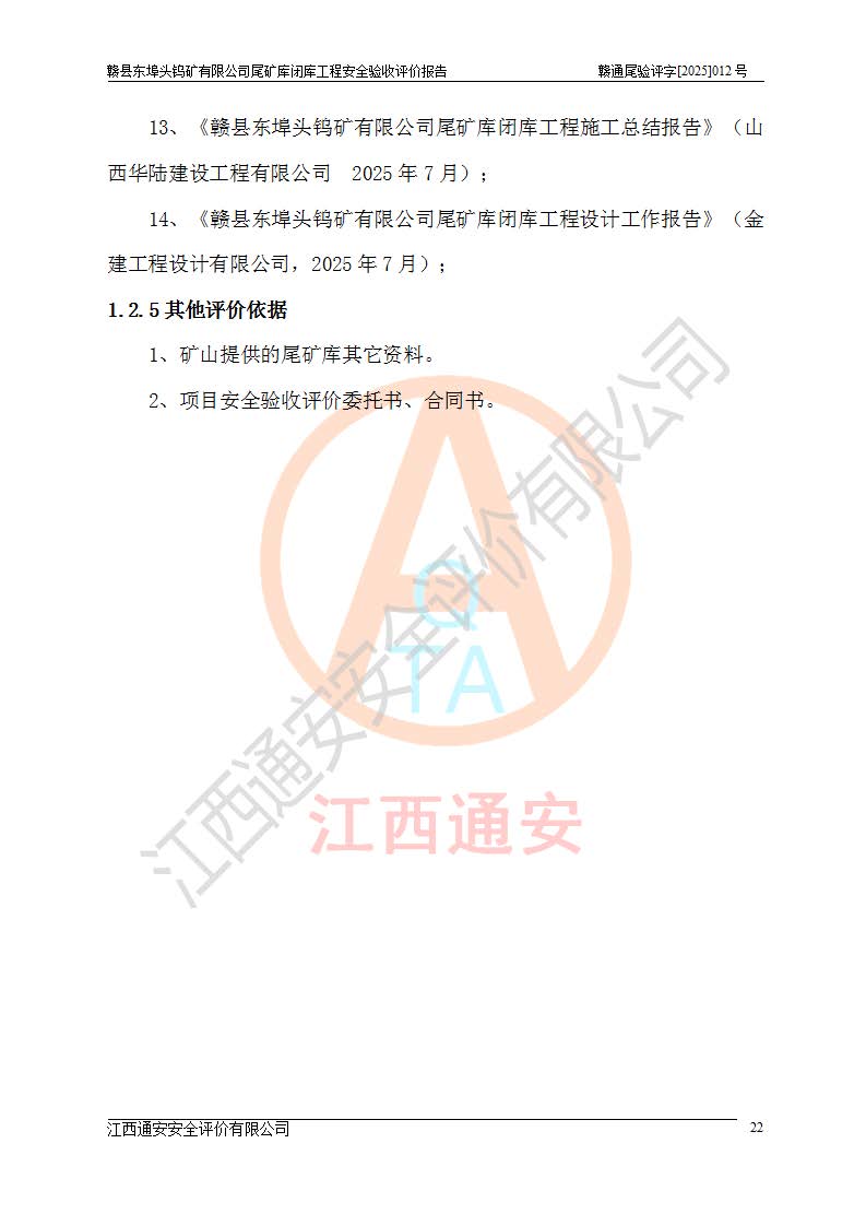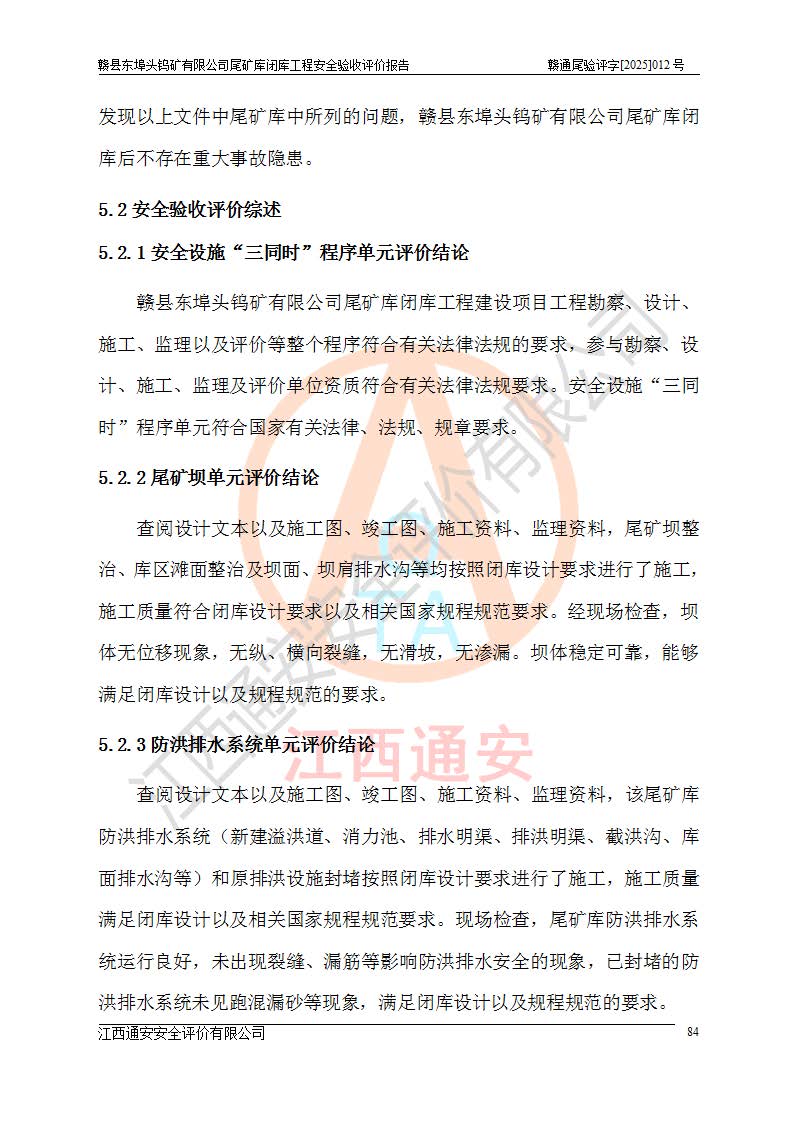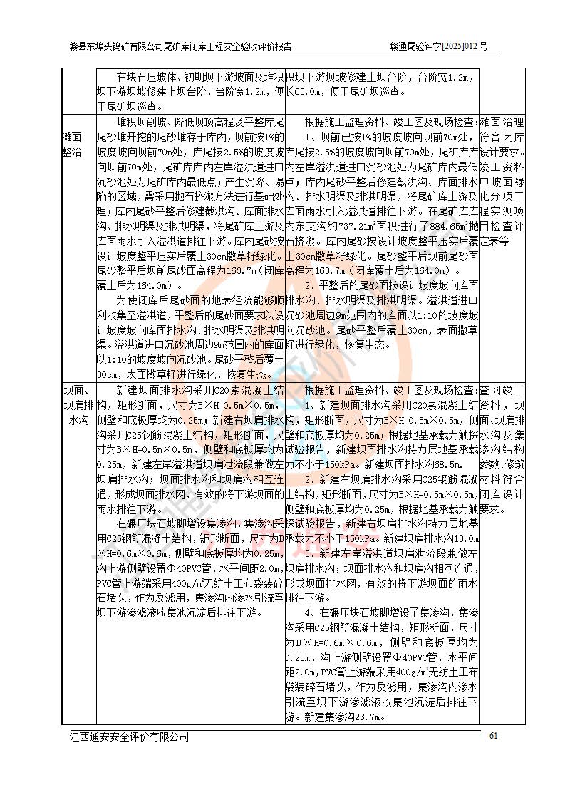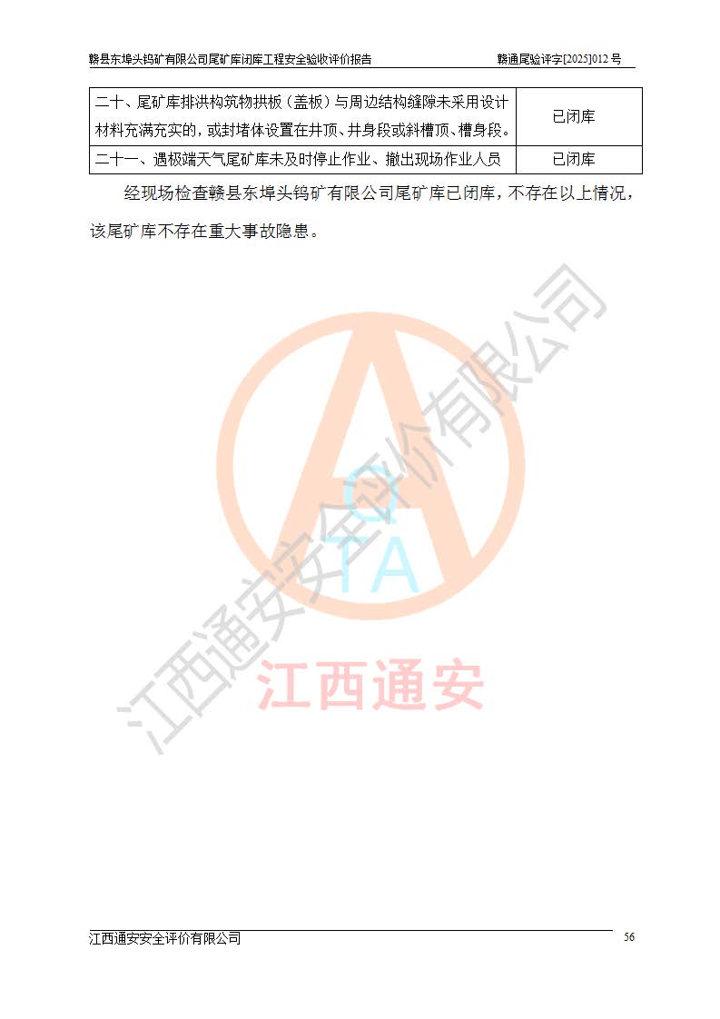 評(píng)價(jià)報(bào)告名稱 | 贛縣東埠頭鎢礦有限公司尾礦庫(kù)閉庫(kù)工程安全驗(yàn)收評(píng)價(jià)報(bào)告 | |||