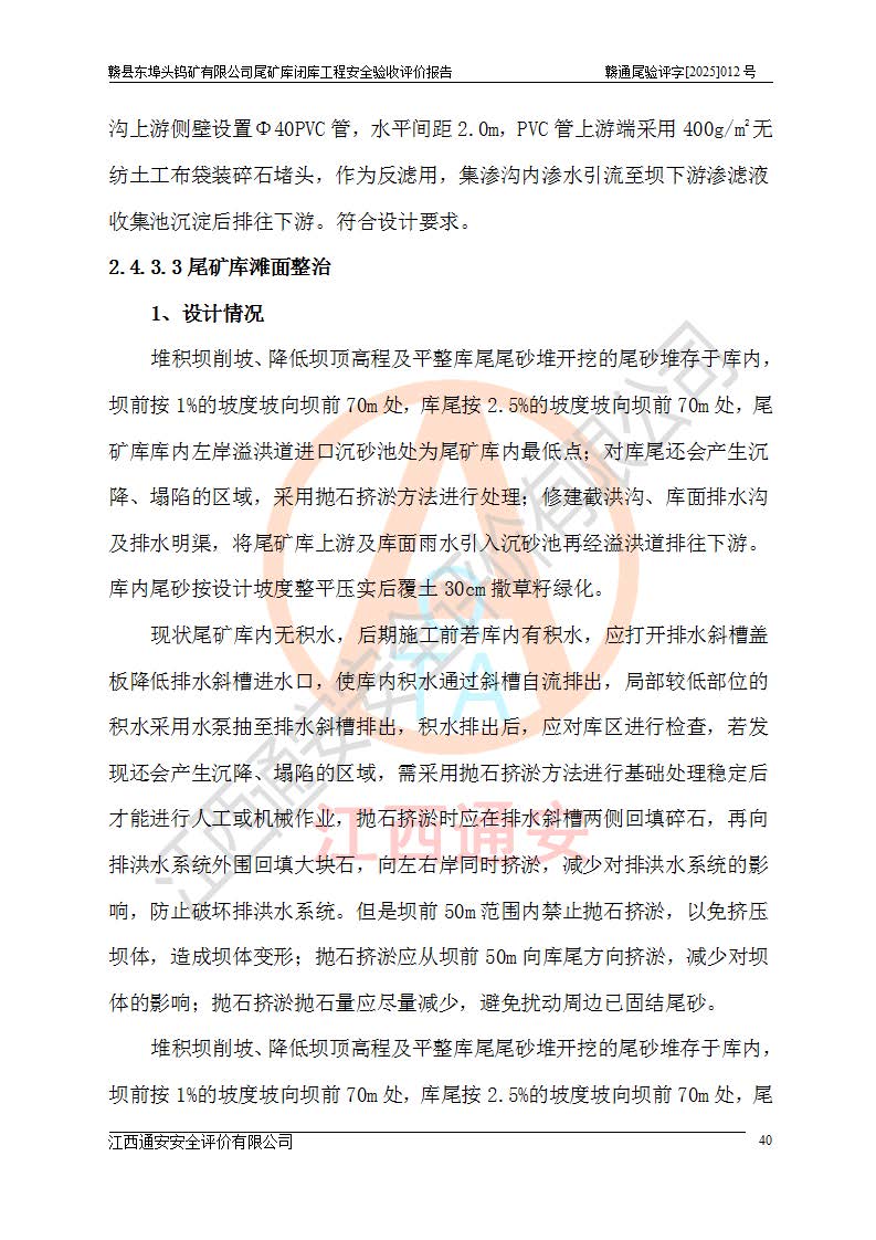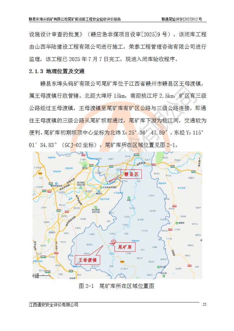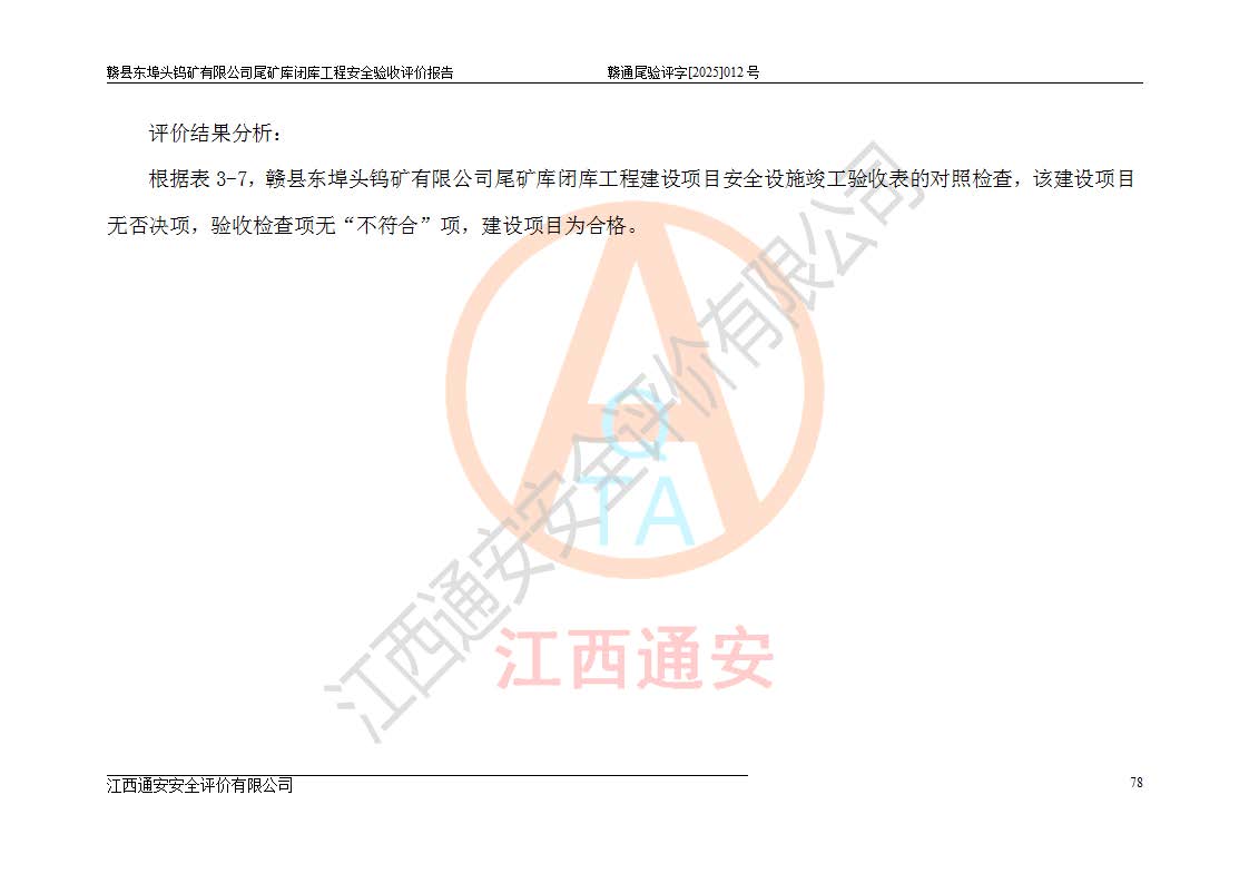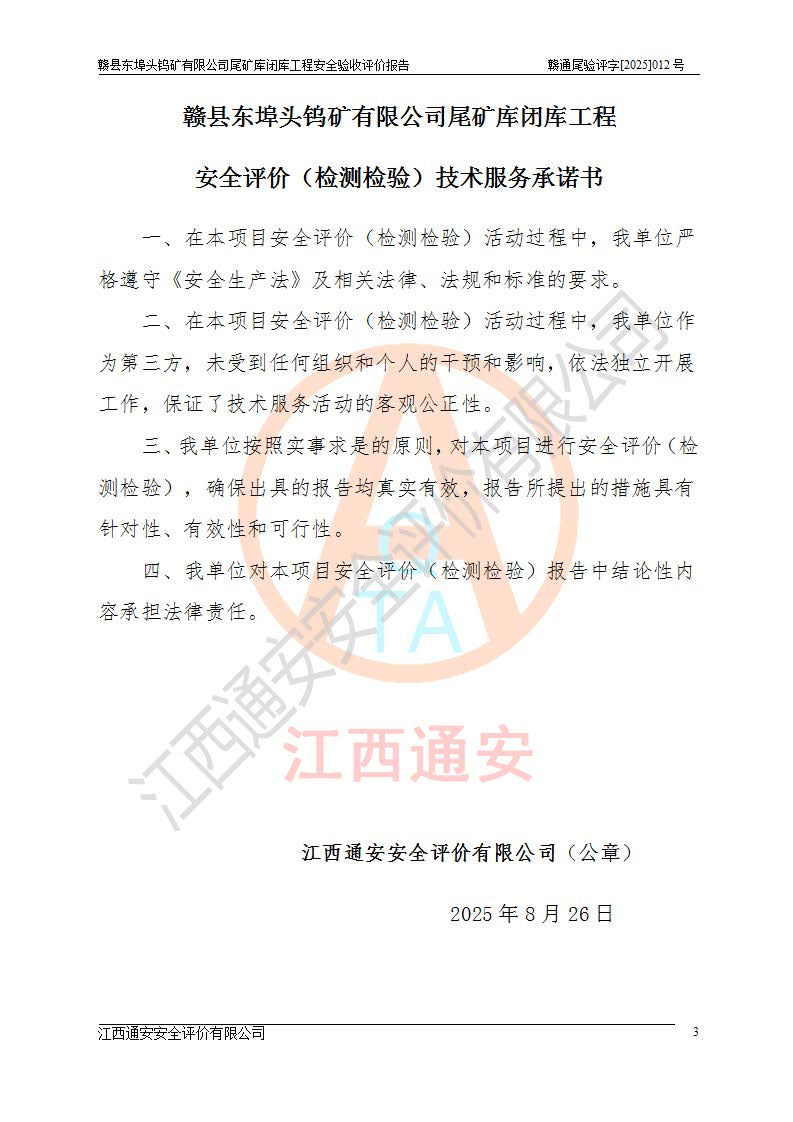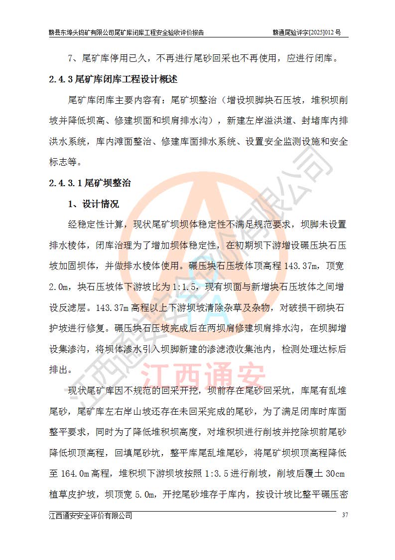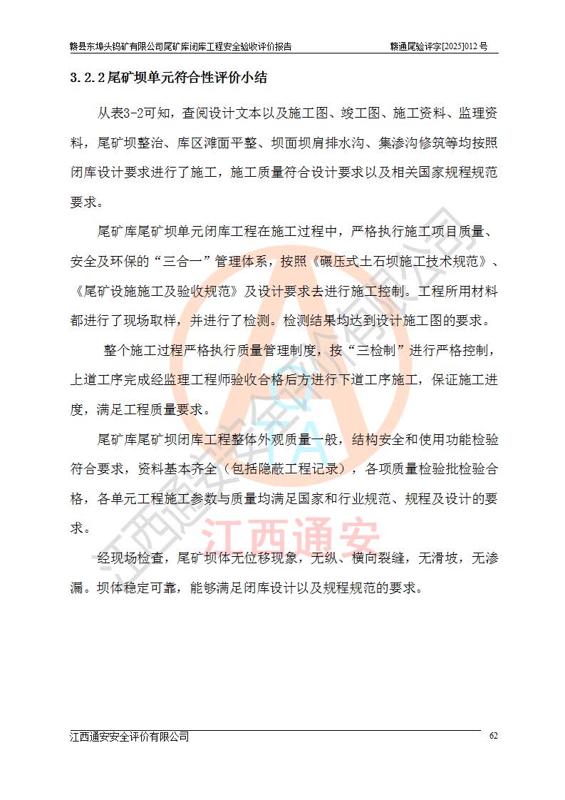 評(píng)價(jià)報(bào)告名稱 | 贛縣東埠頭鎢礦有限公司尾礦庫(kù)閉庫(kù)工程安全驗(yàn)收評(píng)價(jià)報(bào)告 | |||