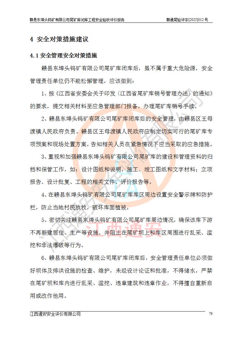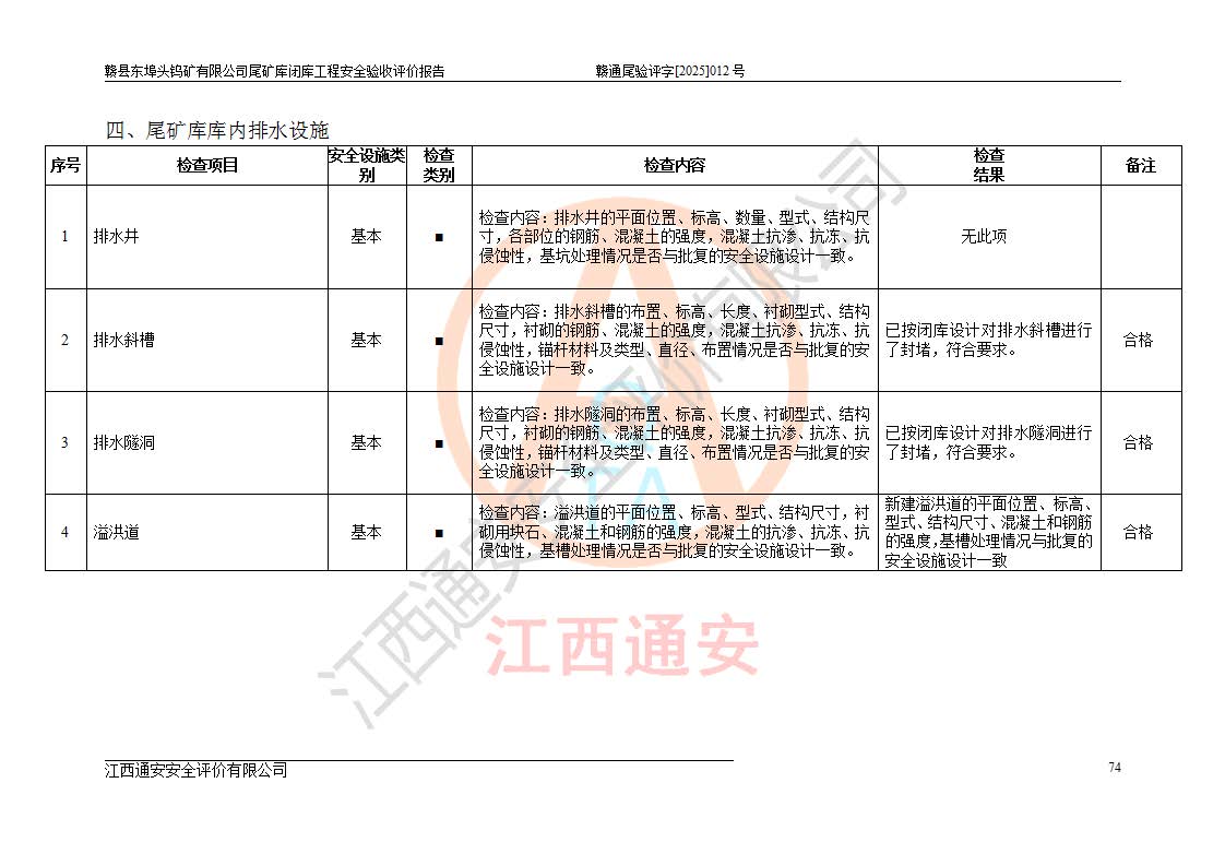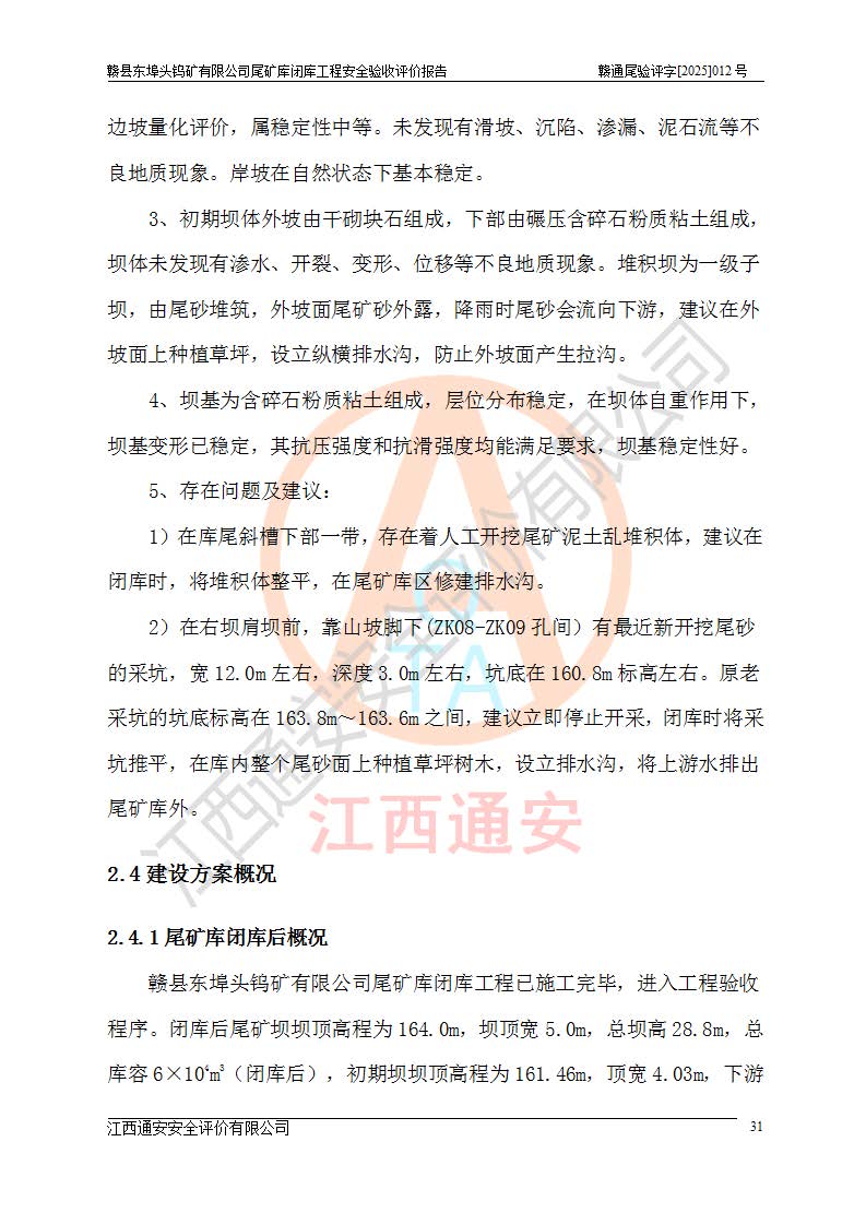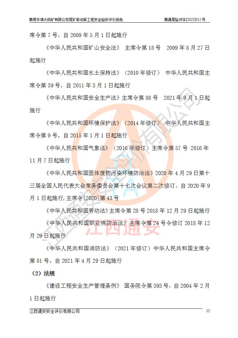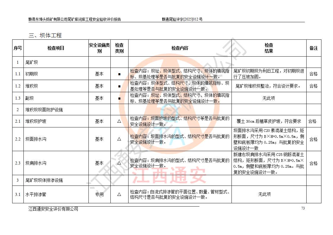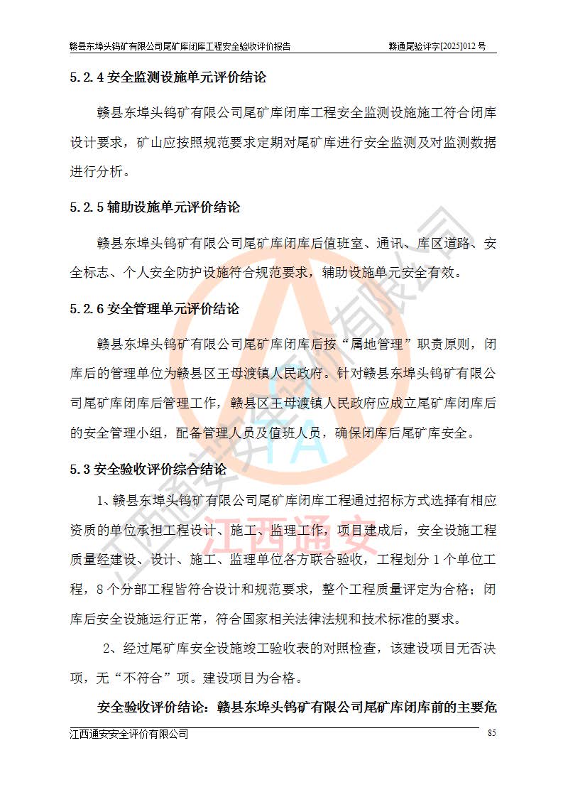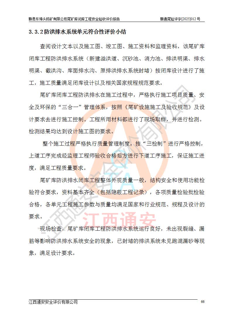 評(píng)價(jià)報(bào)告名稱 | 贛縣東埠頭鎢礦有限公司尾礦庫(kù)閉庫(kù)工程安全驗(yàn)收評(píng)價(jià)報(bào)告 | |||