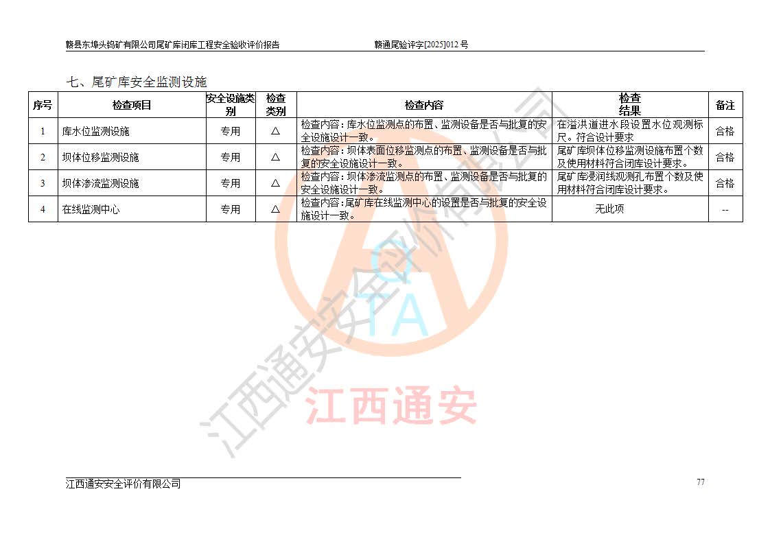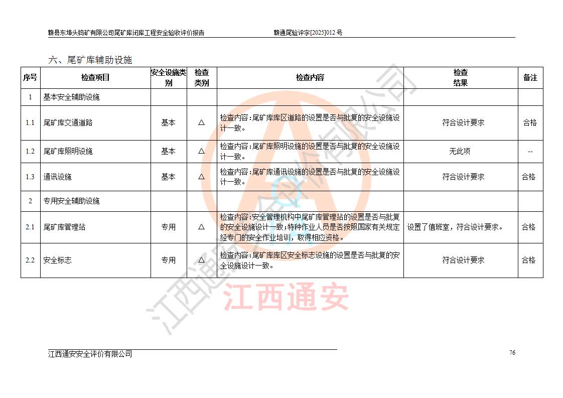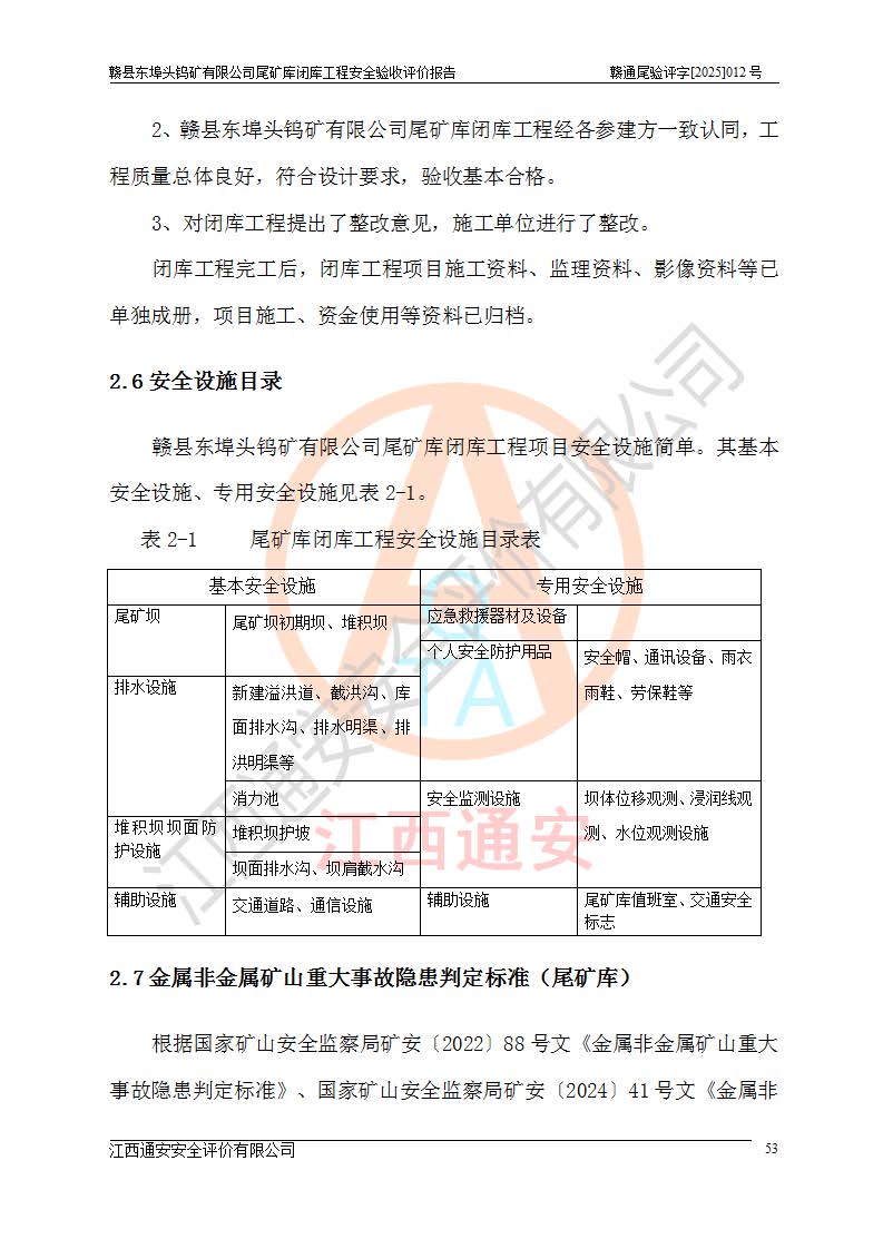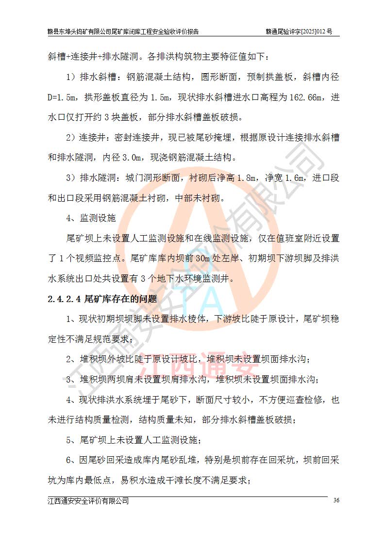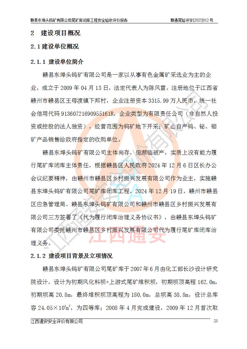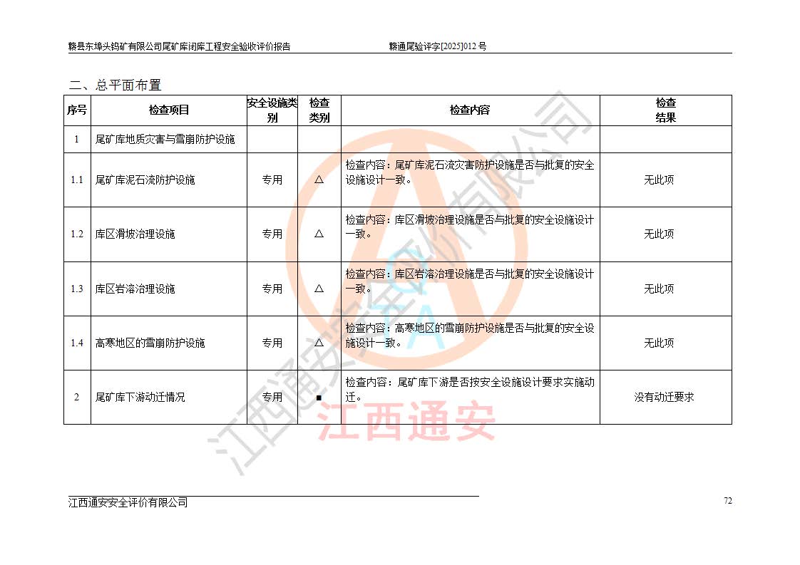 評(píng)價(jià)報(bào)告名稱 | 贛縣東埠頭鎢礦有限公司尾礦庫(kù)閉庫(kù)工程安全驗(yàn)收評(píng)價(jià)報(bào)告 | |||