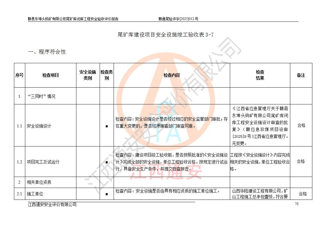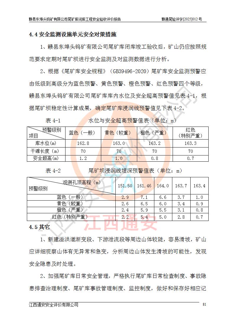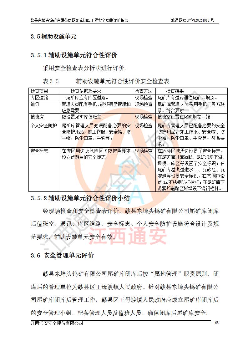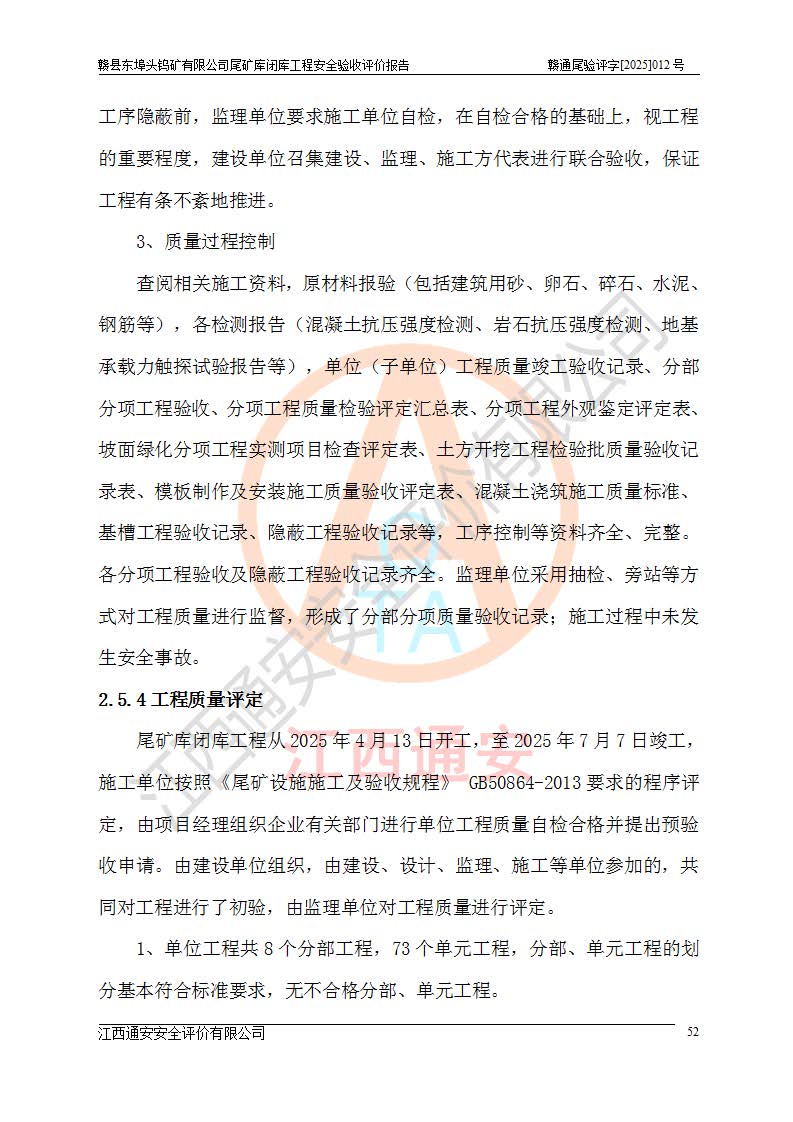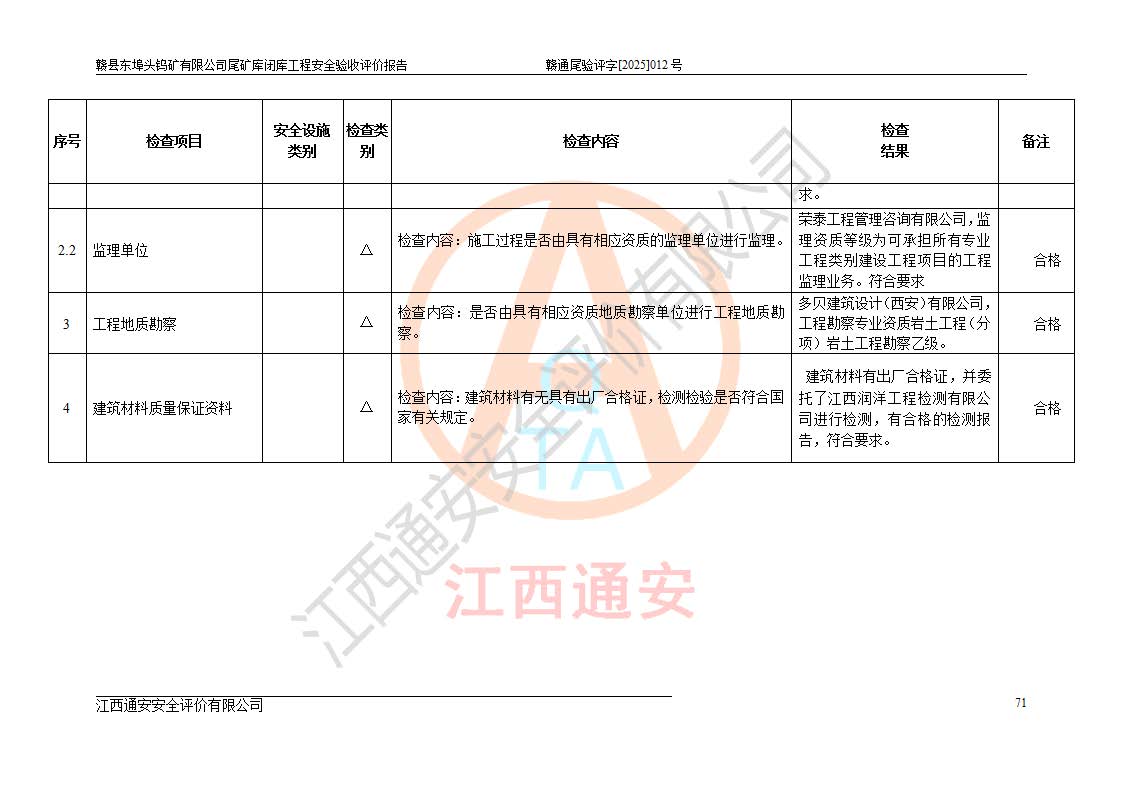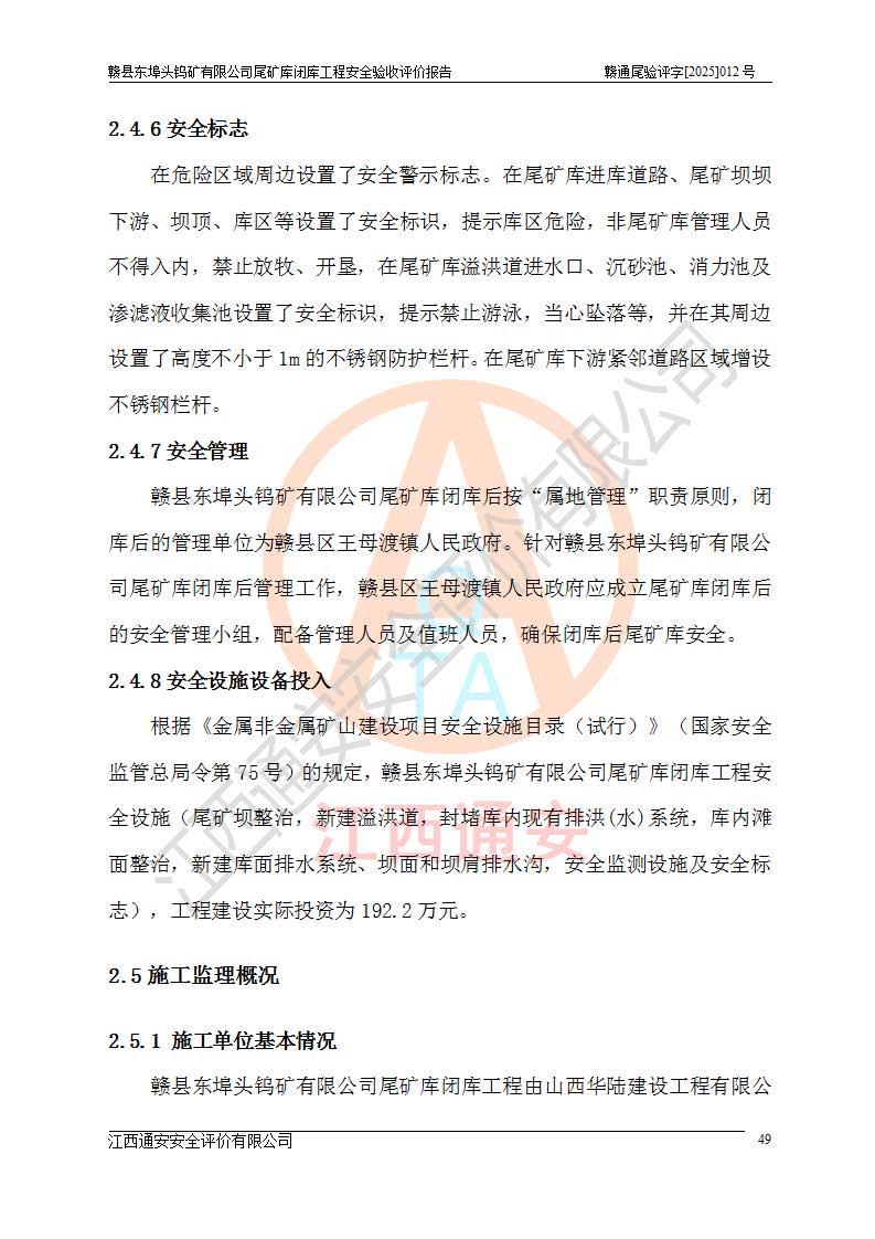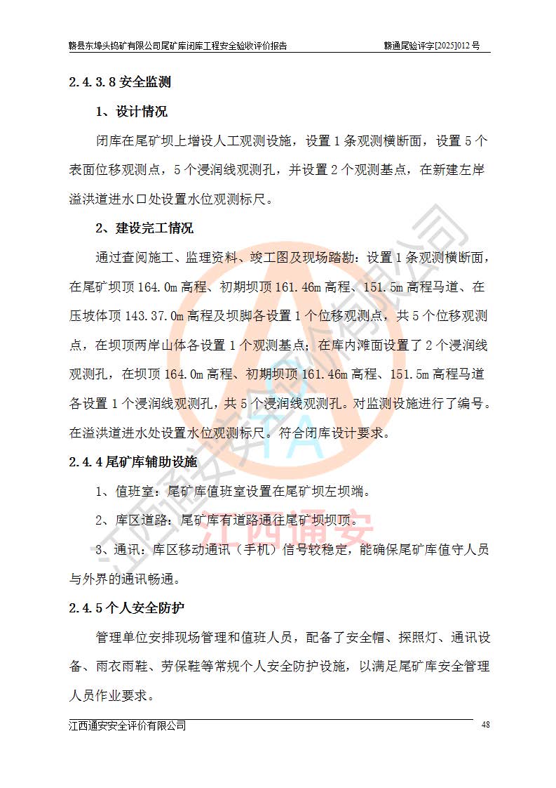 評(píng)價(jià)報(bào)告名稱 | 贛縣東埠頭鎢礦有限公司尾礦庫(kù)閉庫(kù)工程安全驗(yàn)收評(píng)價(jià)報(bào)告 | |||