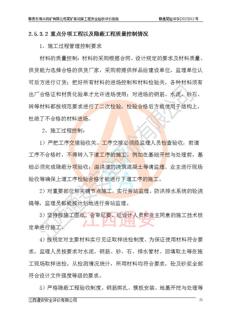 評(píng)價(jià)結(jié)論 | 贛縣東埠頭鎢礦有限公司尾礦庫(kù)閉庫(kù)前的主要危險(xiǎn)源已**排除,閉庫(kù)工程符合《尾礦庫(kù)安全監(jiān)督管理規(guī)定》、《尾礦庫(kù)安全規(guī)程》、《贛縣東埠頭鎢礦有限公司尾礦庫(kù)閉庫(kù)工程初步設(shè)計(jì)》及《贛縣東埠頭鎢礦有限公司尾礦庫(kù)閉庫(kù)工程安全設(shè)施設(shè)計(jì)》等標(biāo)準(zhǔn)規(guī)范、文件的要求,閉庫(kù)工程質(zhì)量合格,具備了安全設(shè)施竣工驗(yàn)收條件。 | |||