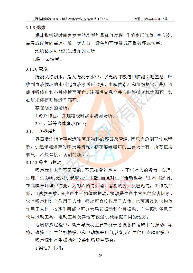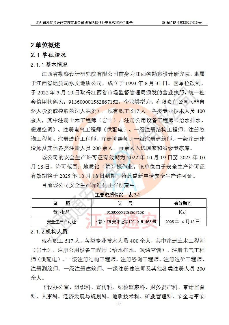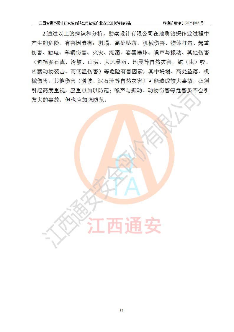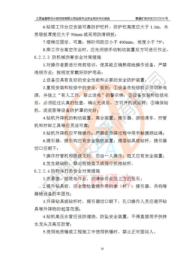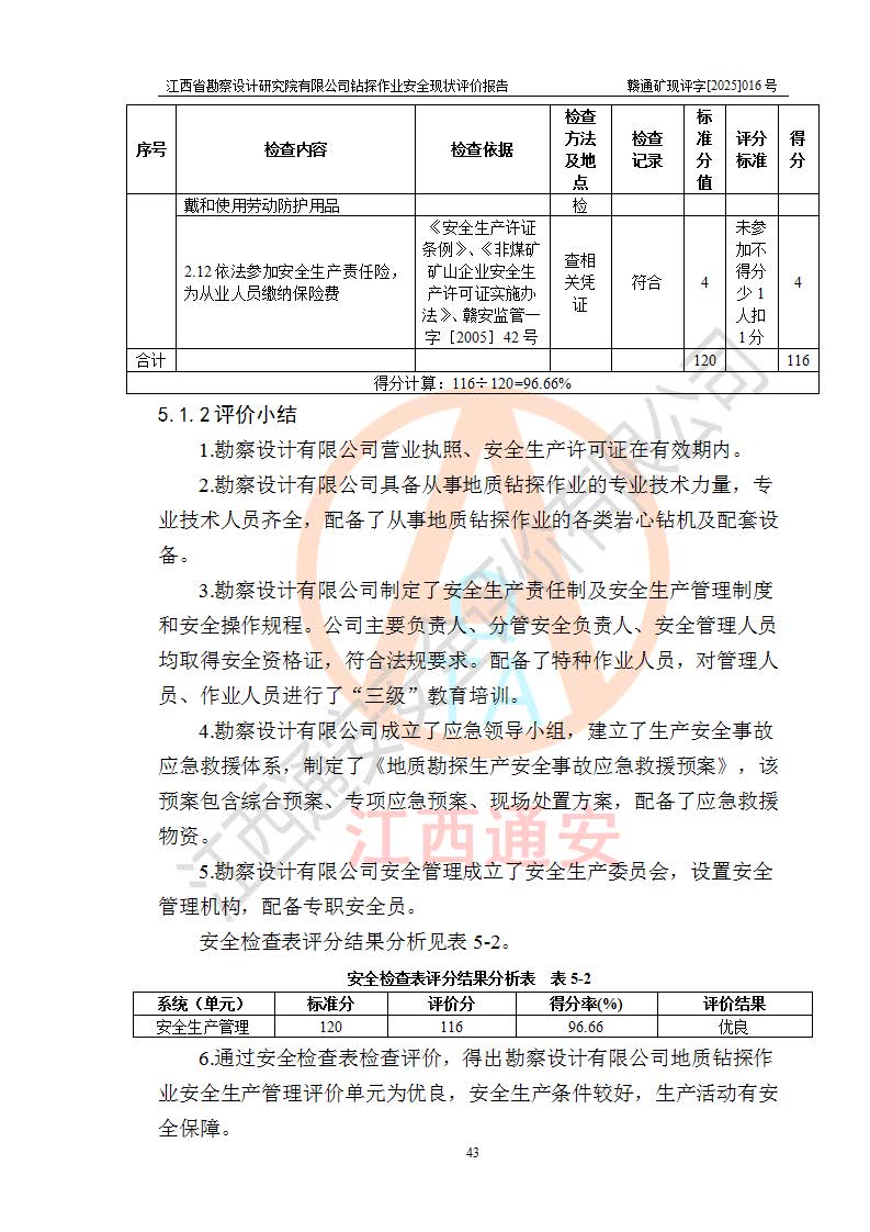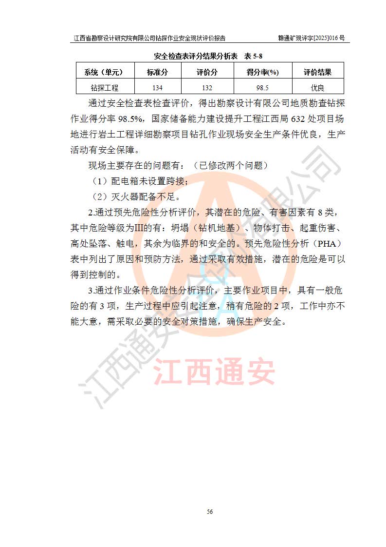 報告名稱 | 江西省勘察設(shè)計研究院有限公司地質(zhì)鉆探作業(yè)安全現(xiàn)狀評價報告 | |||||