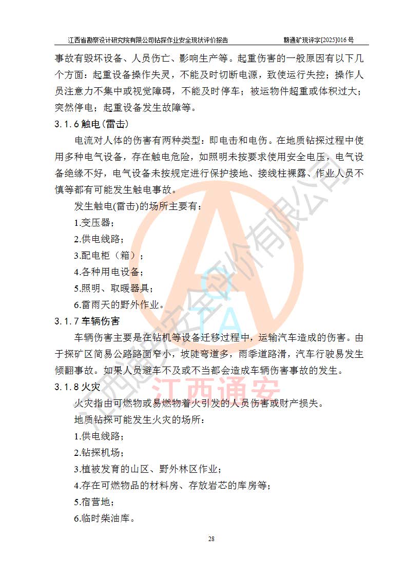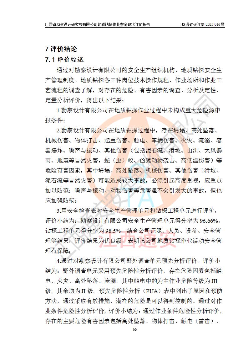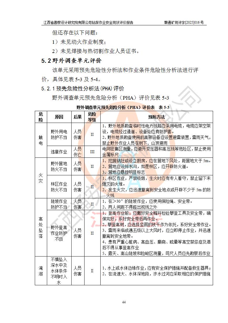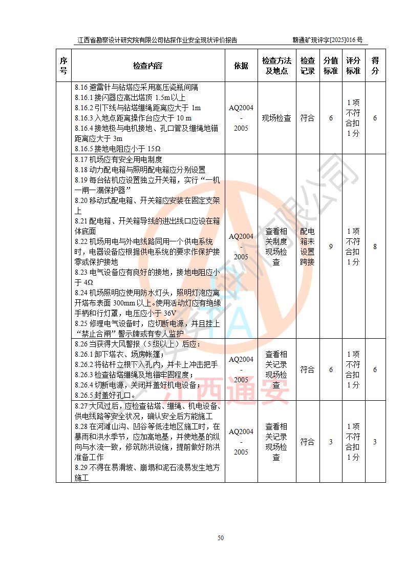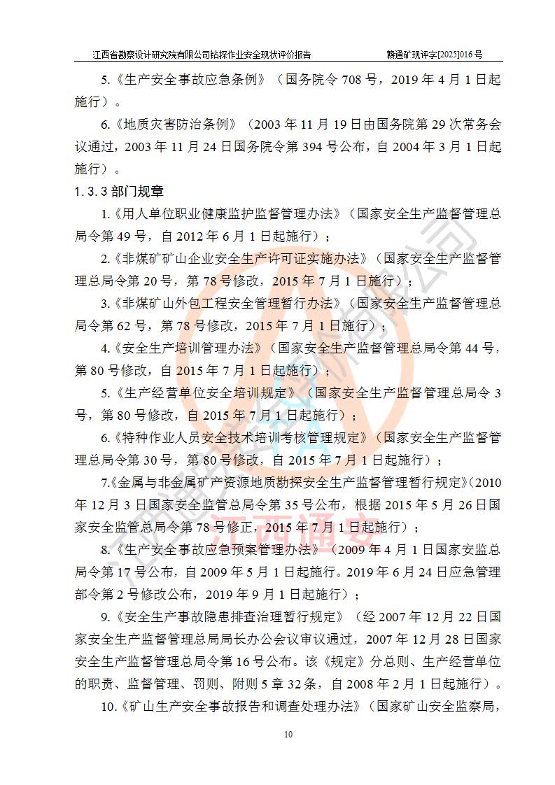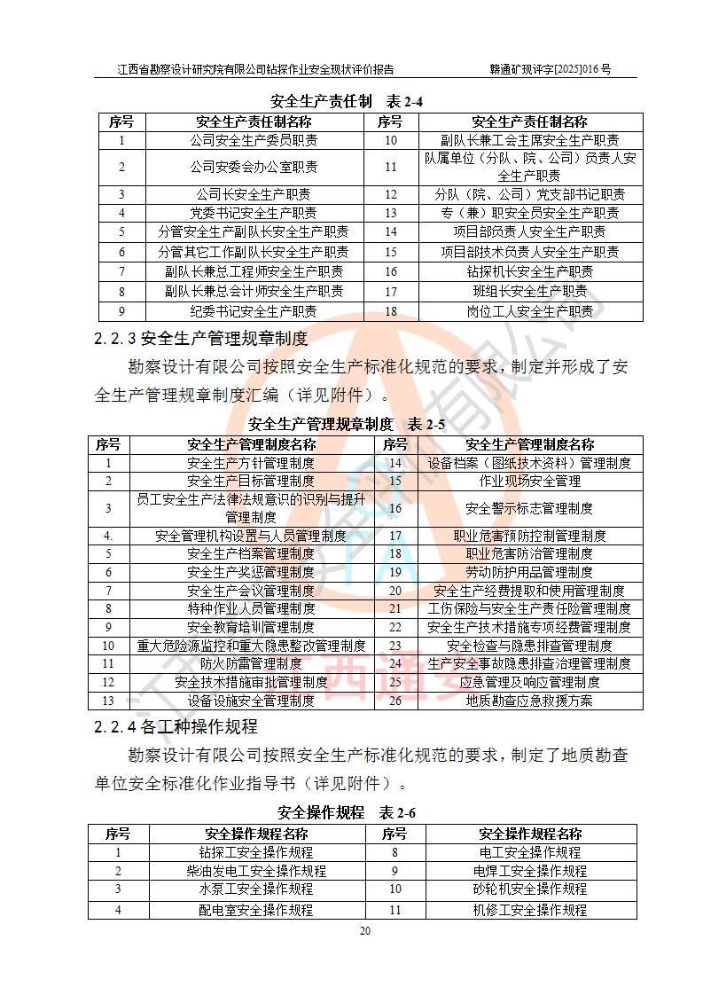 報告名稱 | 江西省勘察設(shè)計研究院有限公司地質(zhì)鉆探作業(yè)安全現(xiàn)狀評價報告 | |||||