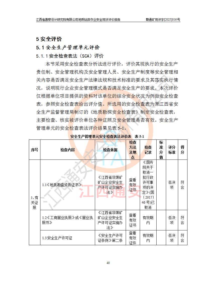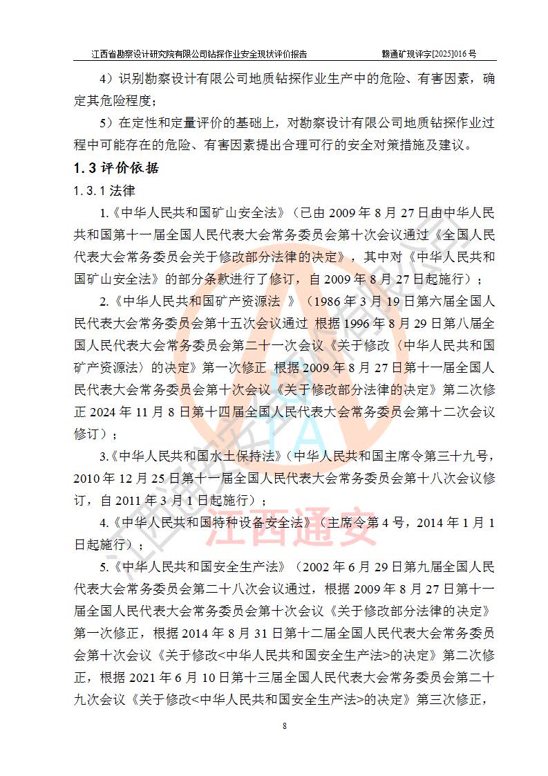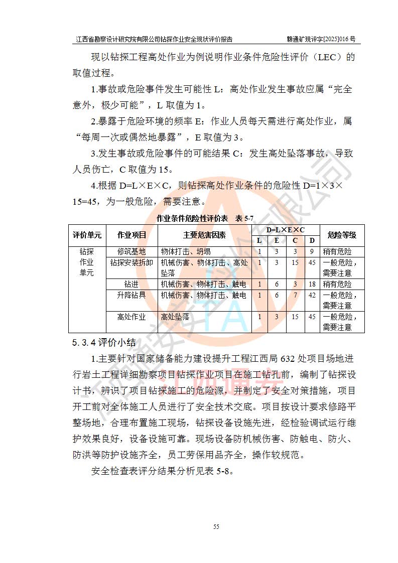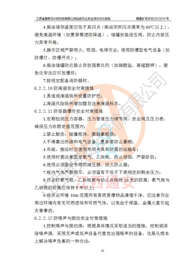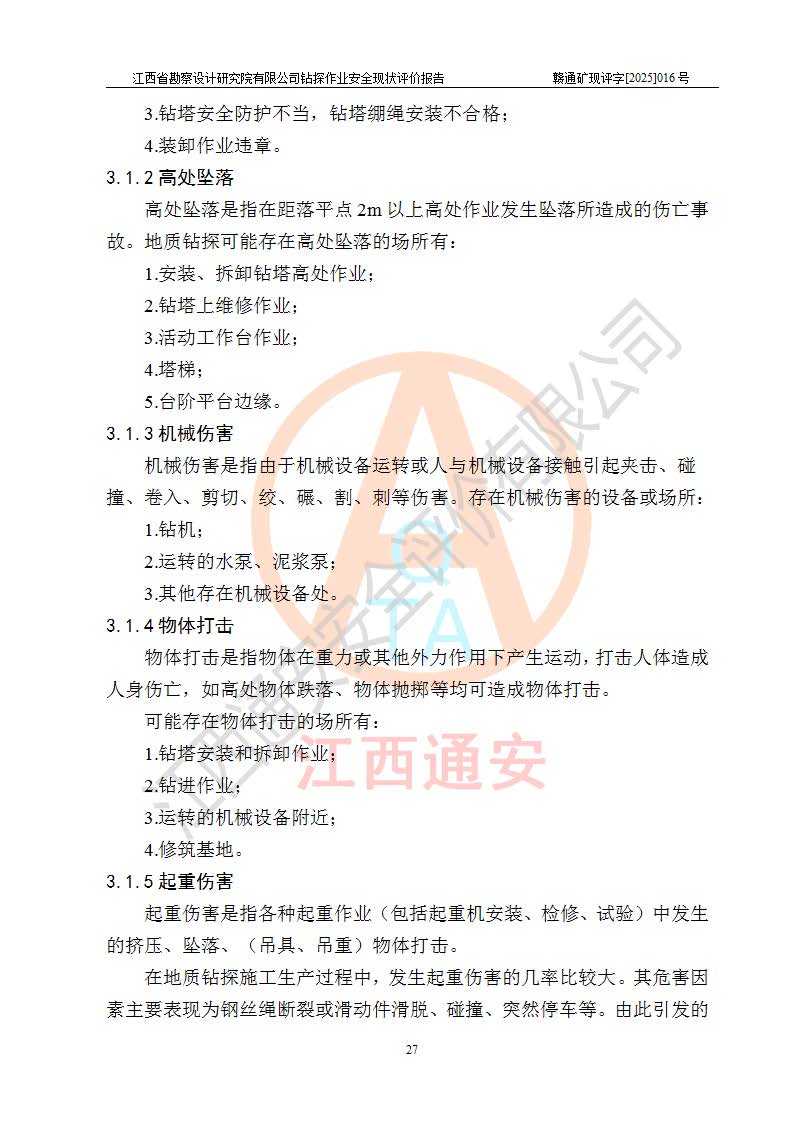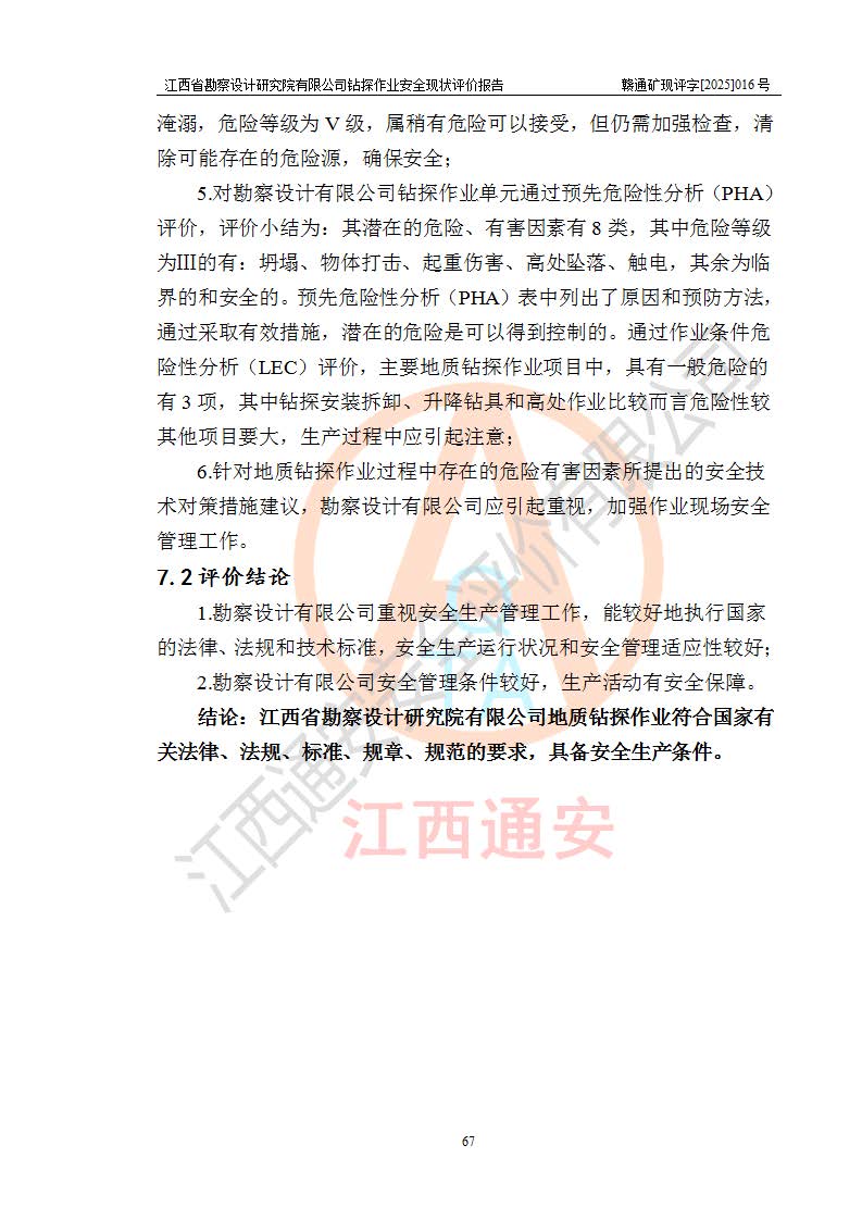 報告名稱 | 江西省勘察設(shè)計研究院有限公司地質(zhì)鉆探作業(yè)安全現(xiàn)狀評價報告 | |||||