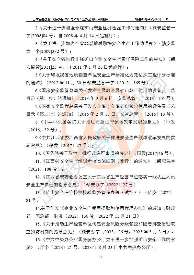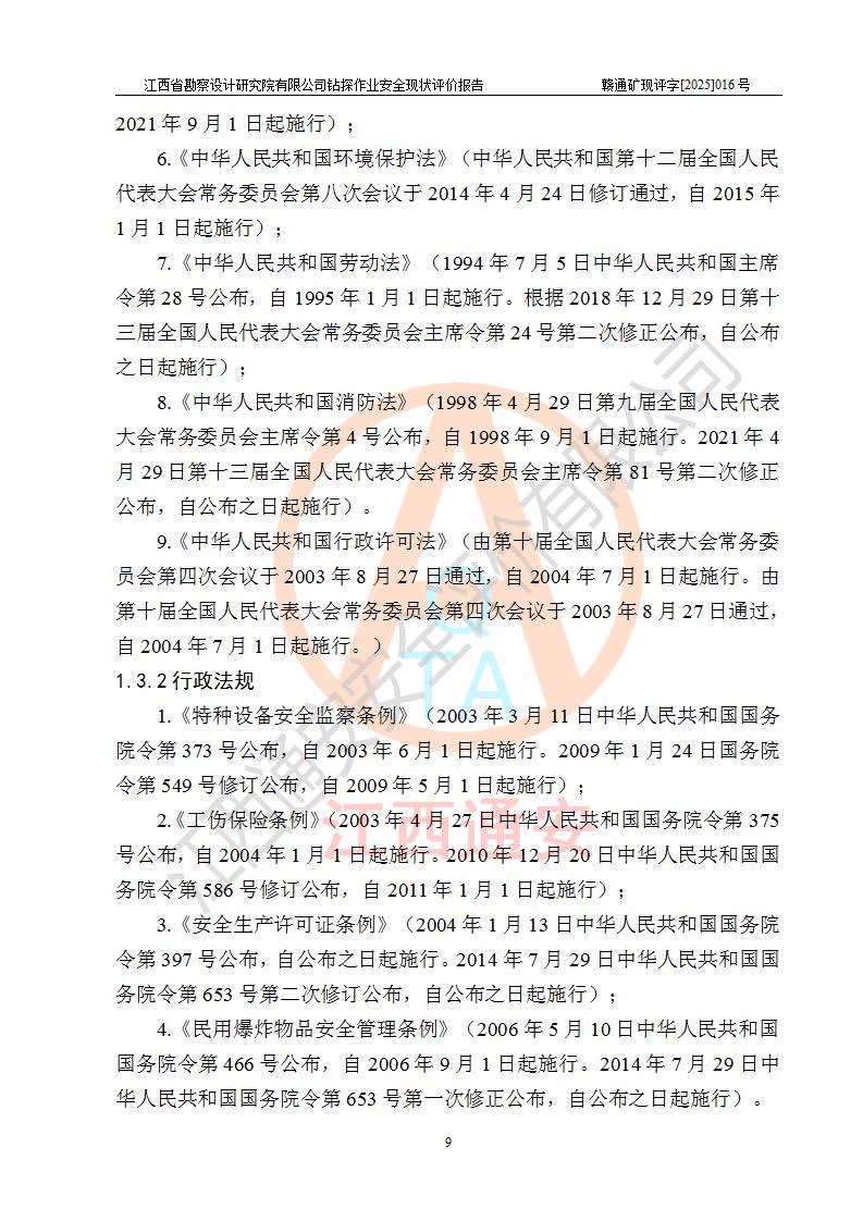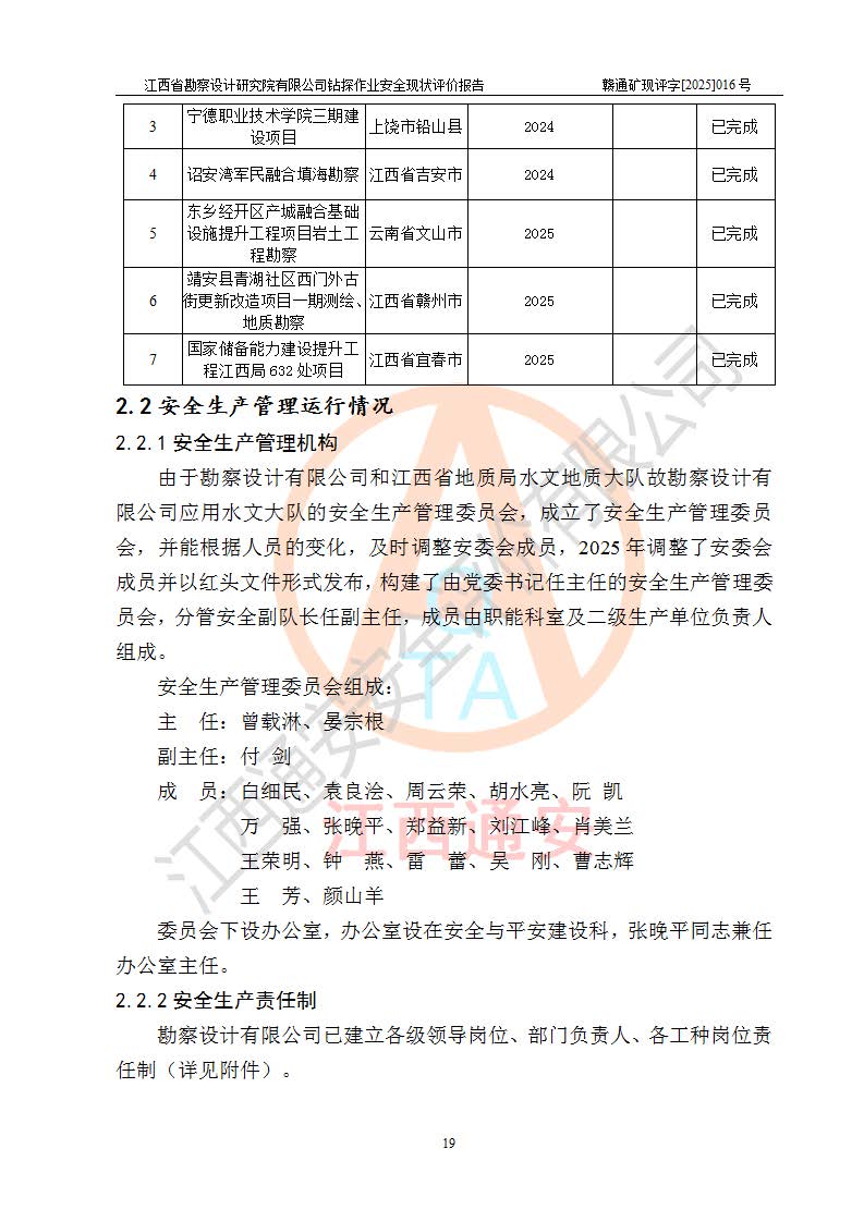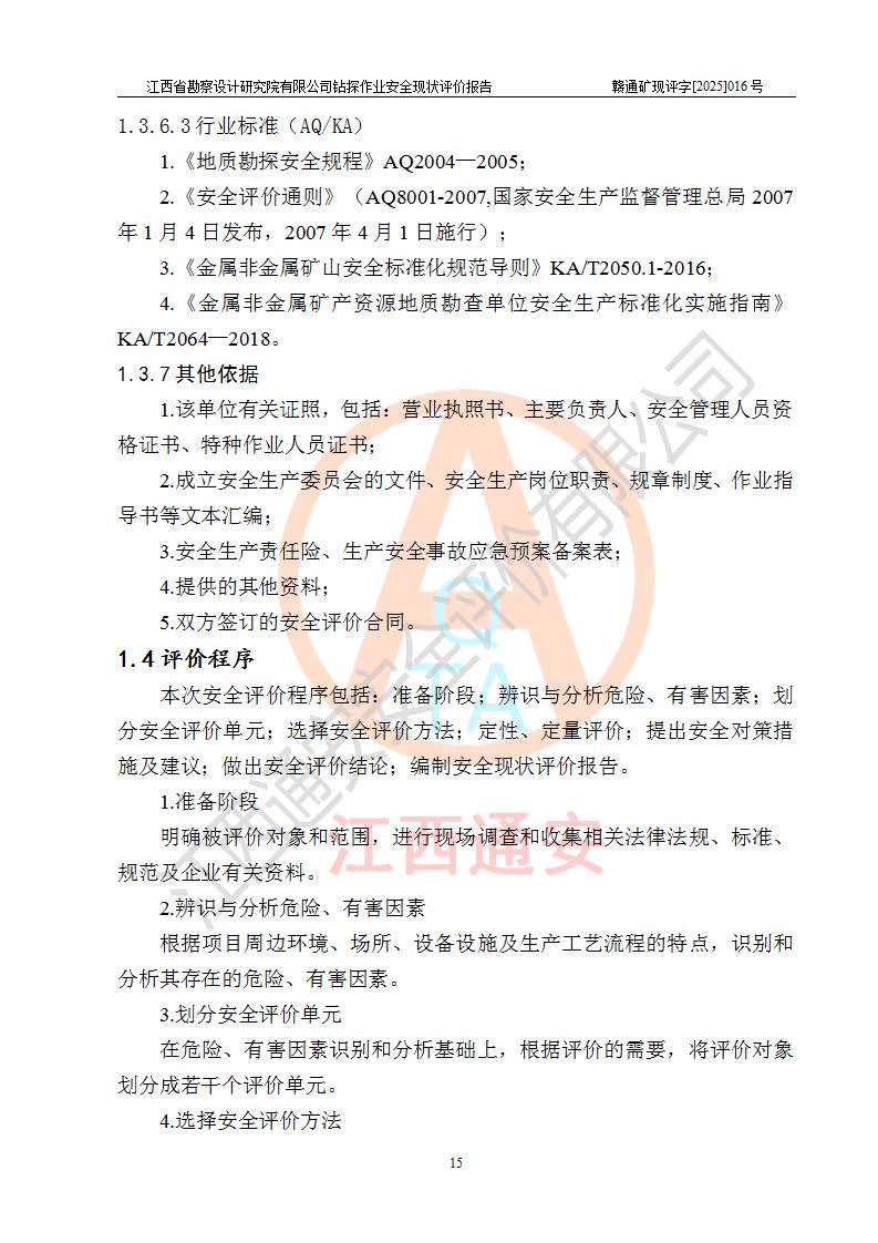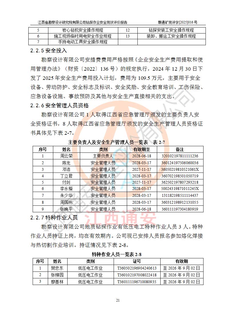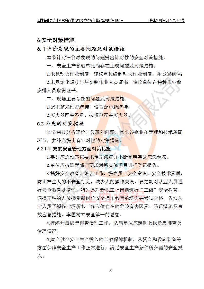 報告名稱 | 江西省勘察設(shè)計研究院有限公司地質(zhì)鉆探作業(yè)安全現(xiàn)狀評價報告 | |||||