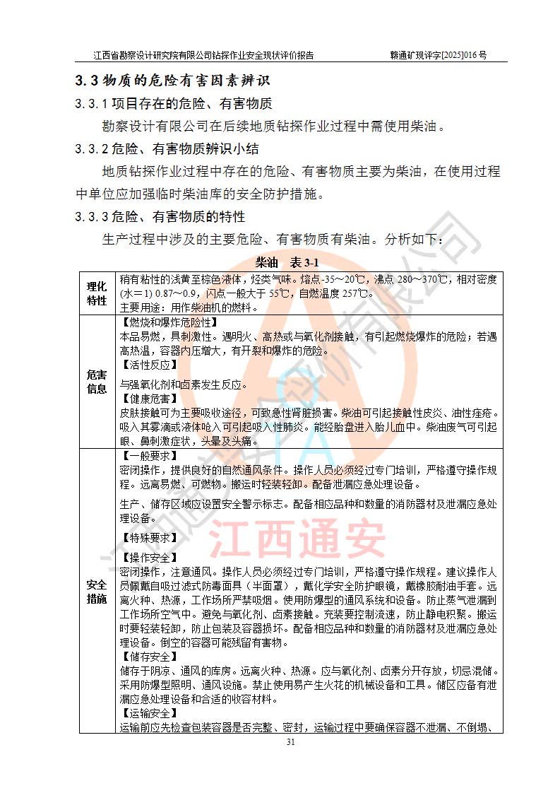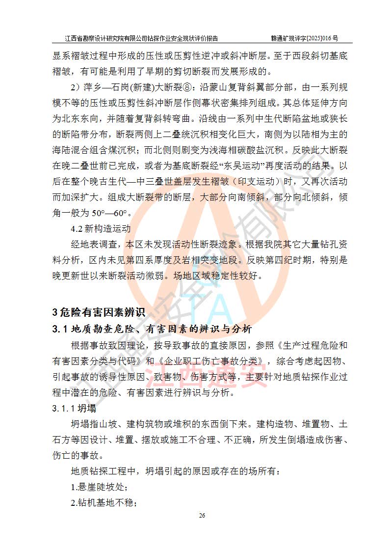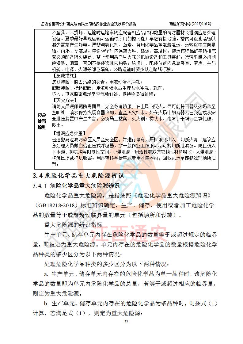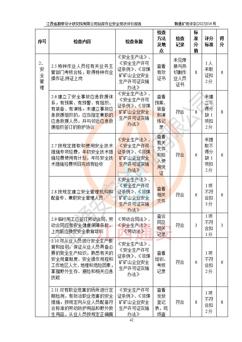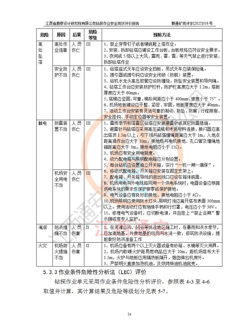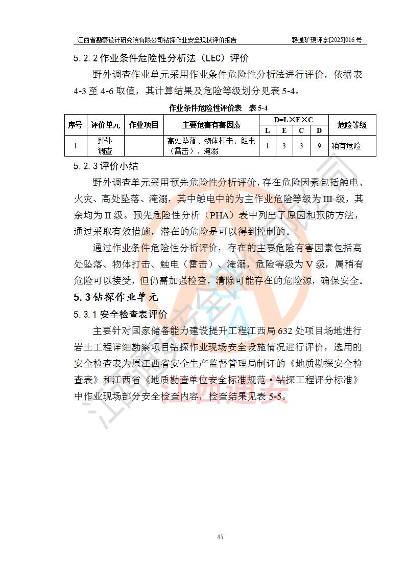報告名稱 | 江西省勘察設(shè)計研究院有限公司地質(zhì)鉆探作業(yè)安全現(xiàn)狀評價報告 | |||||