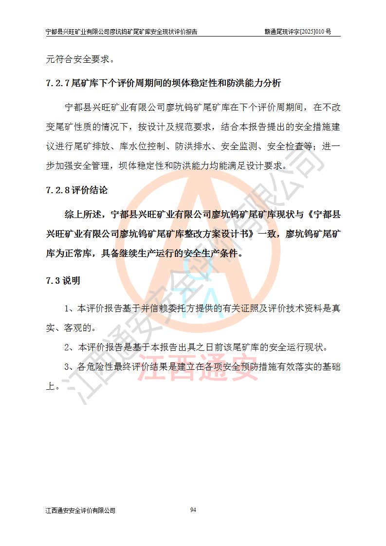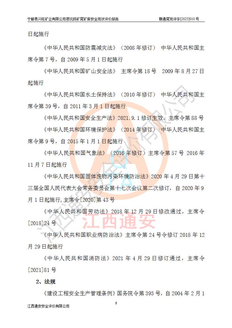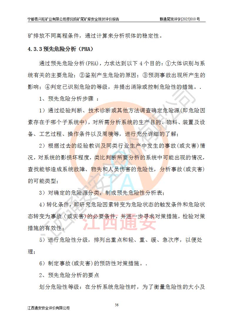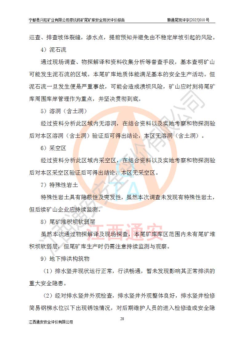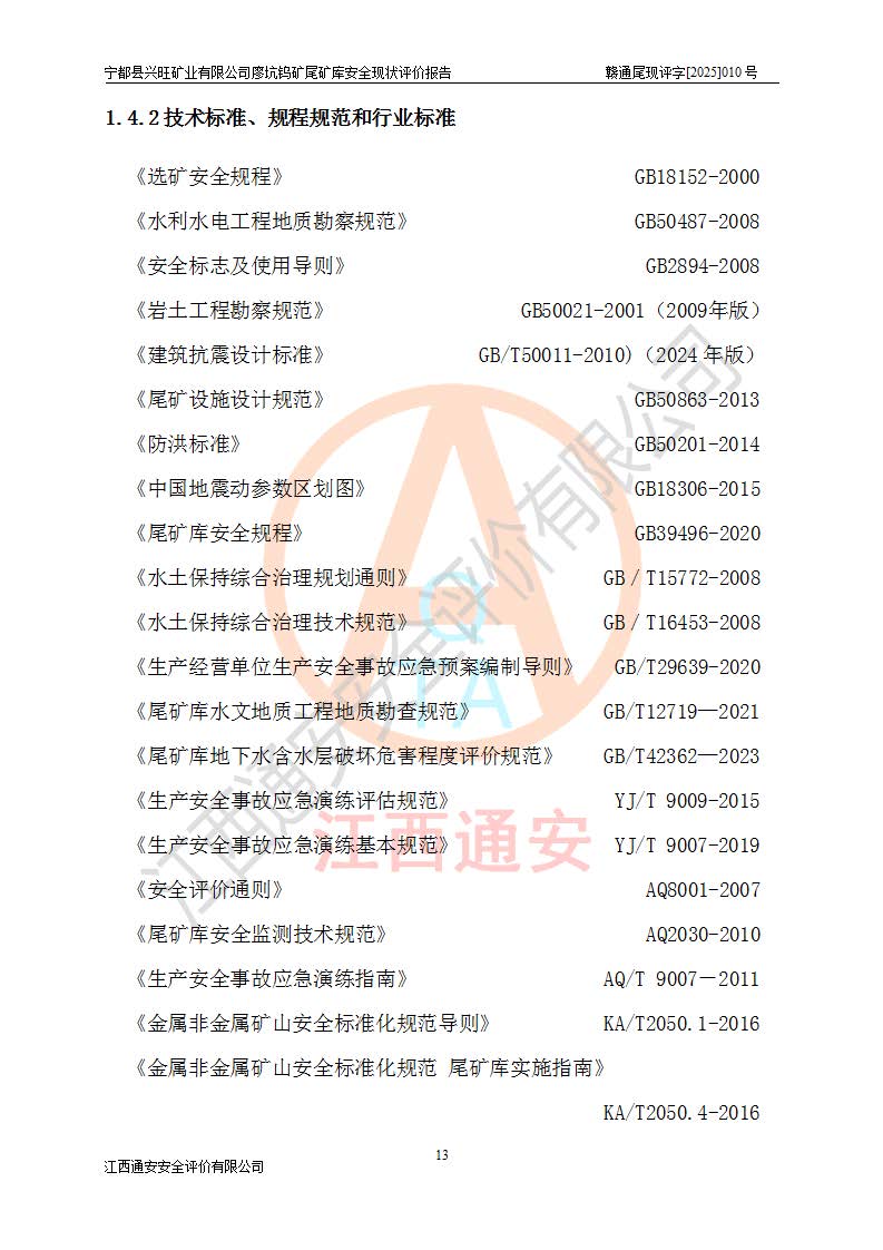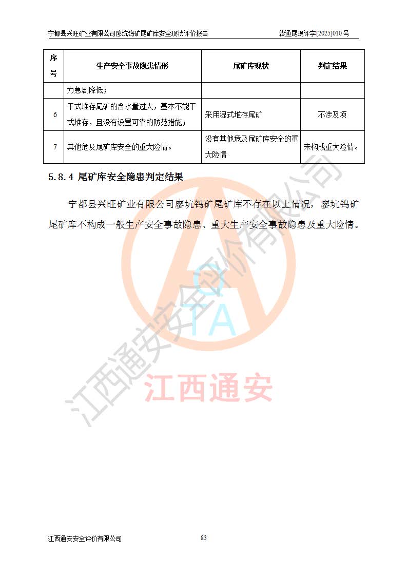 寧都縣興旺礦業(yè)有限公司廖坑鎢礦位于寧都縣縣城北西直距約15km處的安福鄉(xiāng)西甲村,地理坐標(biāo):東經(jīng)115°50′48″;北緯26°32′1″。寧都縣興旺礦業(yè)有限公司成立于2006年03月29日,統(tǒng)一社會信用代碼為91360730787253633E,企業(yè)類型為有限責(zé)任公司(自然人投資或控股),企業(yè)注冊地位于江西省贛州市寧都縣安福鄉(xiāng)西甲村,法定**人為曾德強(qiáng),注冊資本為1915萬元人民幣,所屬行業(yè)為有色金屬礦采選業(yè),經(jīng)營范圍包括鎢砂開采及廢砂石加工、銷售。 廖坑鎢礦尾礦庫位于寧都縣安福鄉(xiāng)西甲村、選礦廠東面約1.17Km的下游溝谷中,選礦廠年生產(chǎn)工作日300d,尾礦堆積干容重1.60 t/m3。尾礦庫匯水面積1.927km2,尾礦壩為漿砌塊石重力壩,壩頂高程595.0m,清基后壩底高程為571.0m,壩高24.0m,壩頂寬度2.7m,壩頂軸線長75.0m;上游壩坡1:0,下游壩坡1:1.0。尾礦從庫尾進(jìn)行排放,設(shè)計總庫容8.5×104m3,服務(wù)年限10.9年。尾礦庫總占地面積約21.0畝。為山谷型五等庫。 該尾礦庫于1982年11月由寧都縣水電施工隊建設(shè)施工,1983年11月投產(chǎn),2007年1月由江西省冶金設(shè)計院編制了《寧都縣興旺礦業(yè)有限公司廖坑鎢礦尾礦庫整改方案設(shè)計》,2008年4月2日取得江西省安全生產(chǎn)監(jiān)督管理局頒發(fā)的安全生產(chǎn)許可證,證書編號(贛)FM安許證字[2008]M1268號。2022年江西通安安全評價有限公司編制了安全現(xiàn)狀評價報告,2022年7月15日由贛州市行政審批局下發(fā)了安全生產(chǎn)許可證,證號(贛)FM安許證字[2022]B0081號,(贛市行審證(3)字[2022]第274號),**期至2025年7月14日。 依照《非煤礦礦山企業(yè)安全生產(chǎn)許可證延期換證工作》的通知,根據(jù)***《安全生產(chǎn)許可證條例》、《江西省安全生產(chǎn)條例》、《非煤礦山安全生產(chǎn)許可證實施辦法》、《江西省非煤礦礦山企業(yè)安全生產(chǎn)許可證辦法》規(guī)定及非煤礦山安全評價導(dǎo)則的要求,受寧都縣興旺礦業(yè)有限公司的委托,我公司承擔(dān)廖坑鎢礦尾礦庫延期換證的安全現(xiàn)狀評價工作。 |