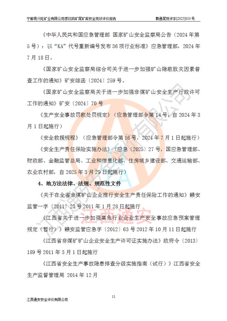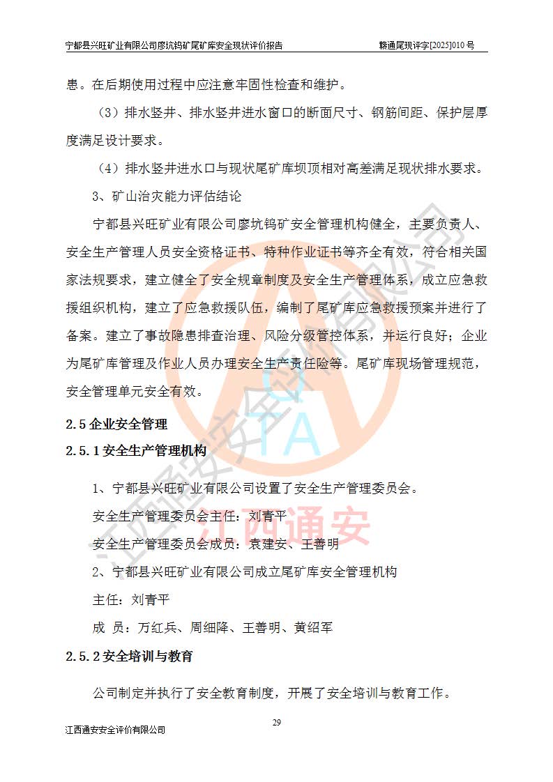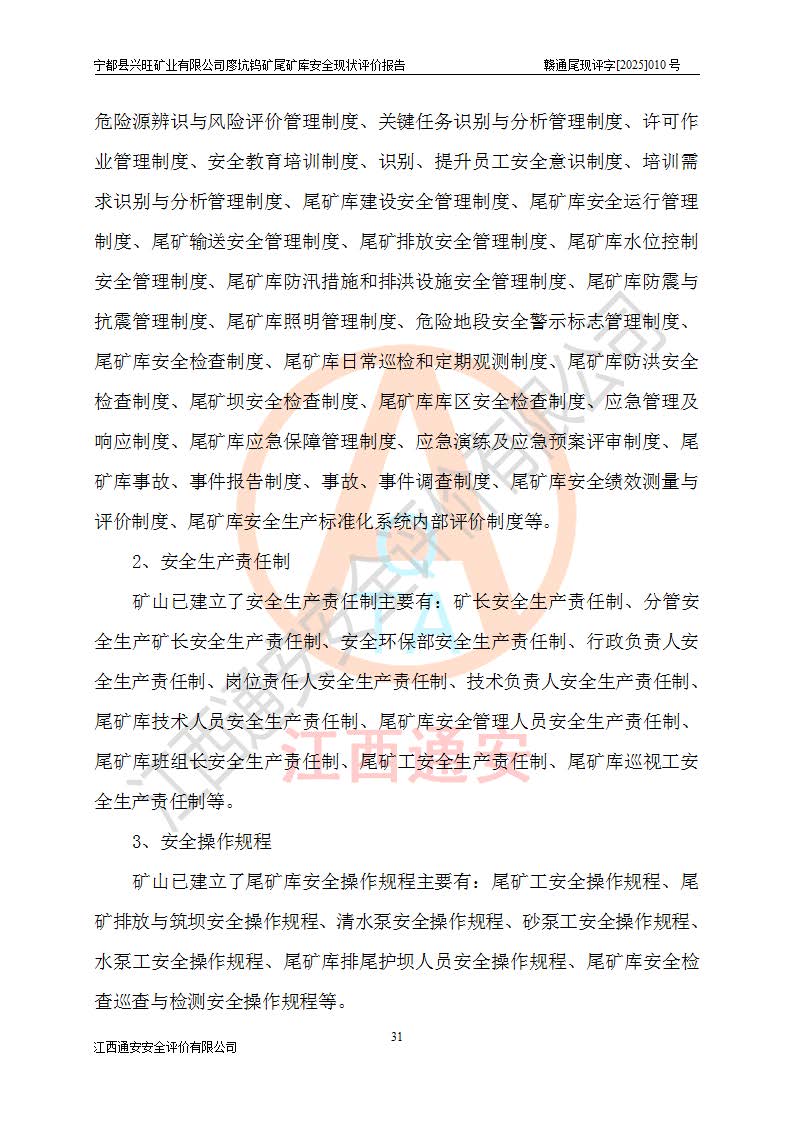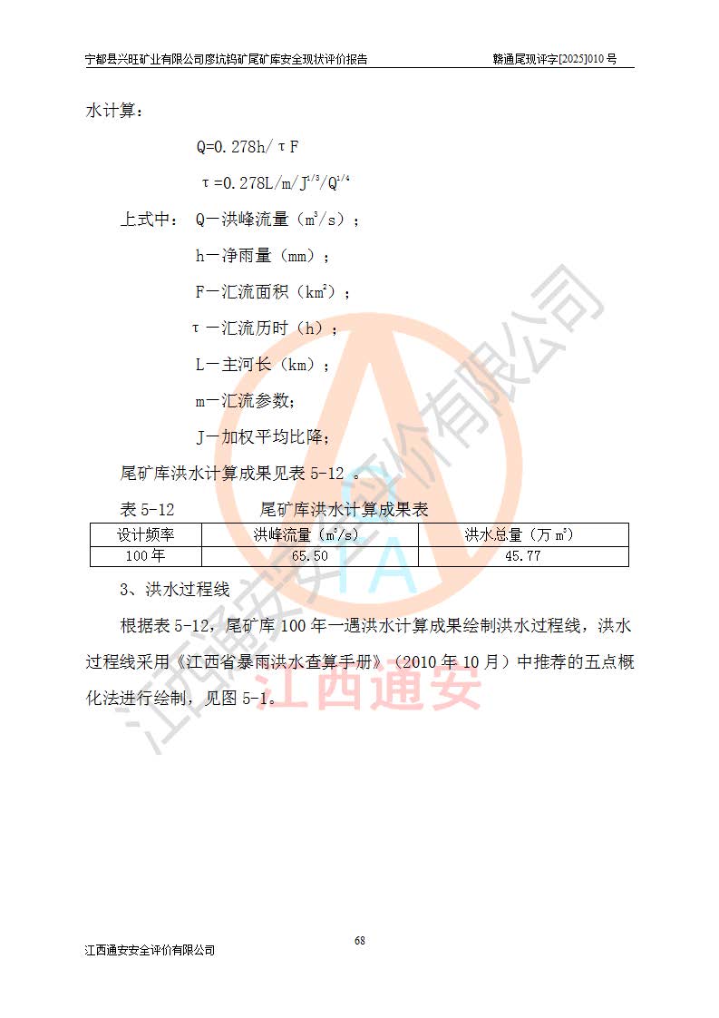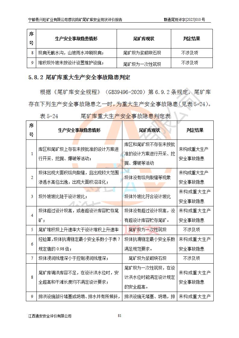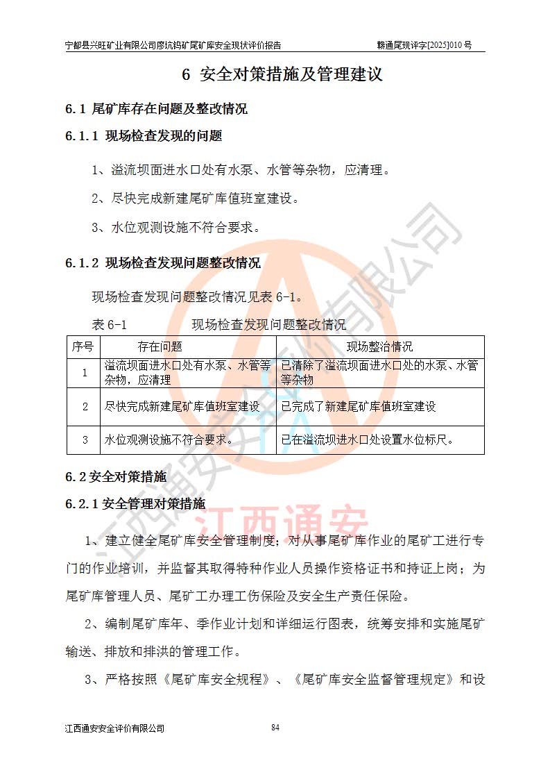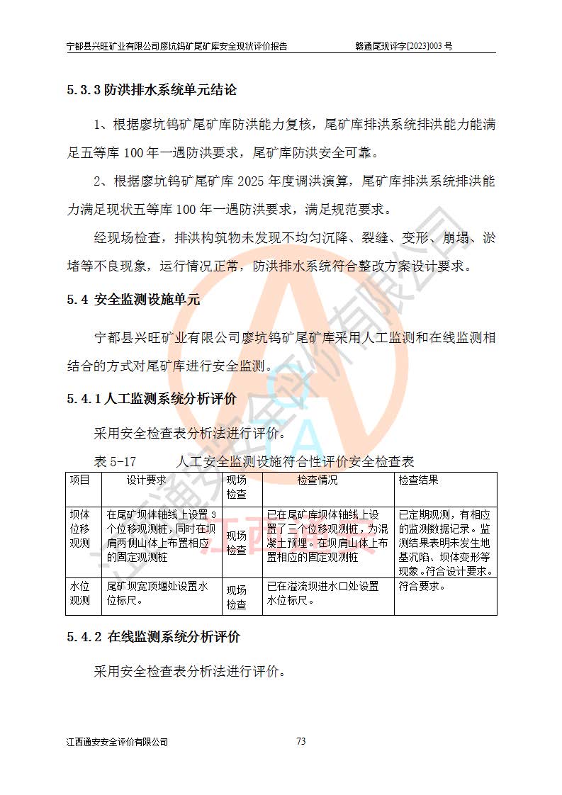 寧都縣興旺礦業(yè)有限公司廖坑鎢礦位于寧都縣縣城北西直距約15km處的安福鄉(xiāng)西甲村,地理坐標(biāo):東經(jīng)115°50′48″;北緯26°32′1″。寧都縣興旺礦業(yè)有限公司成立于2006年03月29日,統(tǒng)一社會信用代碼為91360730787253633E,企業(yè)類型為有限責(zé)任公司(自然人投資或控股),企業(yè)注冊地位于江西省贛州市寧都縣安福鄉(xiāng)西甲村,法定**人為曾德強(qiáng),注冊資本為1915萬元人民幣,所屬行業(yè)為有色金屬礦采選業(yè),經(jīng)營范圍包括鎢砂開采及廢砂石加工、銷售。 廖坑鎢礦尾礦庫位于寧都縣安福鄉(xiāng)西甲村、選礦廠東面約1.17Km的下游溝谷中,選礦廠年生產(chǎn)工作日300d,尾礦堆積干容重1.60 t/m3。尾礦庫匯水面積1.927km2,尾礦壩為漿砌塊石重力壩,壩頂高程595.0m,清基后壩底高程為571.0m,壩高24.0m,壩頂寬度2.7m,壩頂軸線長75.0m;上游壩坡1:0,下游壩坡1:1.0。尾礦從庫尾進(jìn)行排放,設(shè)計總庫容8.5×104m3,服務(wù)年限10.9年。尾礦庫總占地面積約21.0畝。為山谷型五等庫。 該尾礦庫于1982年11月由寧都縣水電施工隊建設(shè)施工,1983年11月投產(chǎn),2007年1月由江西省冶金設(shè)計院編制了《寧都縣興旺礦業(yè)有限公司廖坑鎢礦尾礦庫整改方案設(shè)計》,2008年4月2日取得江西省安全生產(chǎn)監(jiān)督管理局頒發(fā)的安全生產(chǎn)許可證,證書編號(贛)FM安許證字[2008]M1268號。2022年江西通安安全評價有限公司編制了安全現(xiàn)狀評價報告,2022年7月15日由贛州市行政審批局下發(fā)了安全生產(chǎn)許可證,證號(贛)FM安許證字[2022]B0081號,(贛市行審證(3)字[2022]第274號),**期至2025年7月14日。 依照《非煤礦礦山企業(yè)安全生產(chǎn)許可證延期換證工作》的通知,根據(jù)***《安全生產(chǎn)許可證條例》、《江西省安全生產(chǎn)條例》、《非煤礦山安全生產(chǎn)許可證實施辦法》、《江西省非煤礦礦山企業(yè)安全生產(chǎn)許可證辦法》規(guī)定及非煤礦山安全評價導(dǎo)則的要求,受寧都縣興旺礦業(yè)有限公司的委托,我公司承擔(dān)廖坑鎢礦尾礦庫延期換證的安全現(xiàn)狀評價工作。 |