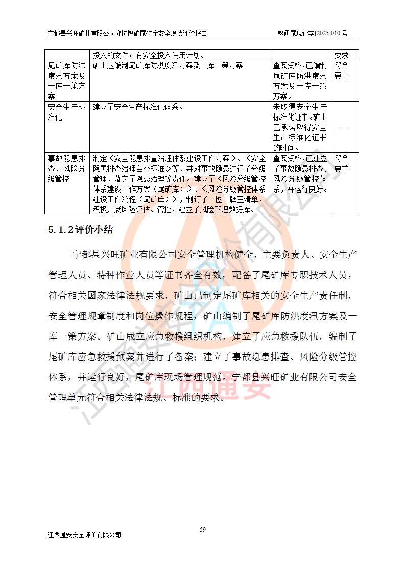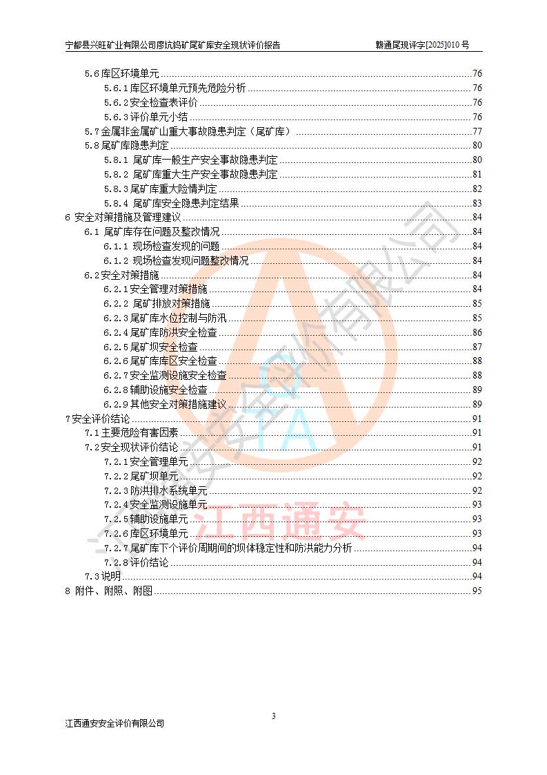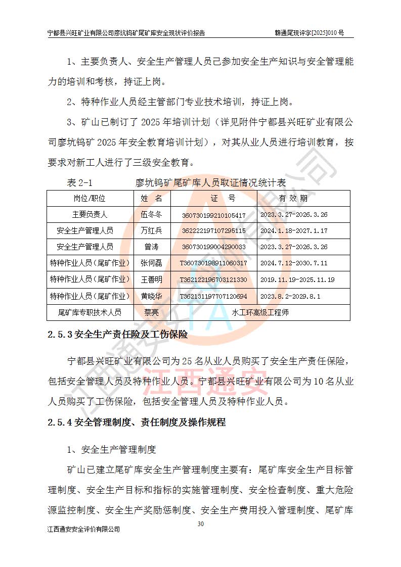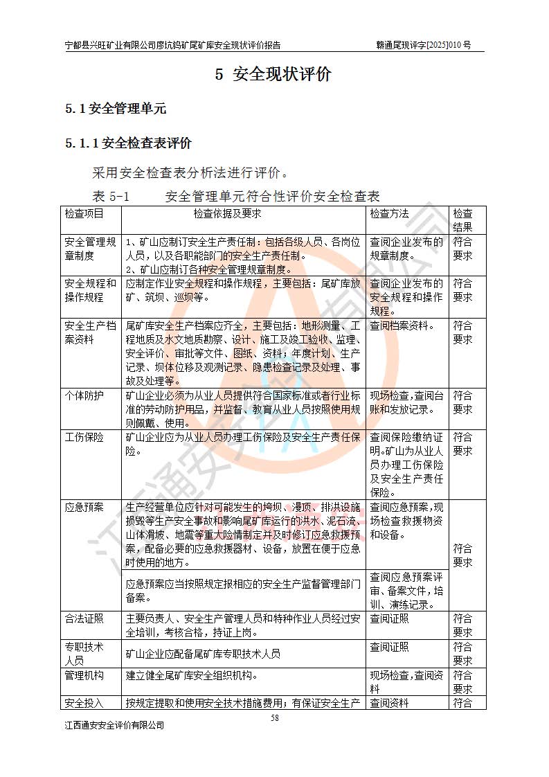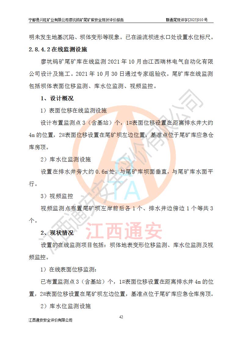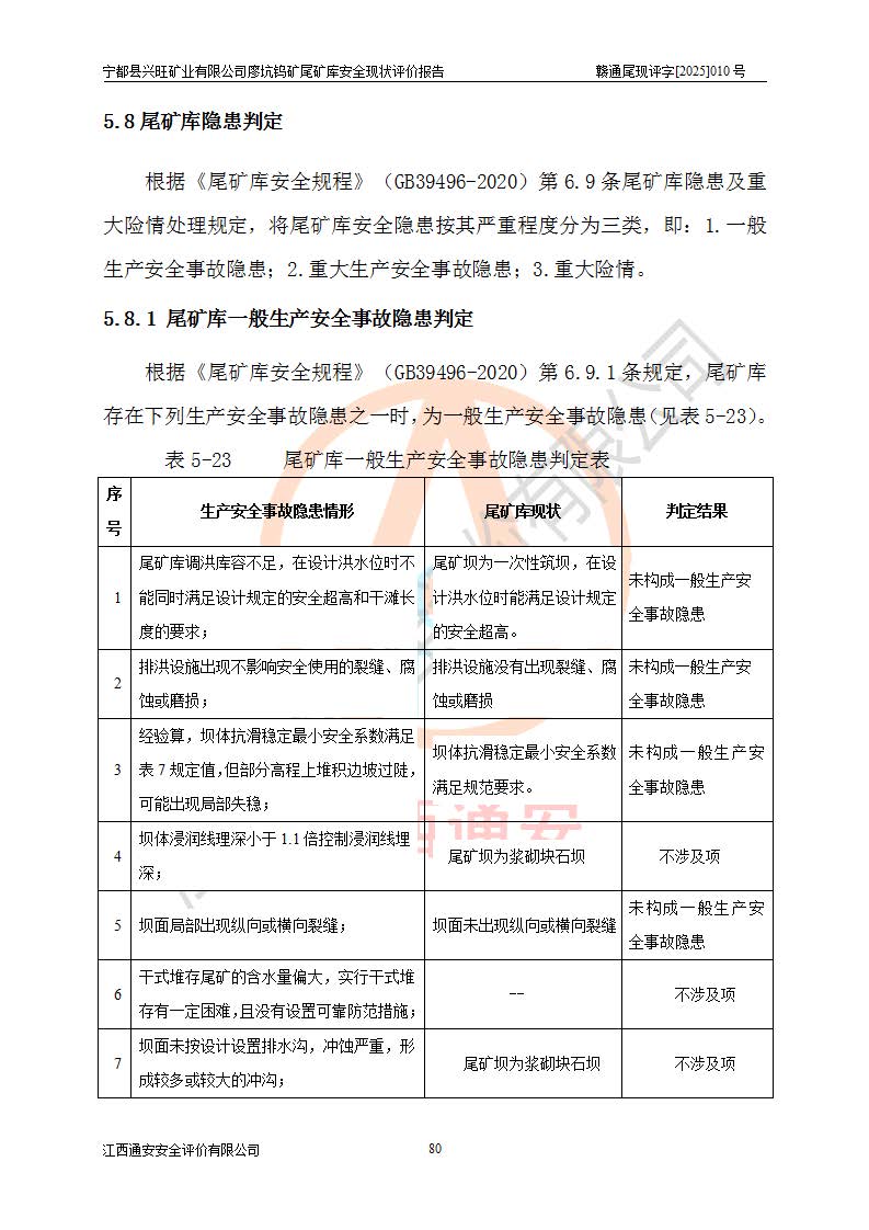 寧都縣興旺礦業(yè)有限公司廖坑鎢礦位于寧都縣縣城北西直距約15km處的安福鄉(xiāng)西甲村,地理坐標(biāo):東經(jīng)115°50′48″;北緯26°32′1″。寧都縣興旺礦業(yè)有限公司成立于2006年03月29日,統(tǒng)一社會信用代碼為91360730787253633E,企業(yè)類型為有限責(zé)任公司(自然人投資或控股),企業(yè)注冊地位于江西省贛州市寧都縣安福鄉(xiāng)西甲村,法定**人為曾德強(qiáng),注冊資本為1915萬元人民幣,所屬行業(yè)為有色金屬礦采選業(yè),經(jīng)營范圍包括鎢砂開采及廢砂石加工、銷售。 廖坑鎢礦尾礦庫位于寧都縣安福鄉(xiāng)西甲村、選礦廠東面約1.17Km的下游溝谷中,選礦廠年生產(chǎn)工作日300d,尾礦堆積干容重1.60 t/m3。尾礦庫匯水面積1.927km2,尾礦壩為漿砌塊石重力壩,壩頂高程595.0m,清基后壩底高程為571.0m,壩高24.0m,壩頂寬度2.7m,壩頂軸線長75.0m;上游壩坡1:0,下游壩坡1:1.0。尾礦從庫尾進(jìn)行排放,設(shè)計總庫容8.5×104m3,服務(wù)年限10.9年。尾礦庫總占地面積約21.0畝。為山谷型五等庫。 該尾礦庫于1982年11月由寧都縣水電施工隊建設(shè)施工,1983年11月投產(chǎn),2007年1月由江西省冶金設(shè)計院編制了《寧都縣興旺礦業(yè)有限公司廖坑鎢礦尾礦庫整改方案設(shè)計》,2008年4月2日取得江西省安全生產(chǎn)監(jiān)督管理局頒發(fā)的安全生產(chǎn)許可證,證書編號(贛)FM安許證字[2008]M1268號。2022年江西通安安全評價有限公司編制了安全現(xiàn)狀評價報告,2022年7月15日由贛州市行政審批局下發(fā)了安全生產(chǎn)許可證,證號(贛)FM安許證字[2022]B0081號,(贛市行審證(3)字[2022]第274號),**期至2025年7月14日。 依照《非煤礦礦山企業(yè)安全生產(chǎn)許可證延期換證工作》的通知,根據(jù)***《安全生產(chǎn)許可證條例》、《江西省安全生產(chǎn)條例》、《非煤礦山安全生產(chǎn)許可證實施辦法》、《江西省非煤礦礦山企業(yè)安全生產(chǎn)許可證辦法》規(guī)定及非煤礦山安全評價導(dǎo)則的要求,受寧都縣興旺礦業(yè)有限公司的委托,我公司承擔(dān)廖坑鎢礦尾礦庫延期換證的安全現(xiàn)狀評價工作。 |