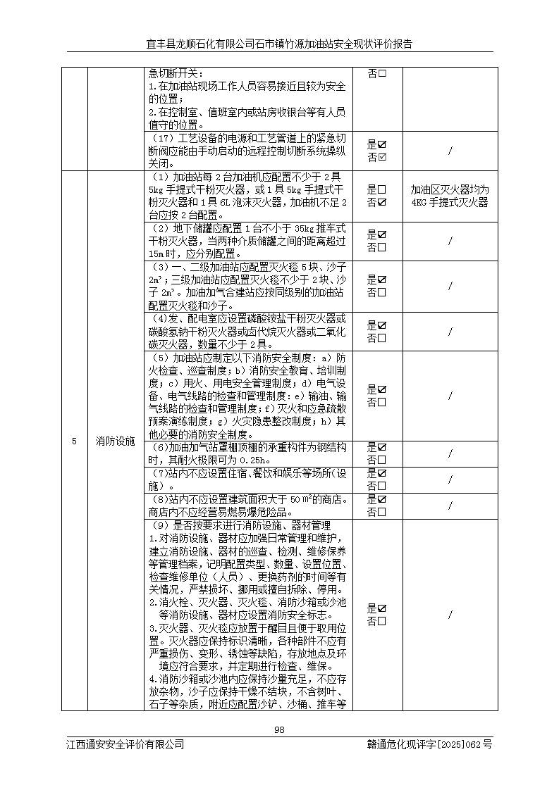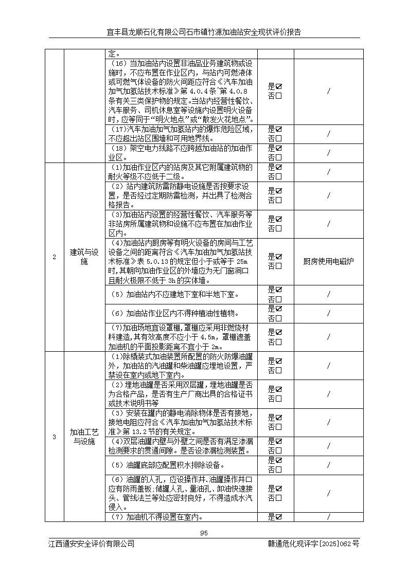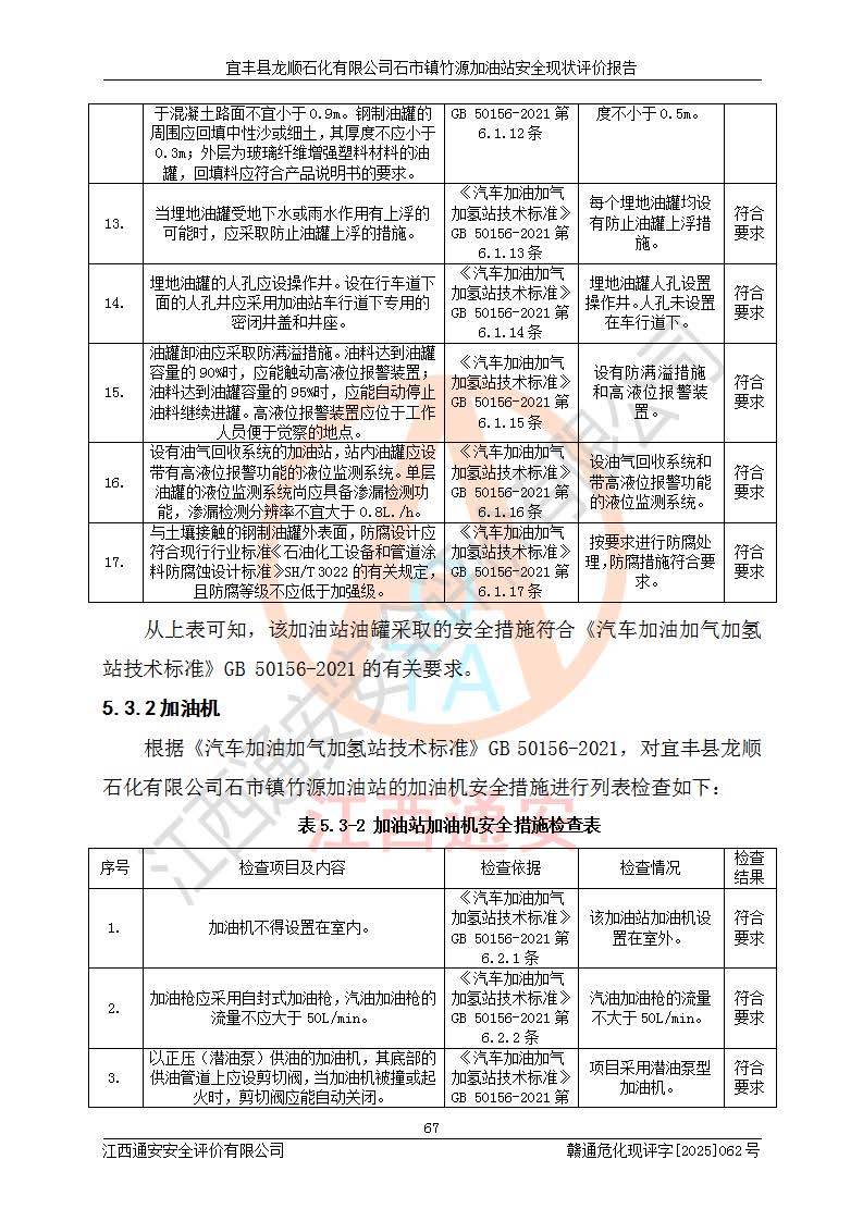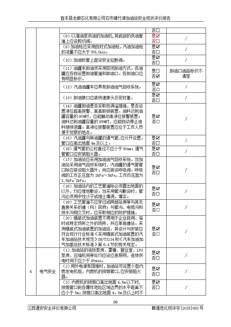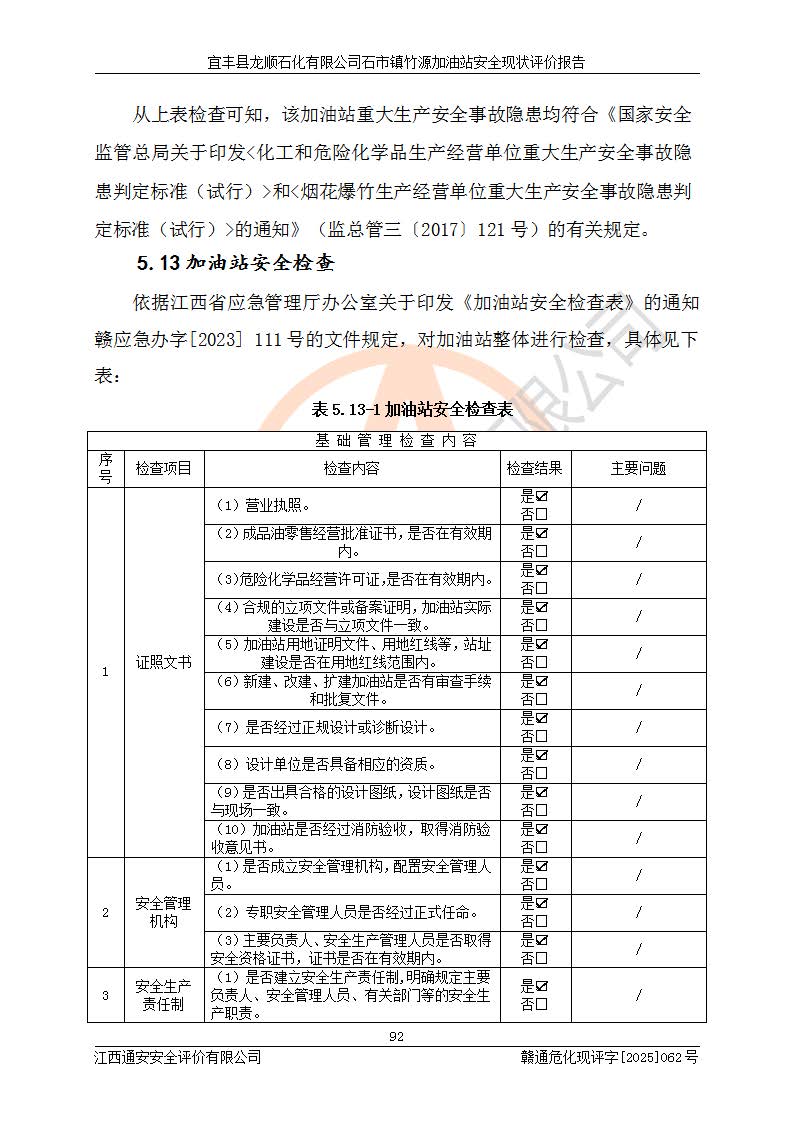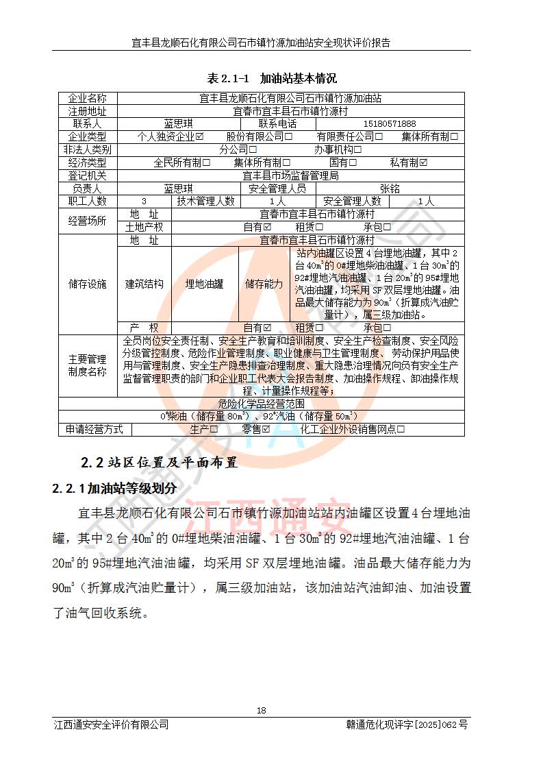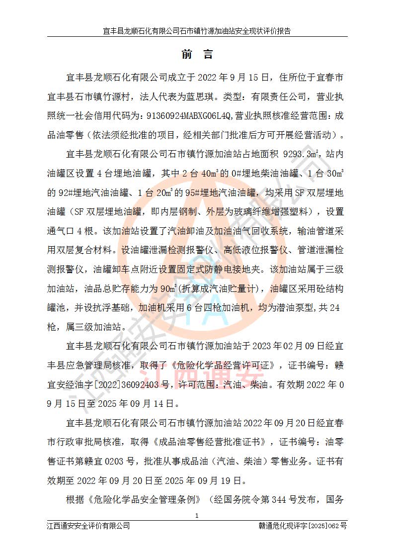 項目名稱 | 宜豐縣龍順石化有限公司石市鎮(zhèn)竹源加油站安全現(xiàn)狀評價報告 | ||||