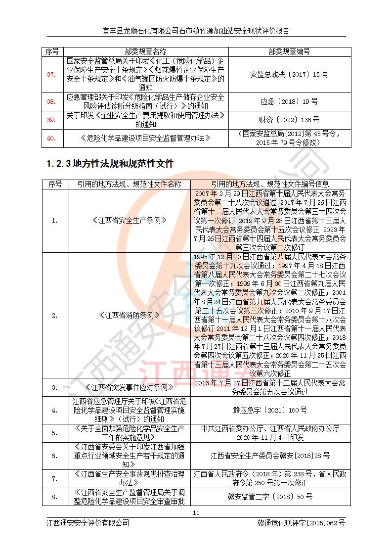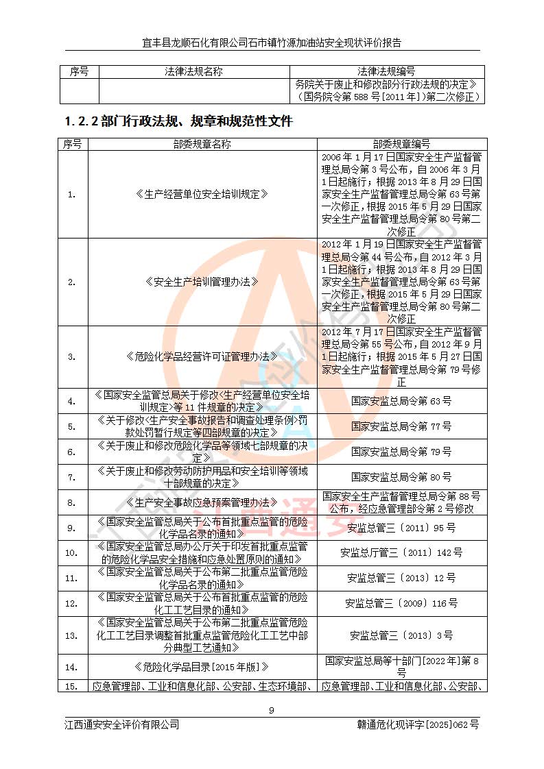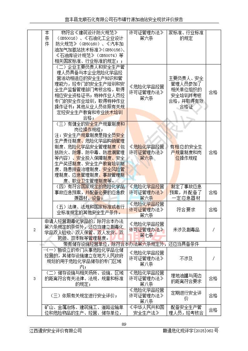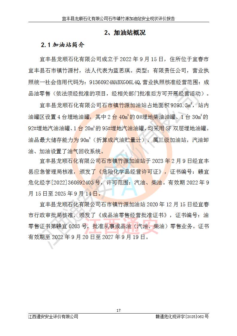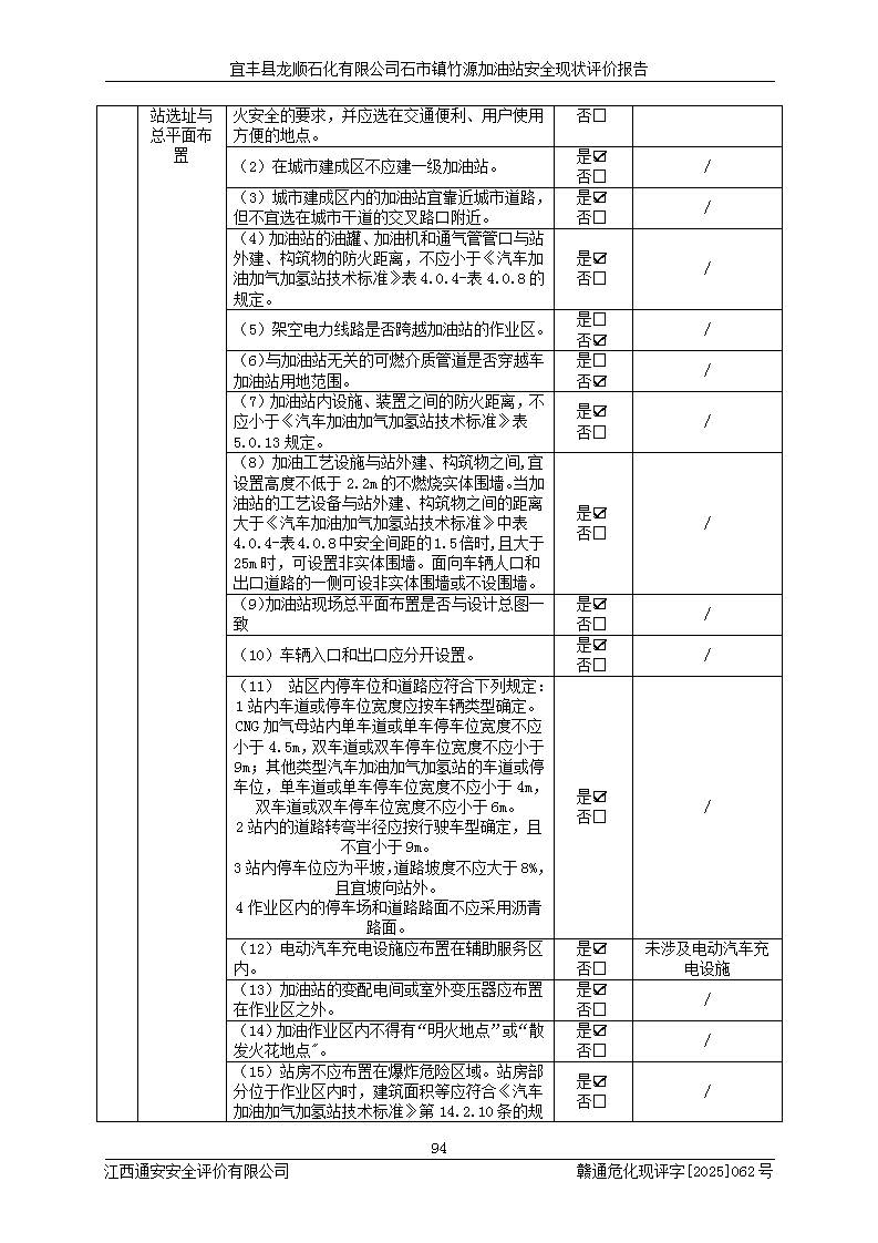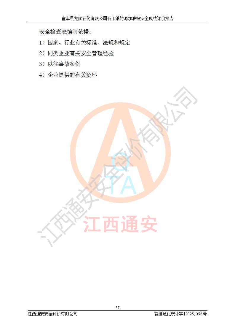 項目名稱 | 宜豐縣龍順石化有限公司石市鎮(zhèn)竹源加油站安全現(xiàn)狀評價報告 | ||||