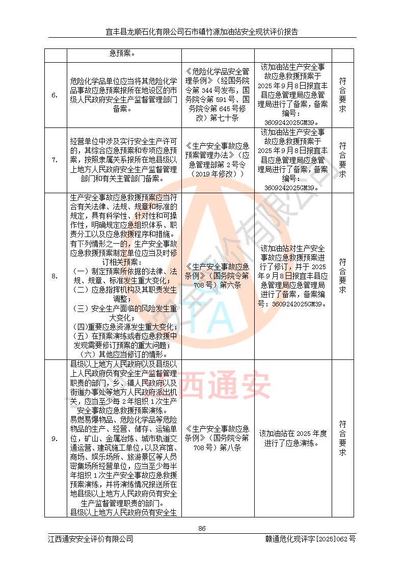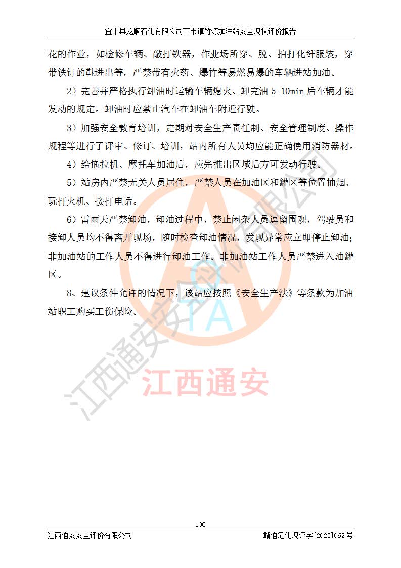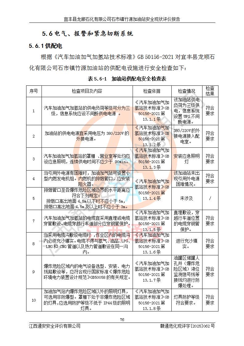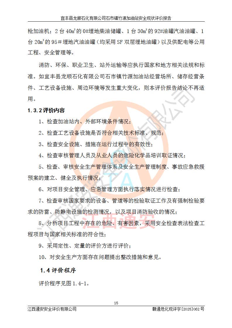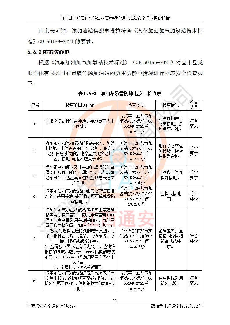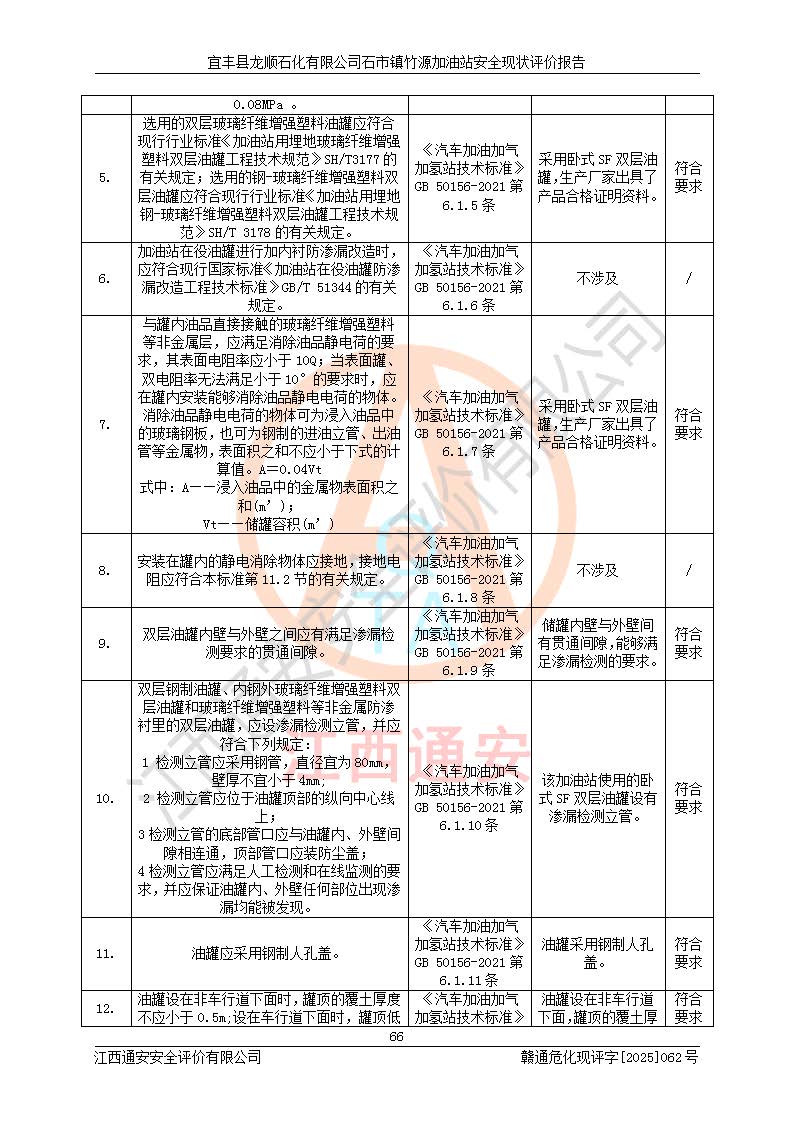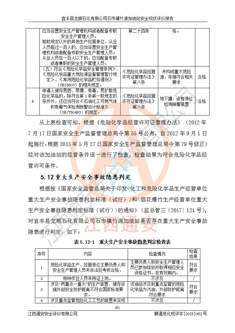項目名稱 | 宜豐縣龍順石化有限公司石市鎮(zhèn)竹源加油站安全現(xiàn)狀評價報告 | ||||