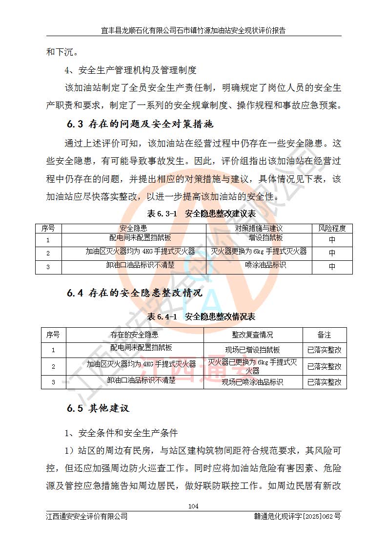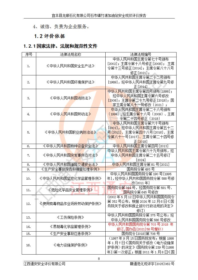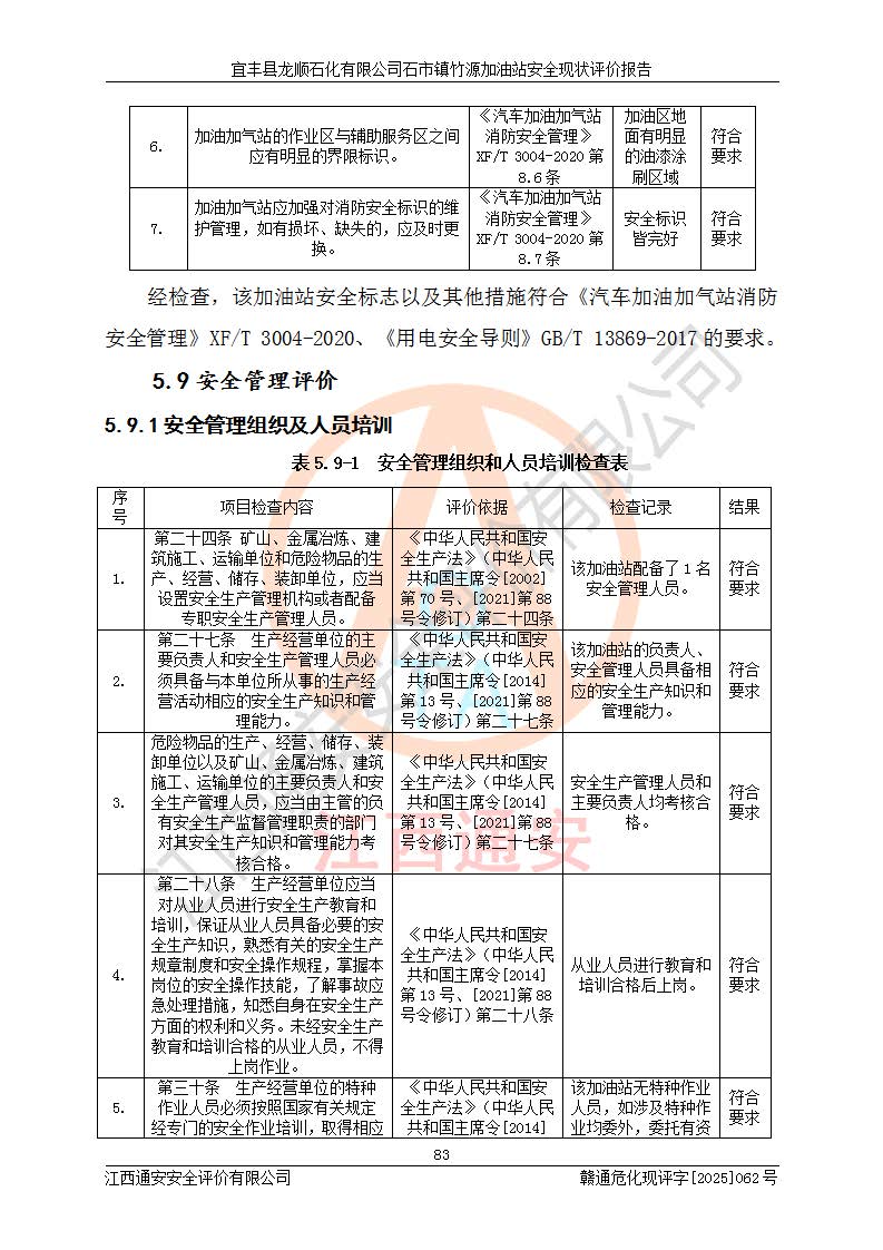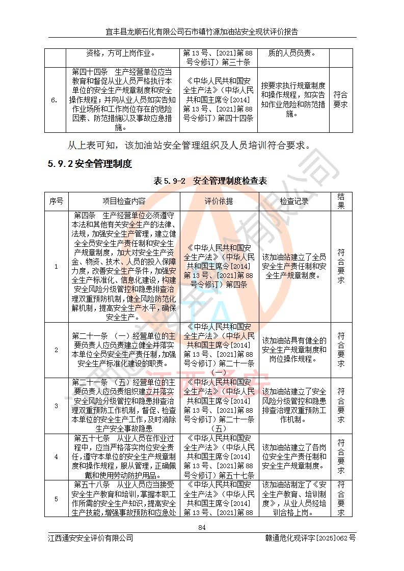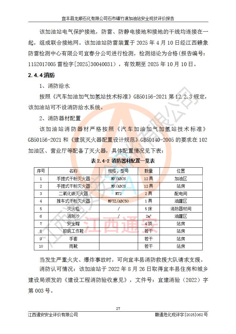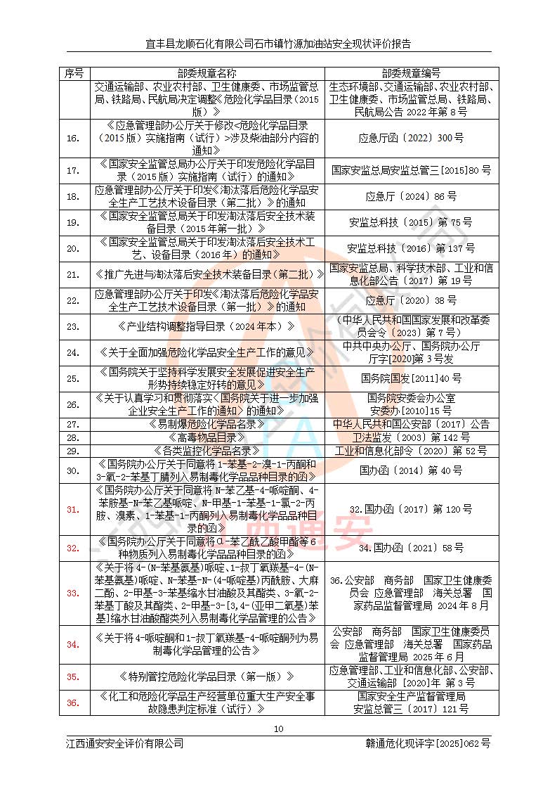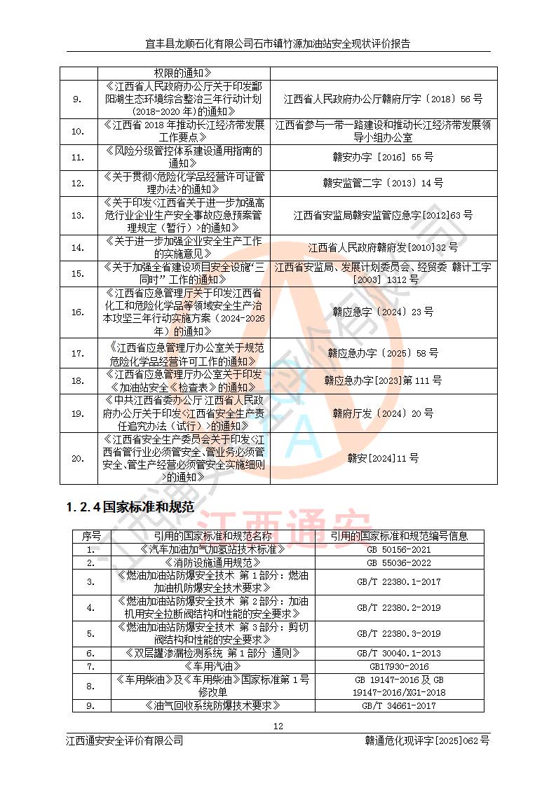 項目名稱 | 宜豐縣龍順石化有限公司石市鎮(zhèn)竹源加油站安全現(xiàn)狀評價報告 | ||||