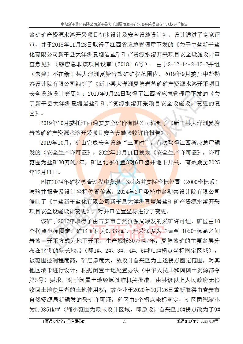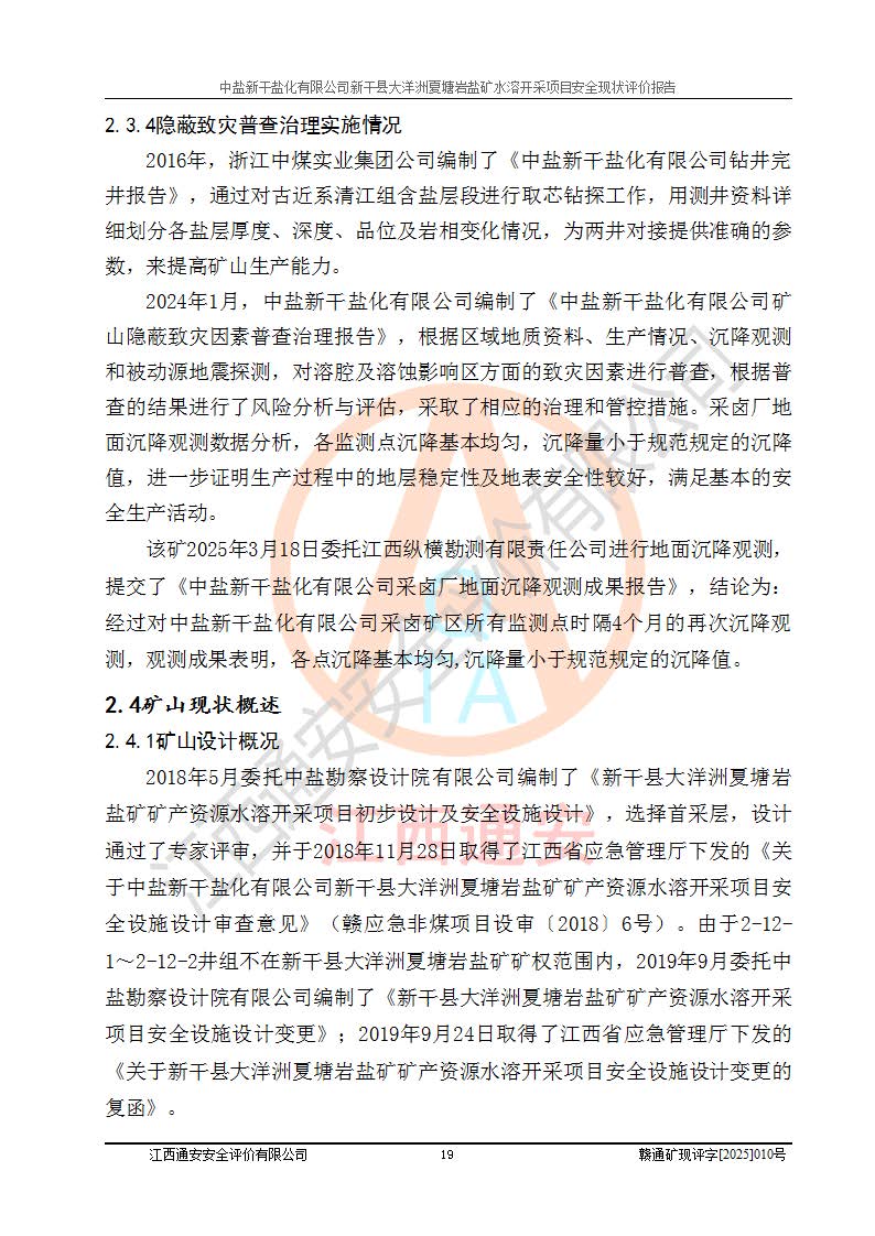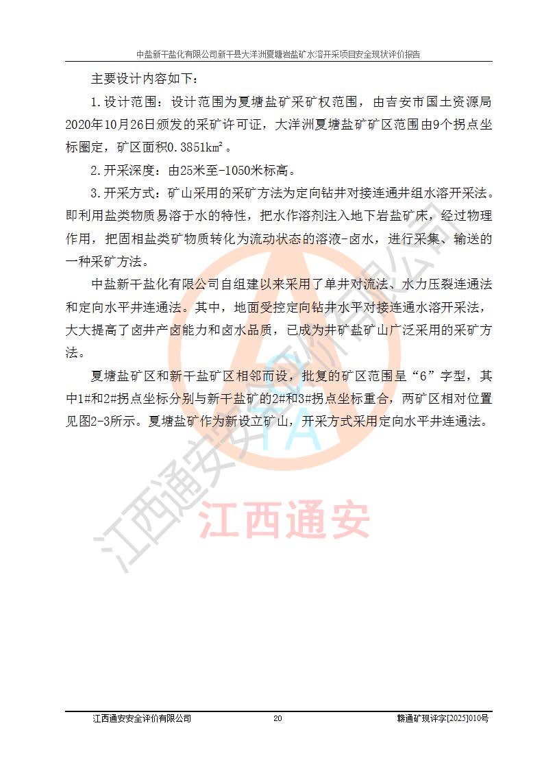 項目名稱 | 中鹽新干鹽化有限公司新干縣大洋洲夏塘巖鹽礦水溶開采項目 | ||||