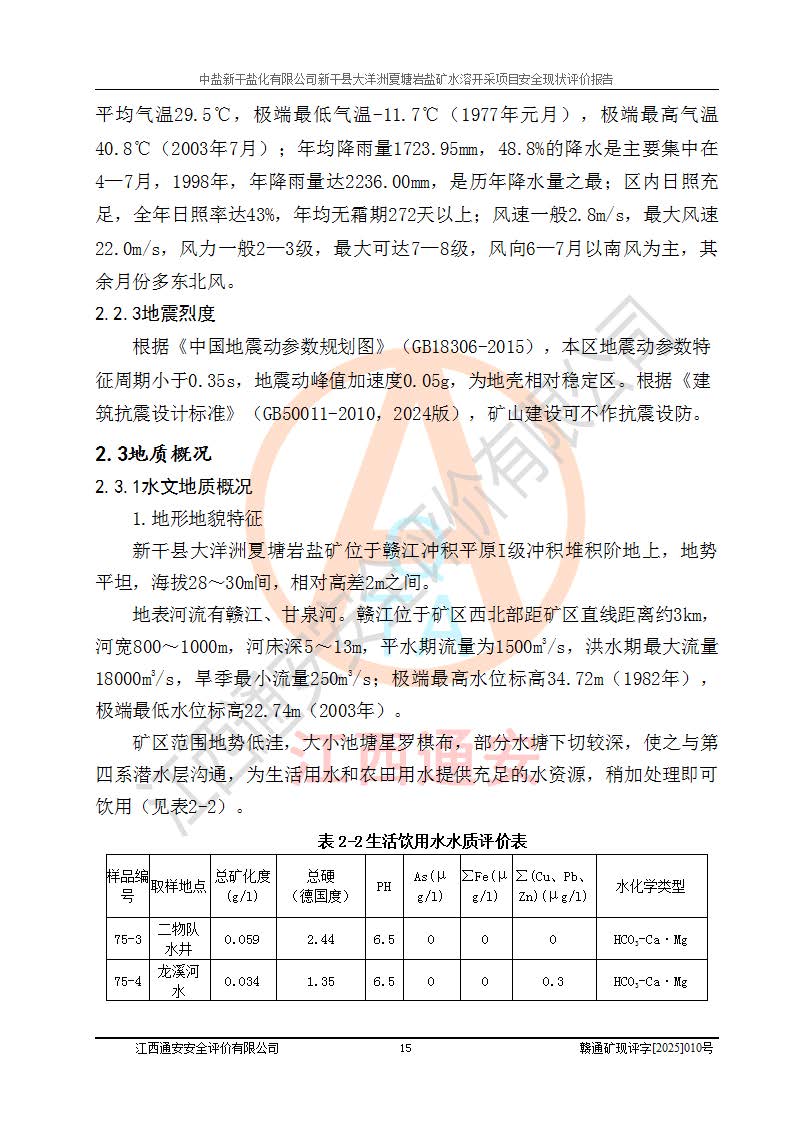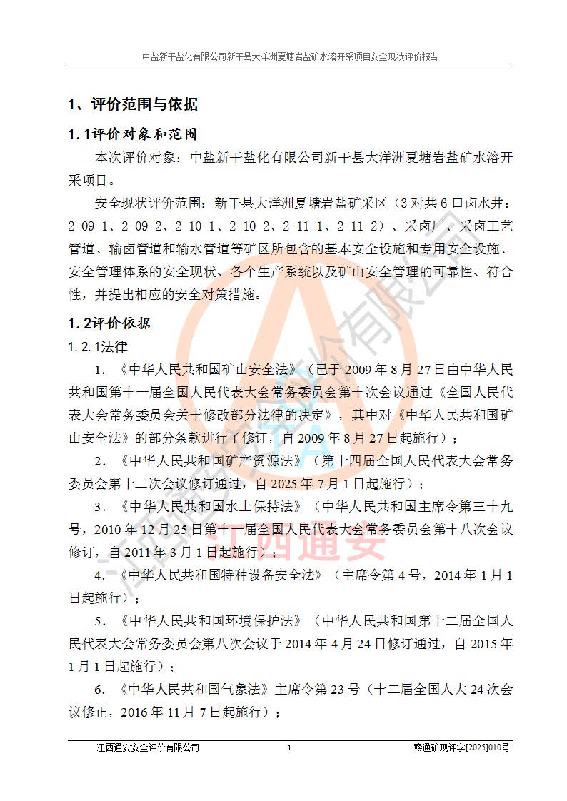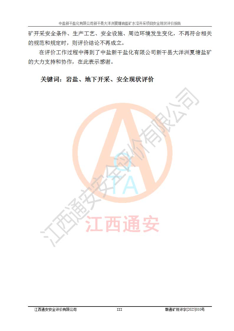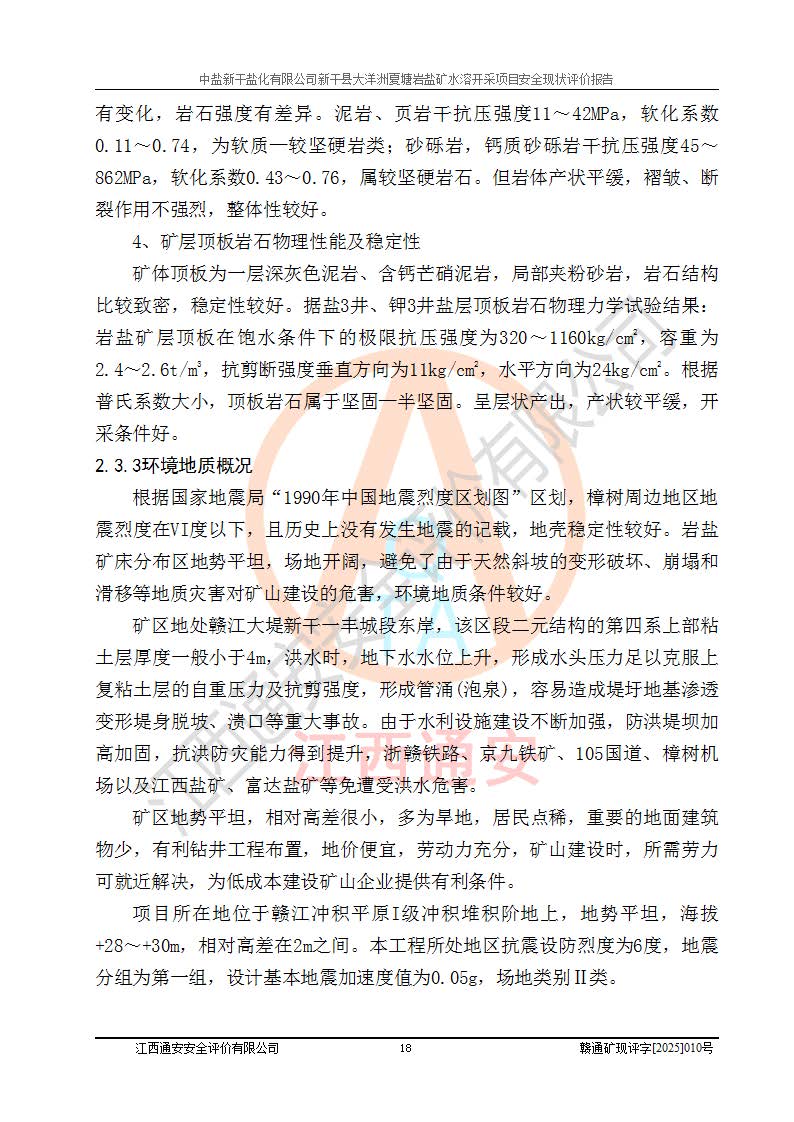 項目名稱 | 中鹽新干鹽化有限公司新干縣大洋洲夏塘巖鹽礦水溶開采項目 | ||||