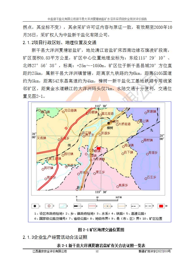 項目簡介 | 中鹽新干鹽化有限公司為有限責任公司(國有控股),公司成立于2004年1月14日,**期至2054年1月13日,法定**人為王繼明,注冊資本為壹億元整,住所位于江西省吉安市新干縣大洋洲鎮(zhèn)朝雞山,經(jīng)營范圍為食鹽及其他鹽產(chǎn)品、包裝材料、化工產(chǎn)品(不含危險品)食品、生產(chǎn)、銷售;進出口經(jīng)營權;飼料添加劑生產(chǎn)、銷售。(依法須經(jīng)批準的項目,經(jīng)相關部門批準后方可開展經(jīng)營活動)。 新干縣大洋洲夏塘巖鹽礦為中鹽新干鹽化有限公司下屬的礦山,地處清江巖鹽礦床西南邊緣石旗凌礦段南東,礦區(qū)面積0.83平方**,礦區(qū)中心位置地理坐標為:東經(jīng)115°29′10″、北緯27°56′38″,標高:25m~-1050m。礦區(qū)位于新干縣縣城20°方位直距約25km,屬新干縣大洋洲鎮(zhèn)管轄,距離京九鐵路約為6km,距離G105國道約為5km,距離S42東昌高速約為4km,樟樹—新干鹽化工基地鐵路**線緊鄰礦區(qū),距黃金水道贛江的大洋洲碼頭僅7km,水陸交通十分便利。 | ||||