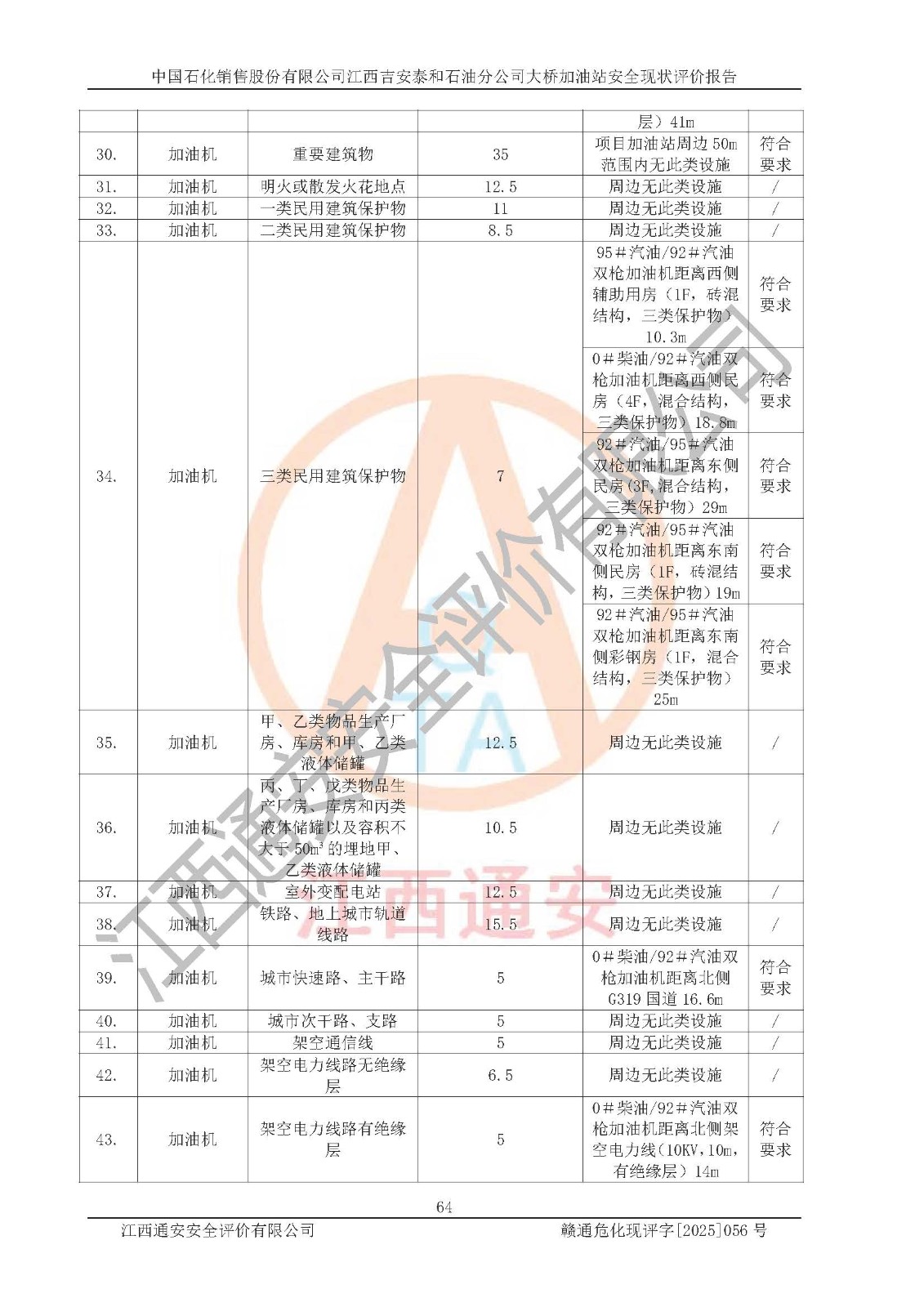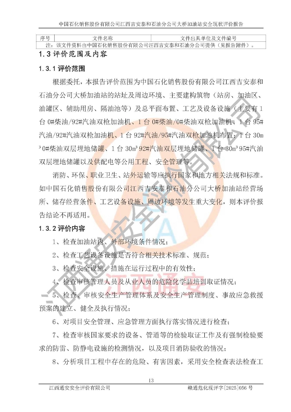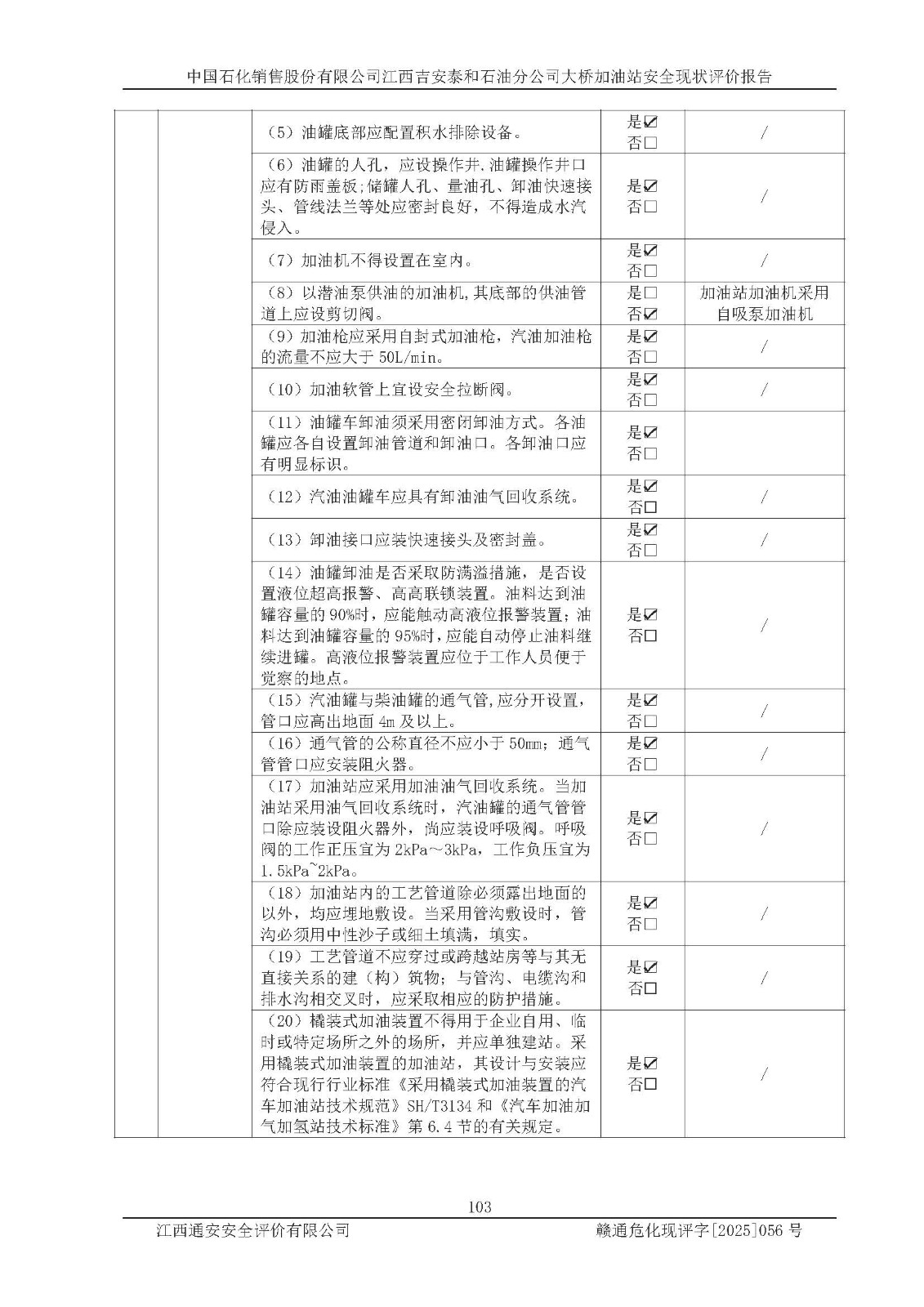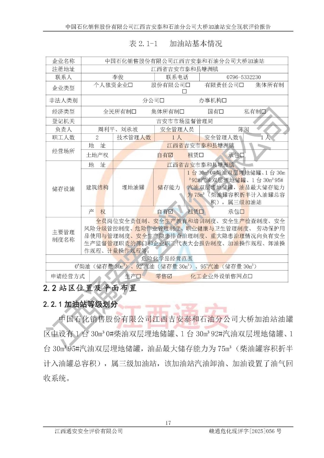 項目名稱 | 中國石化銷售股份有限公司江西吉安泰和石油分公司大橋加油站 安全現(xiàn)狀評價報告 | ||||