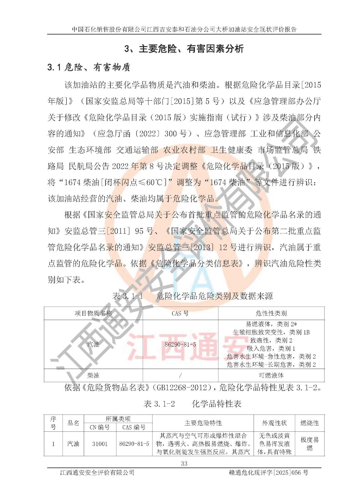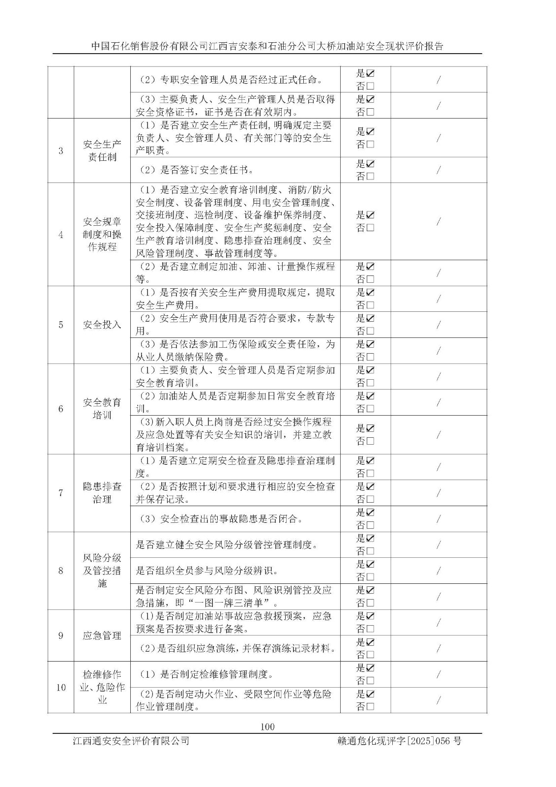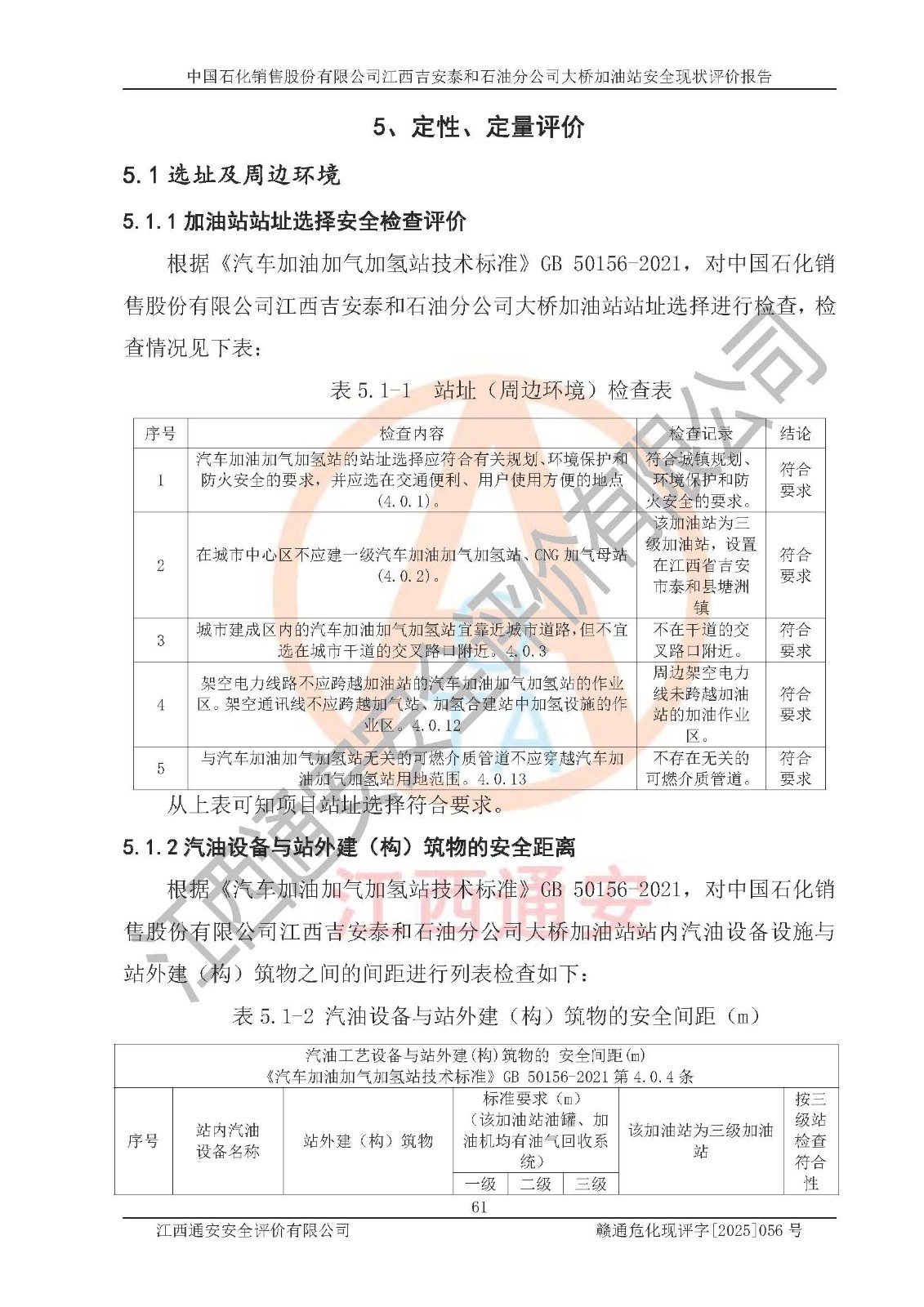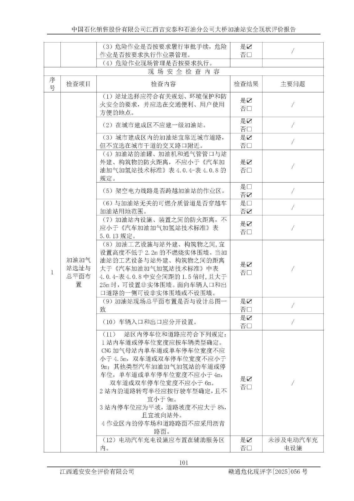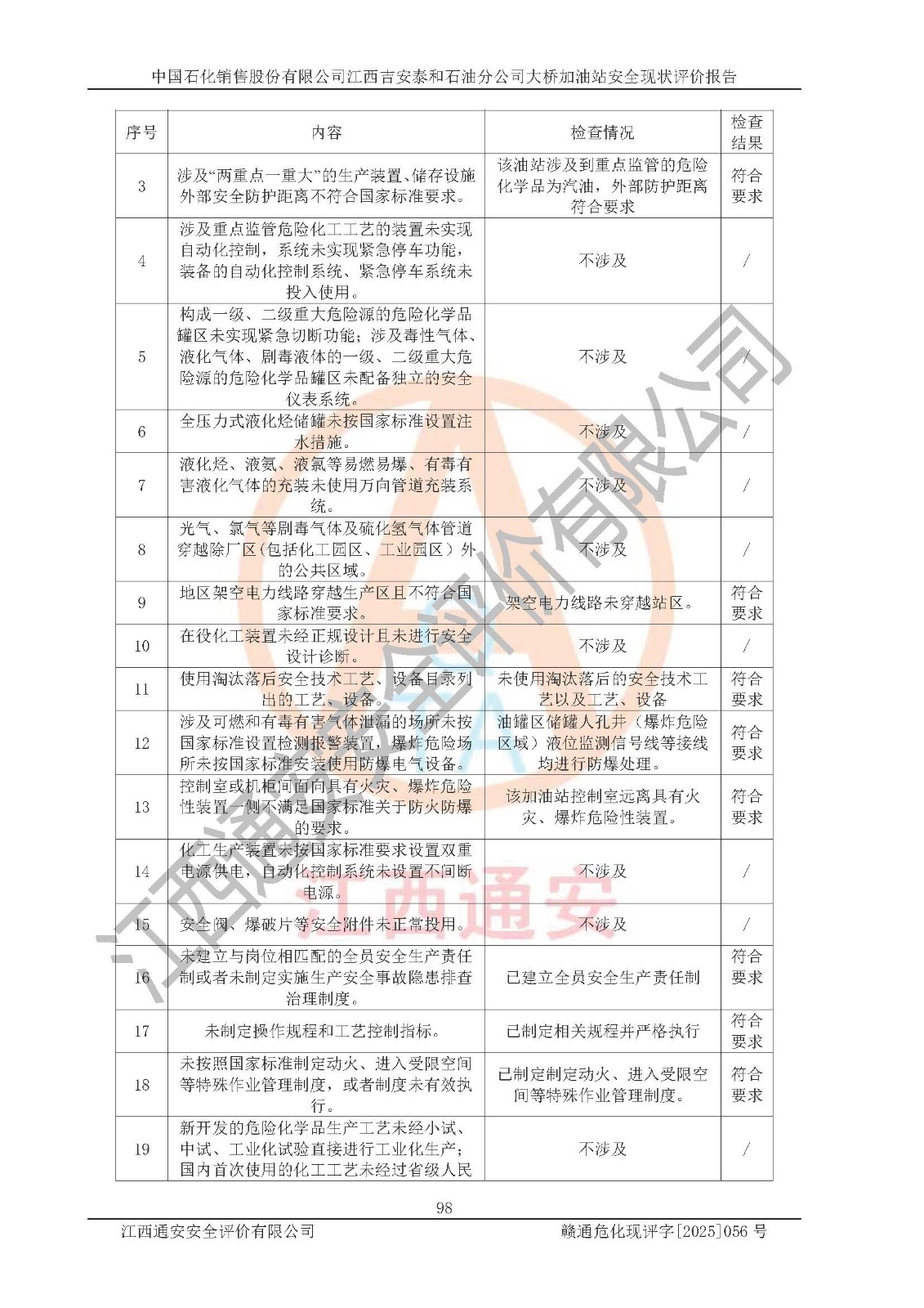 項目名稱 | 中國石化銷售股份有限公司江西吉安泰和石油分公司大橋加油站 安全現(xiàn)狀評價報告 | ||||