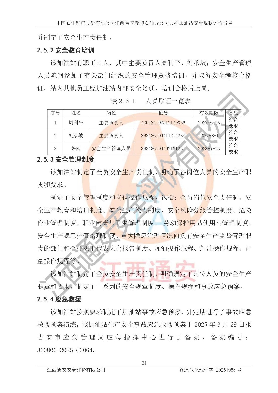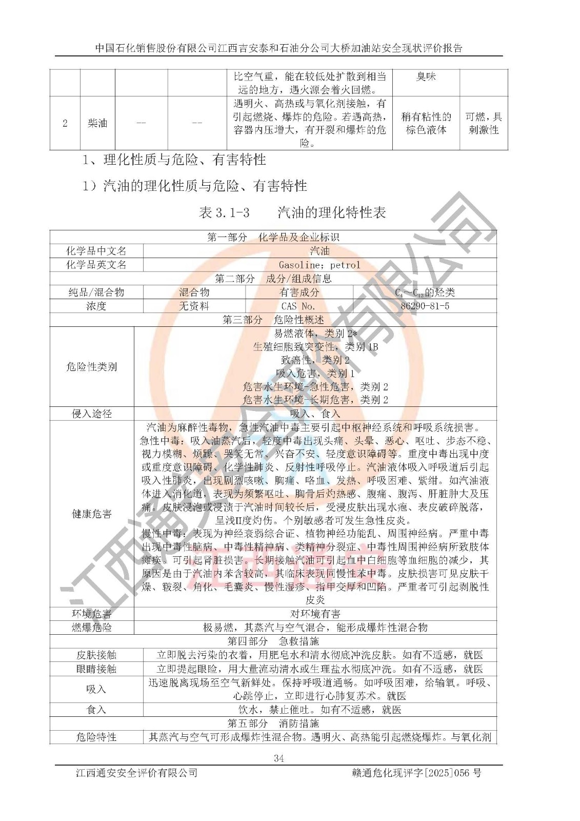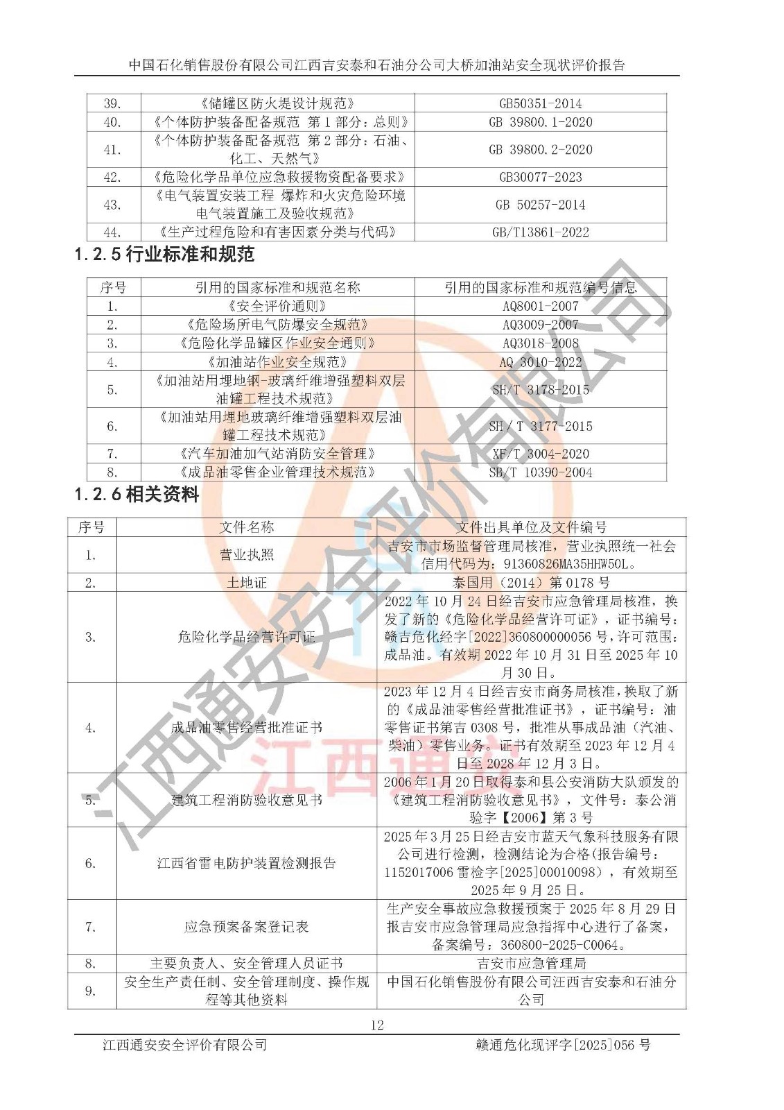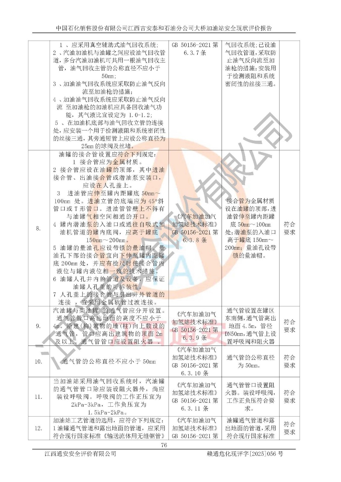 項目名稱 | 中國石化銷售股份有限公司江西吉安泰和石油分公司大橋加油站 安全現(xiàn)狀評價報告 | ||||