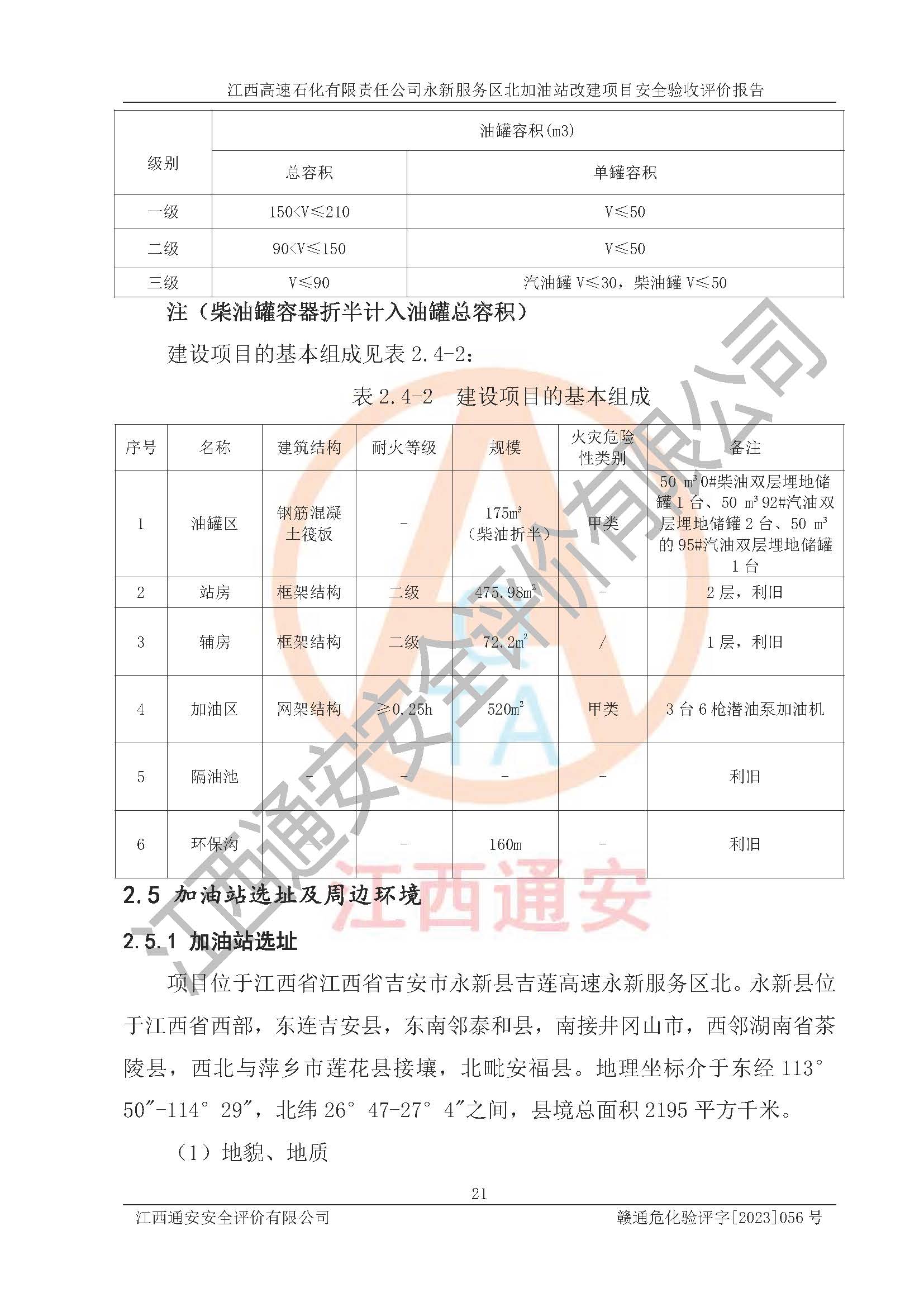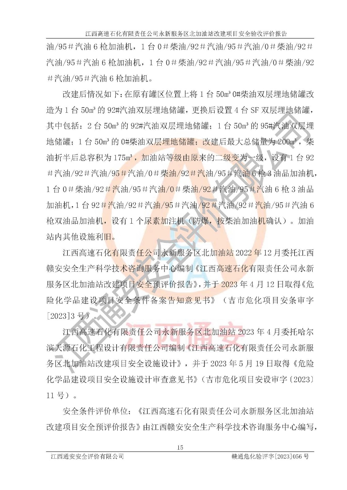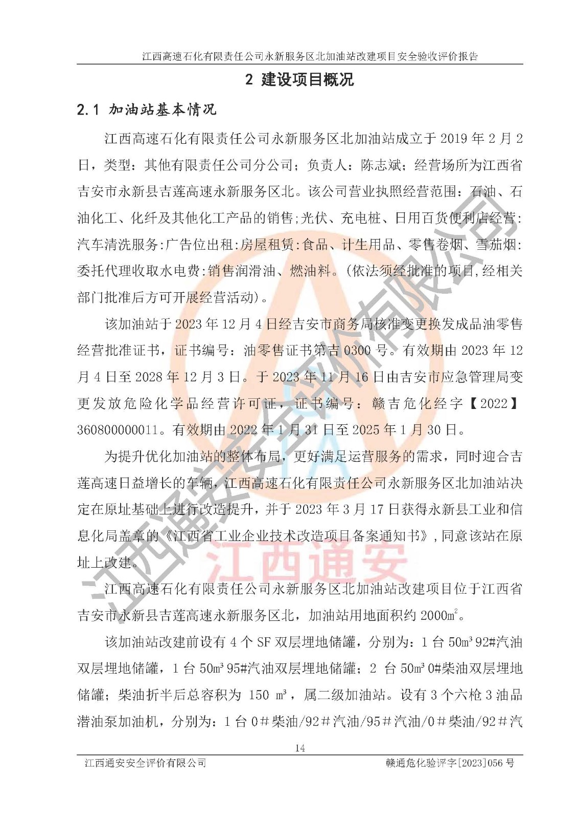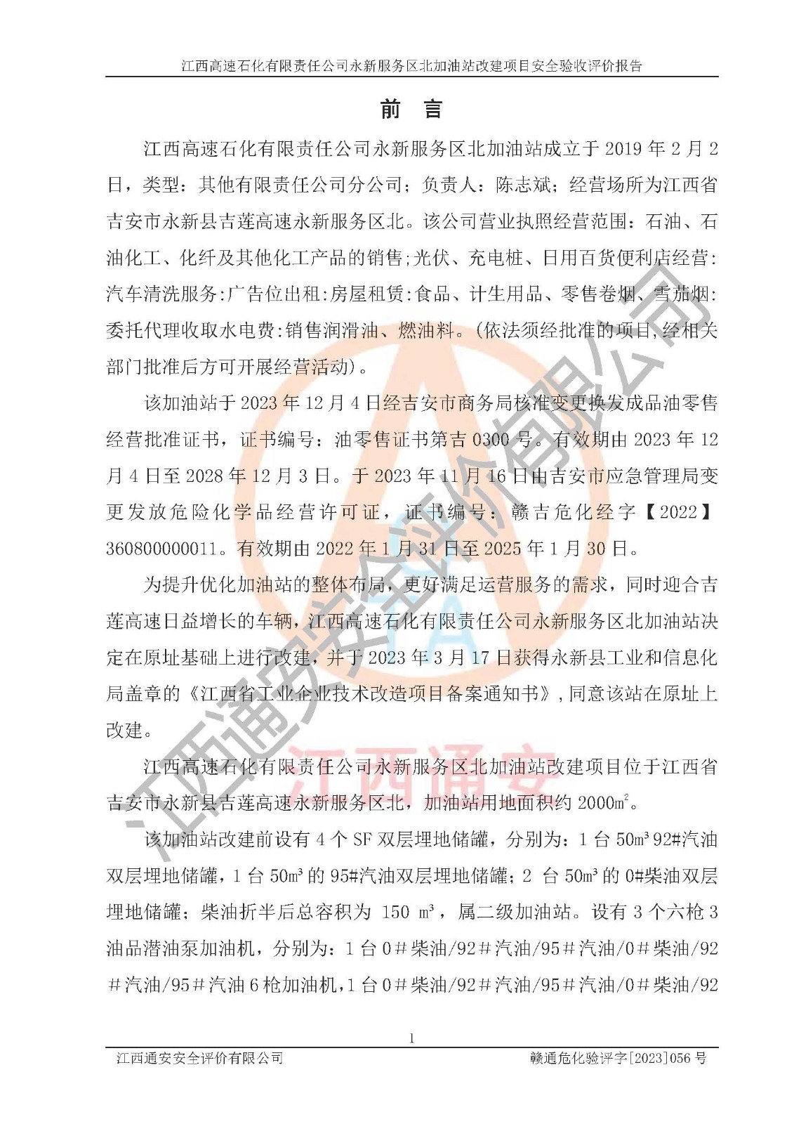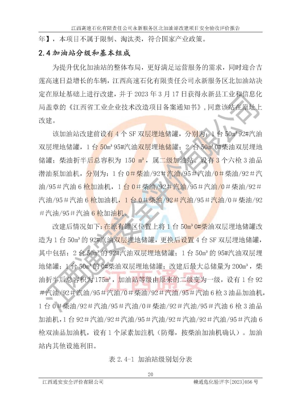 項目名稱 | 江西高速石化有限責任公司永新服務區(qū)北加油站改建項目安全驗收評價報告 | ||||
