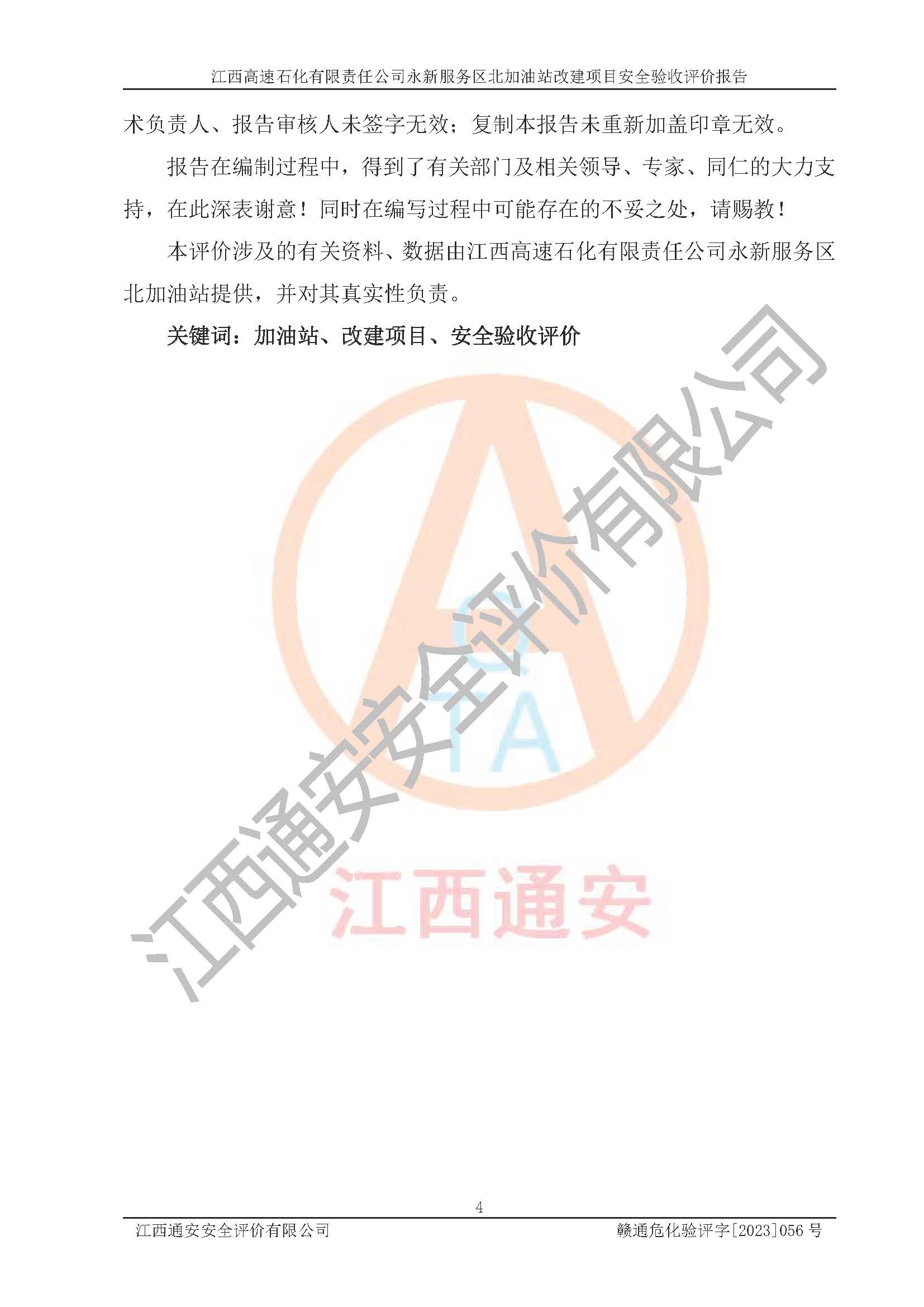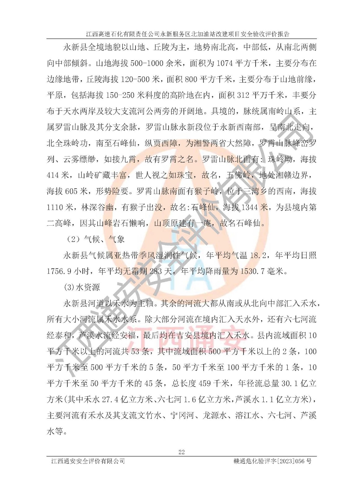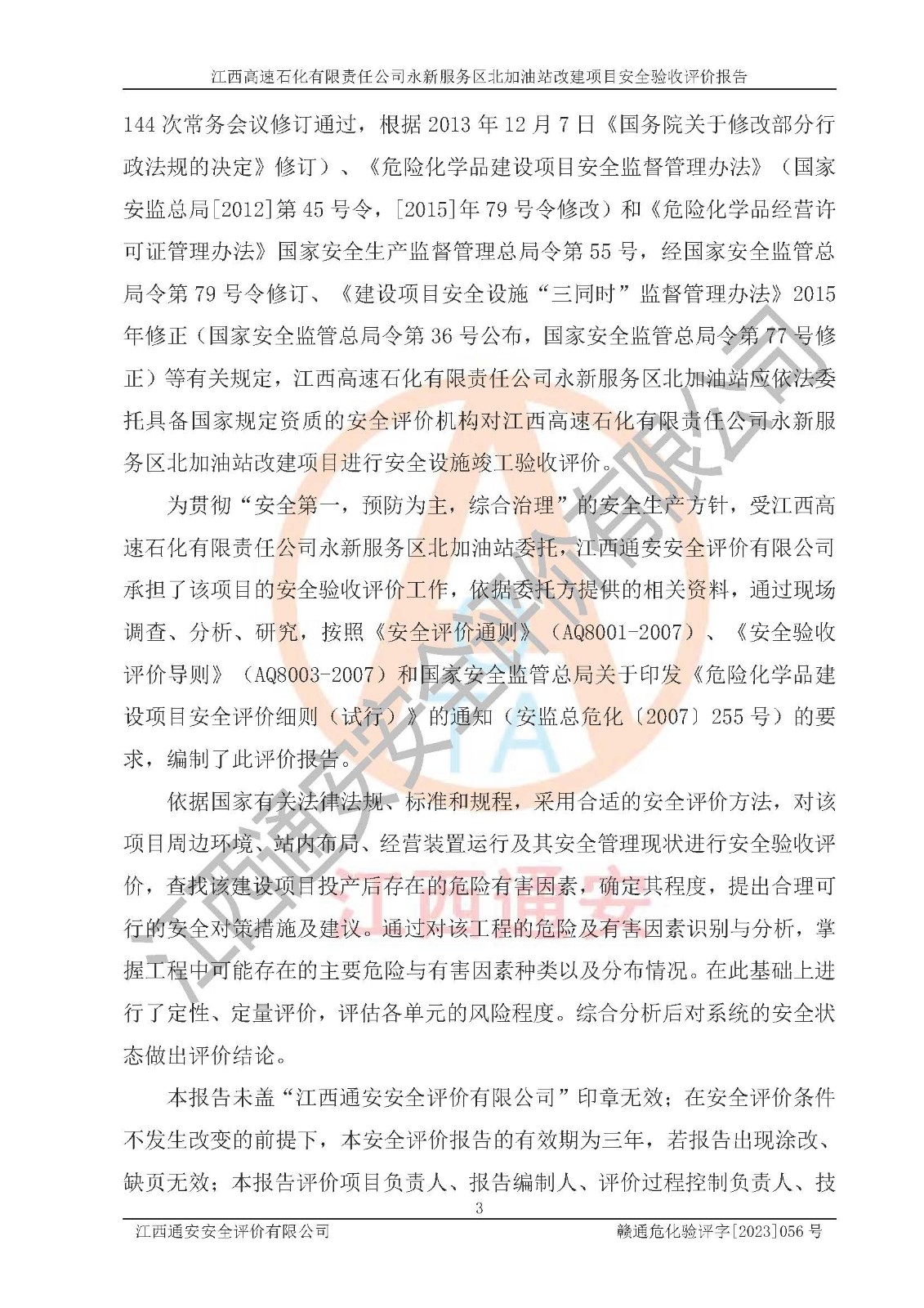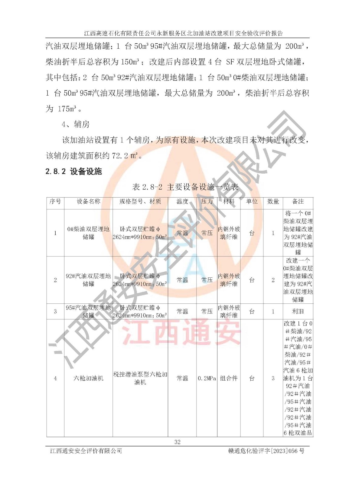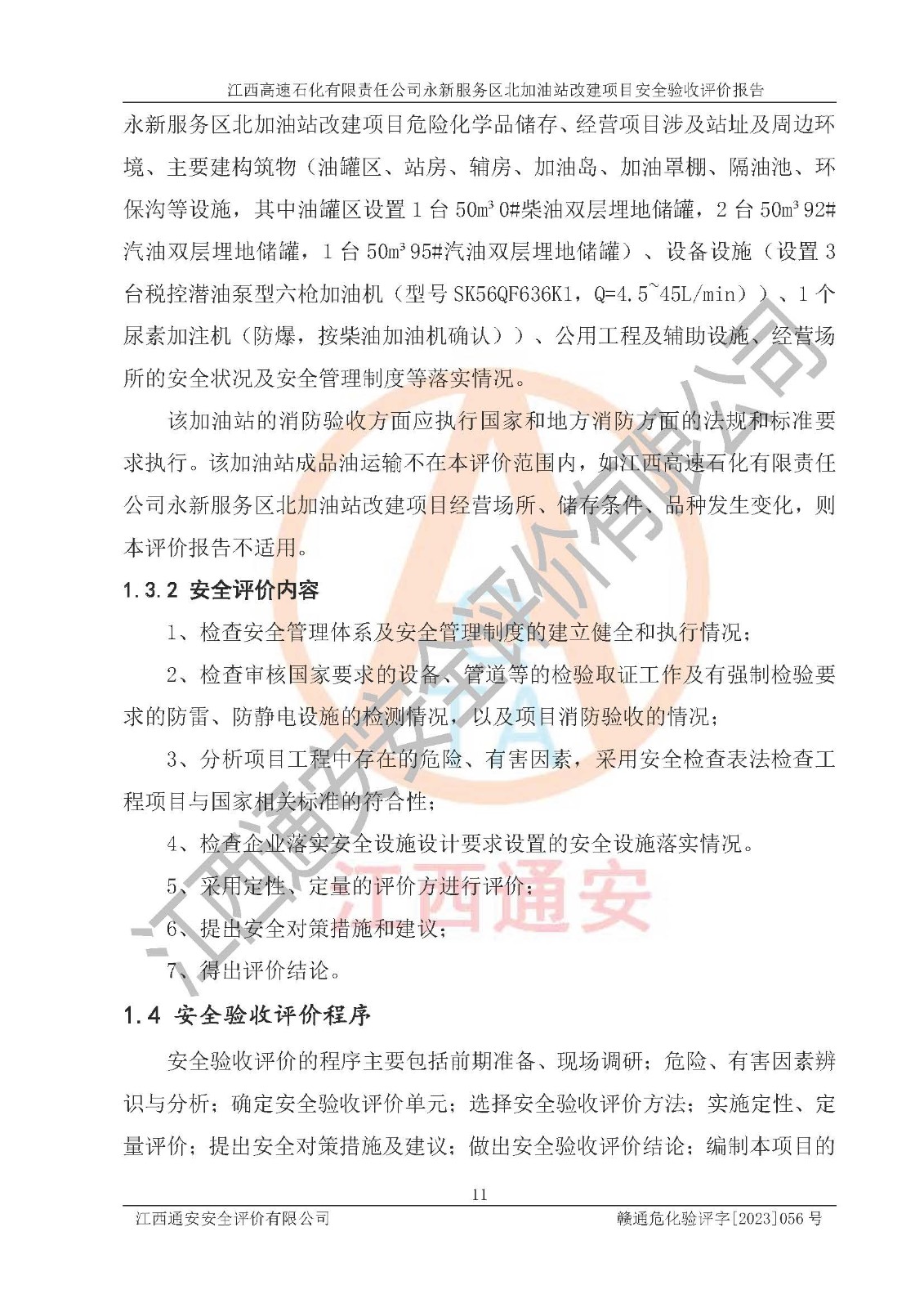 項目名稱 | 江西高速石化有限責任公司永新服務區(qū)北加油站改建項目安全驗收評價報告 | ||||