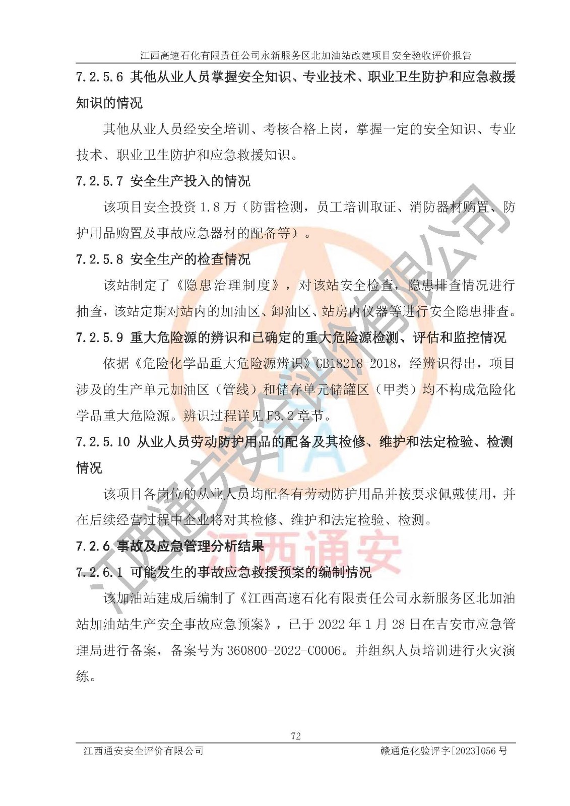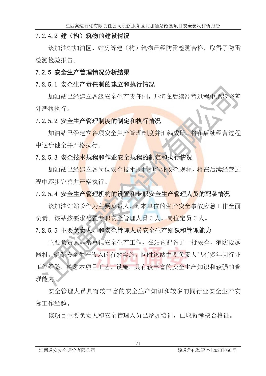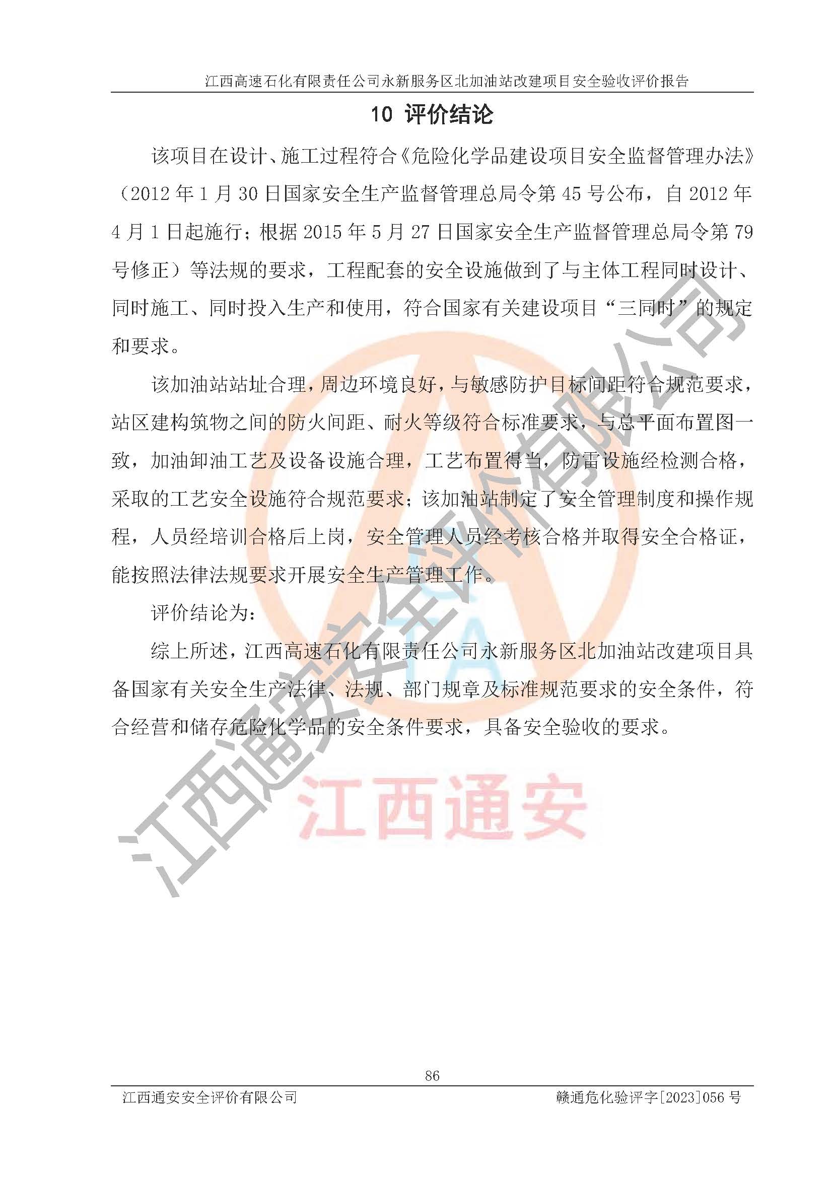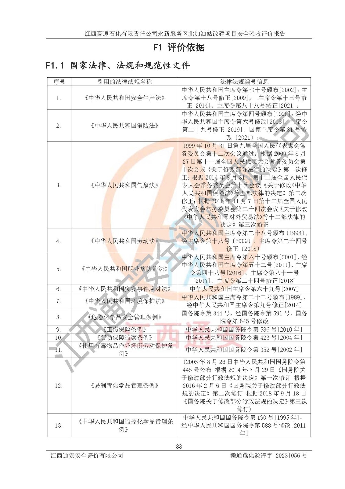 項目名稱 | 江西高速石化有限責任公司永新服務區(qū)北加油站改建項目安全驗收評價報告 | ||||