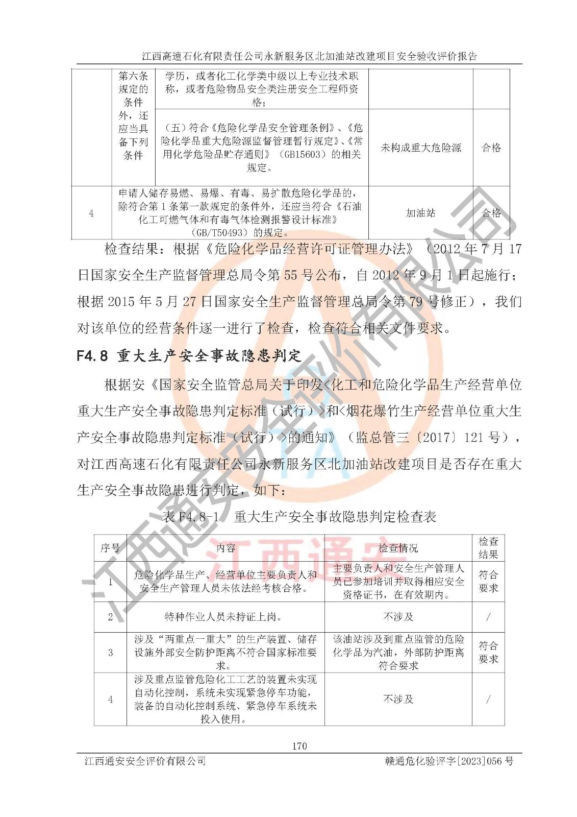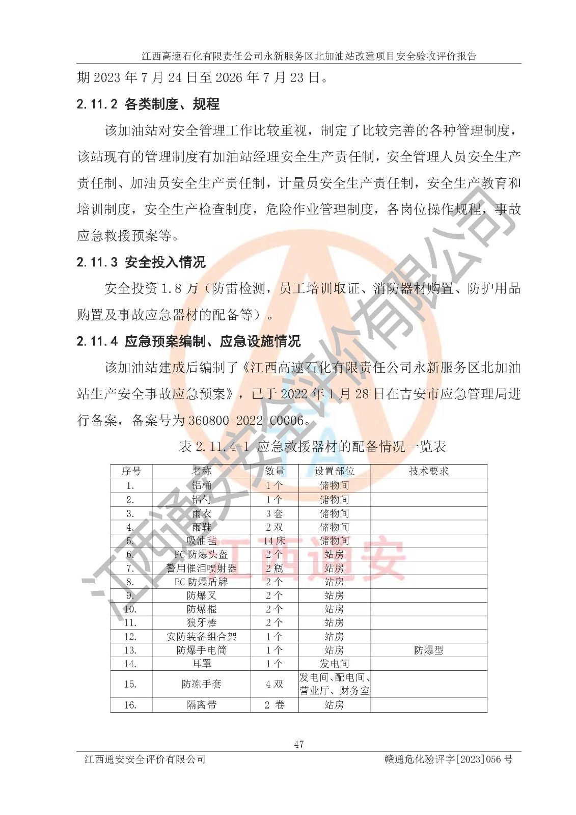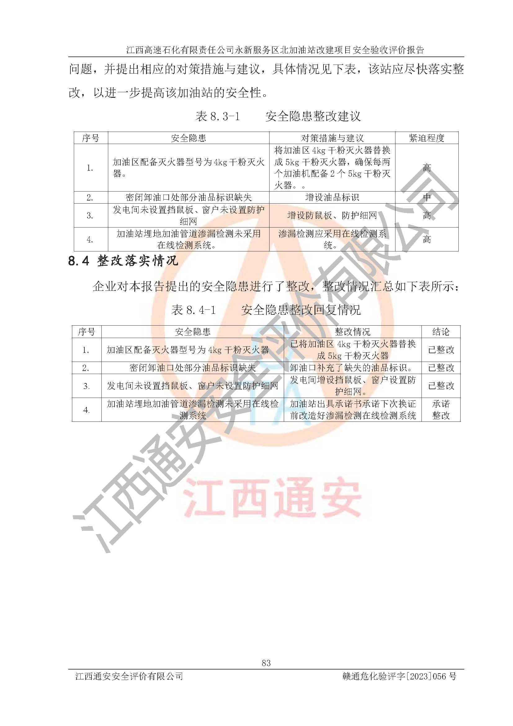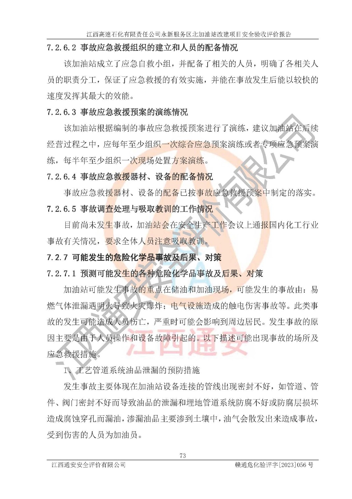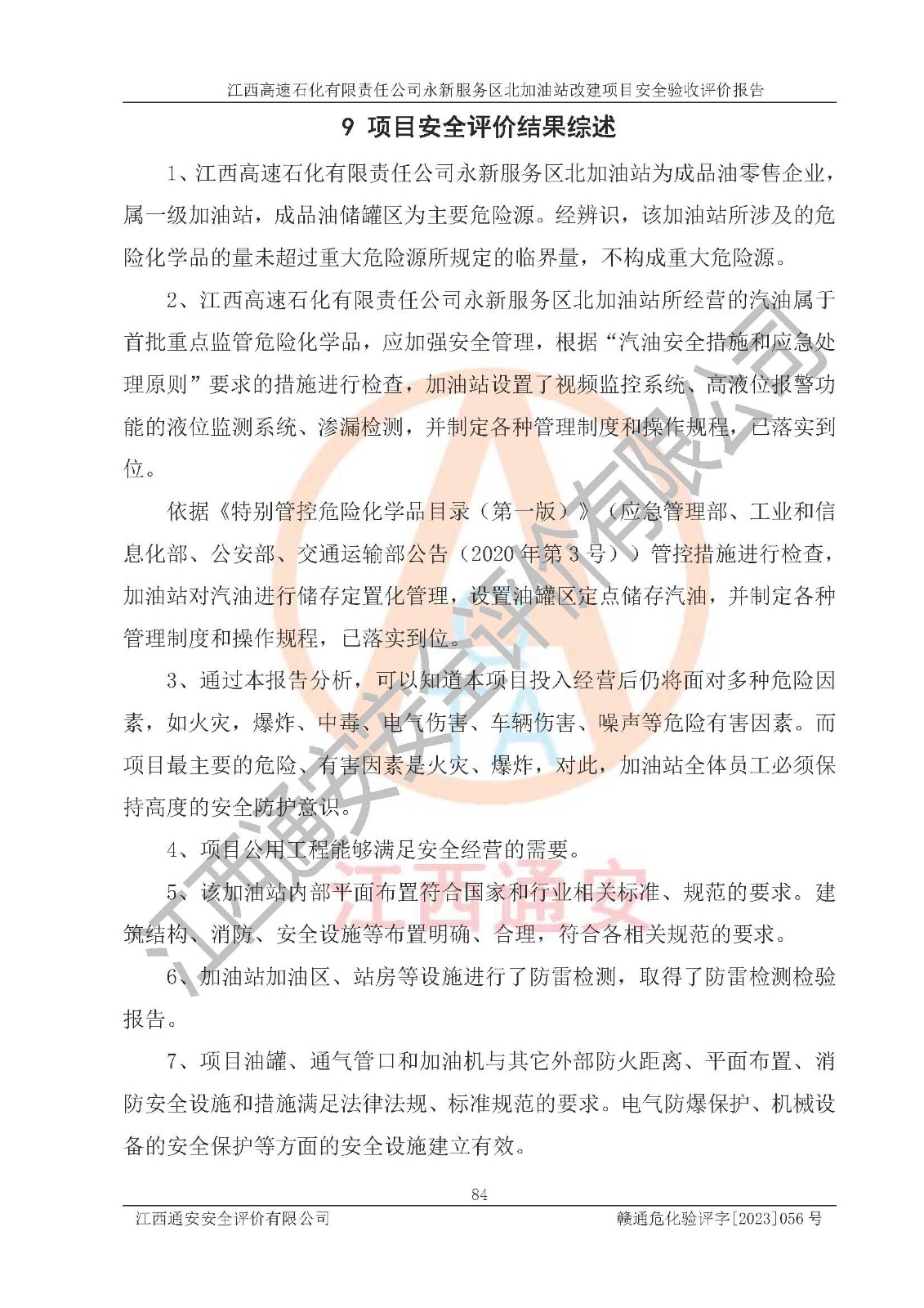 項目名稱 | 江西高速石化有限責任公司永新服務區(qū)北加油站改建項目安全驗收評價報告 | ||||