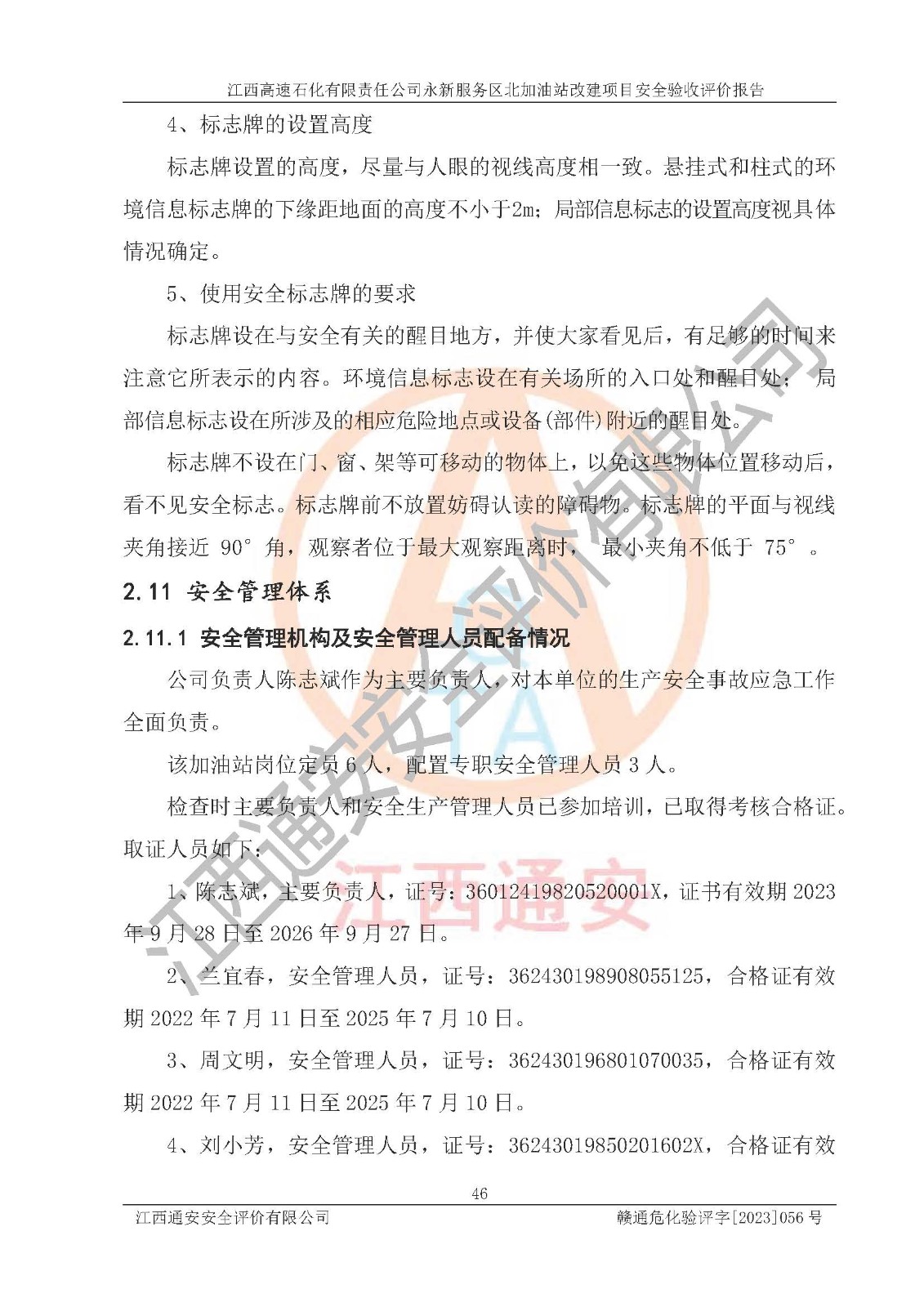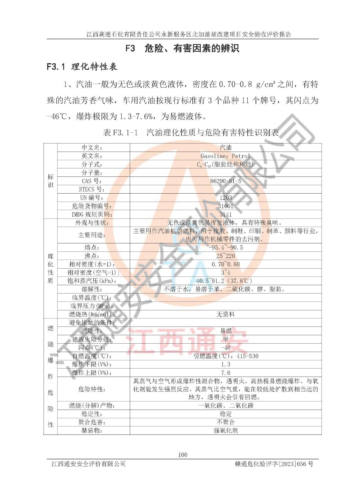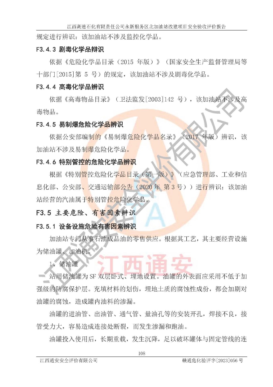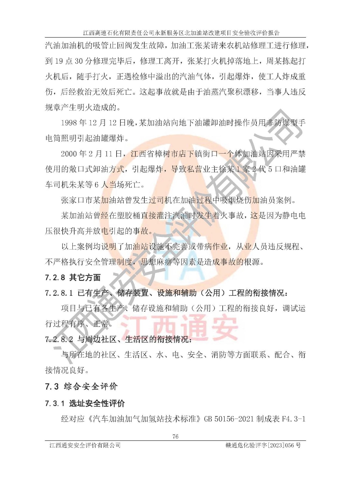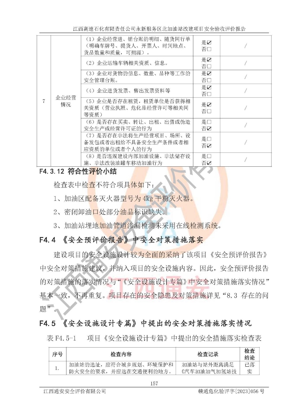 項目名稱 | 江西高速石化有限責任公司永新服務區(qū)北加油站改建項目安全驗收評價報告 | ||||