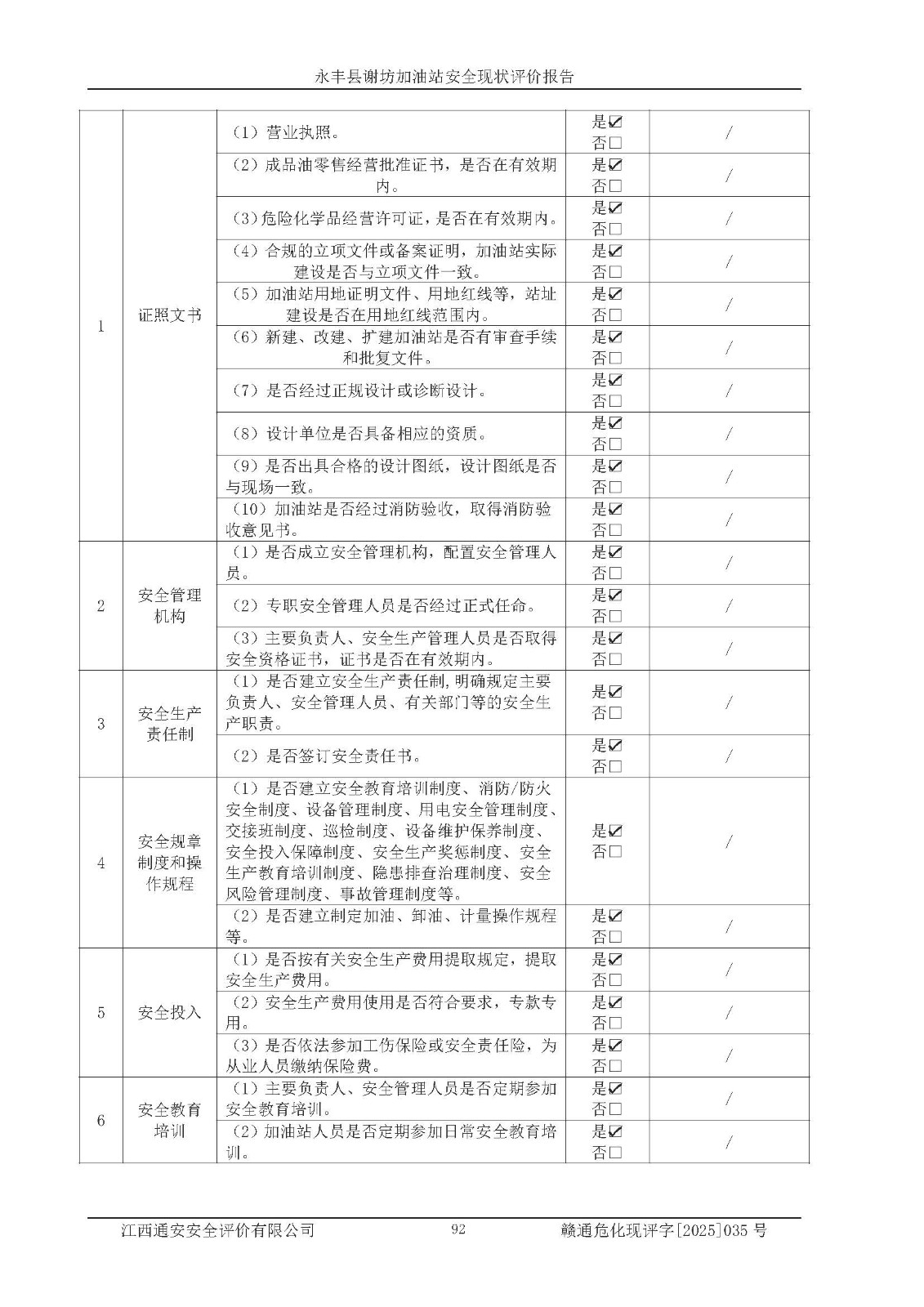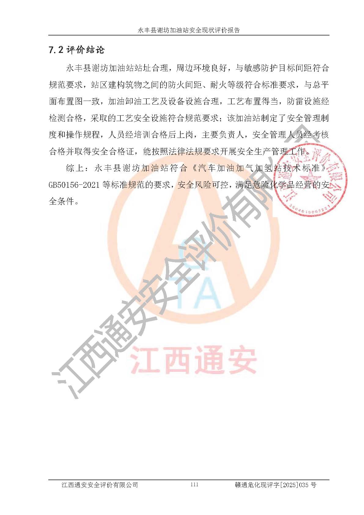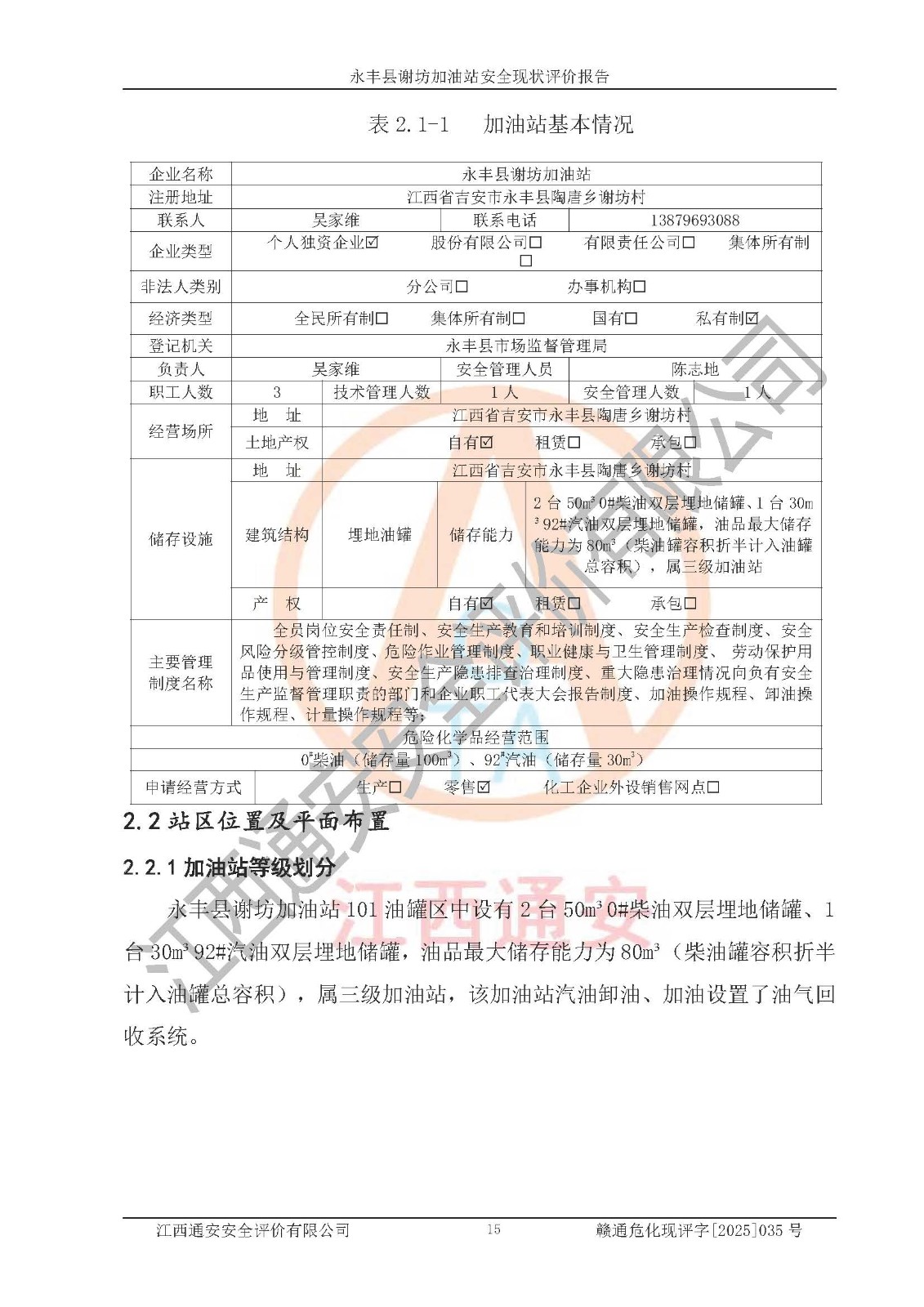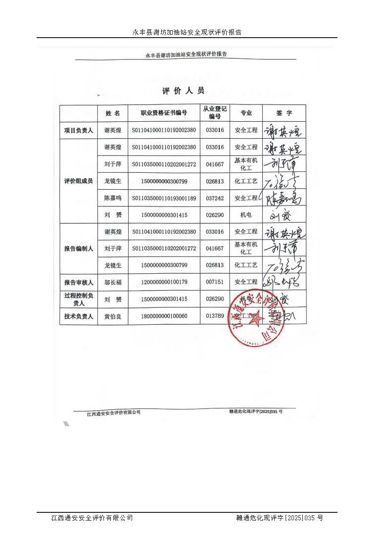 項(xiàng)目名稱 | 永豐縣謝坊加油站安全現(xiàn)狀評(píng)價(jià)報(bào)告 | ||||