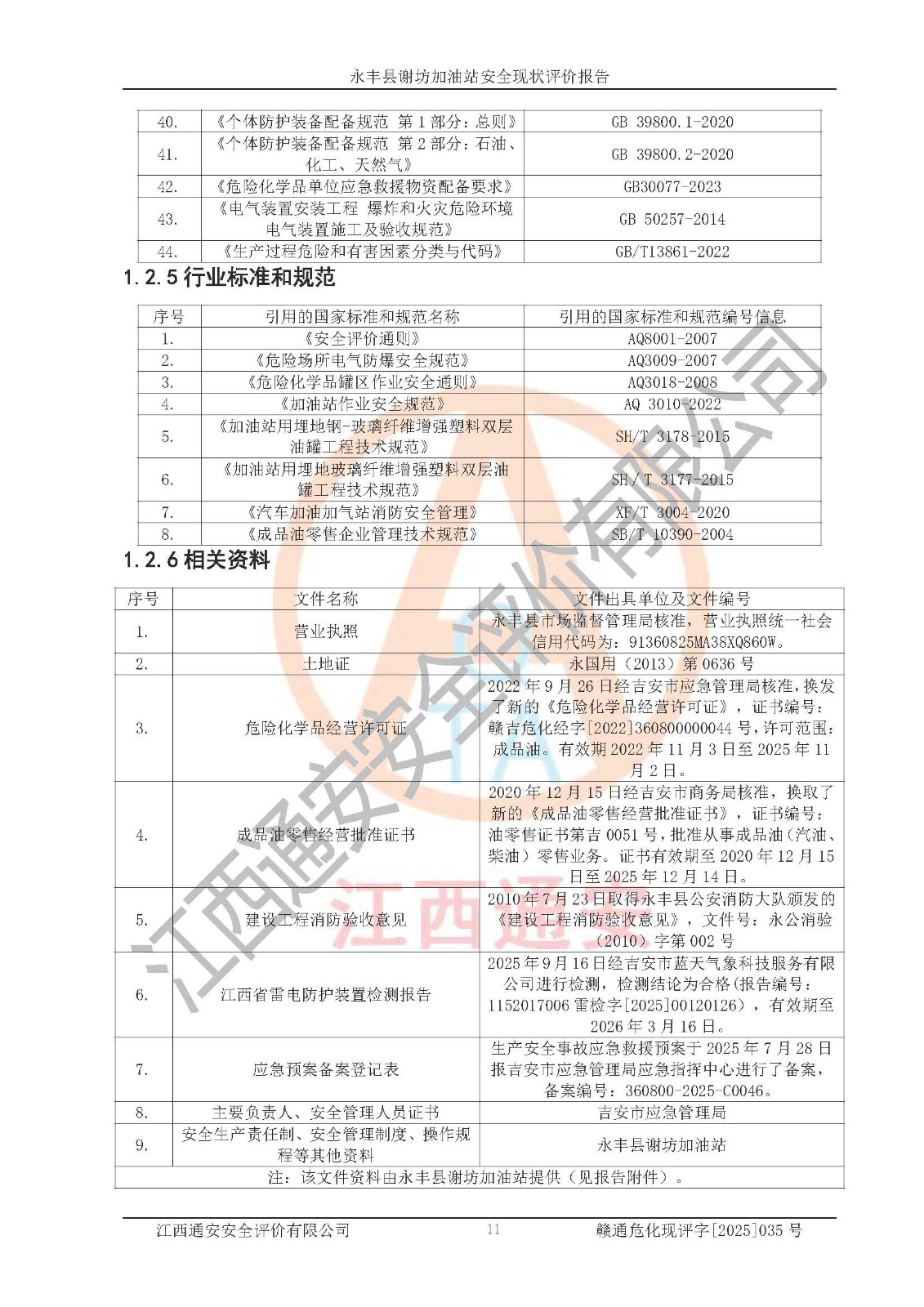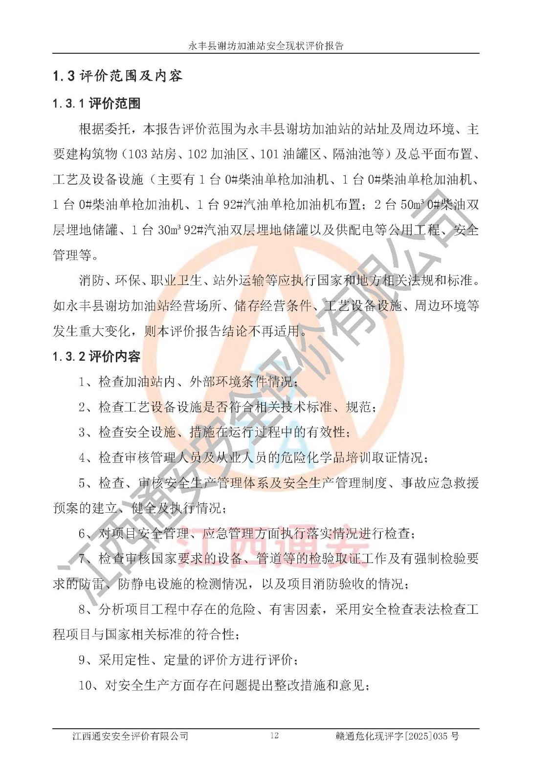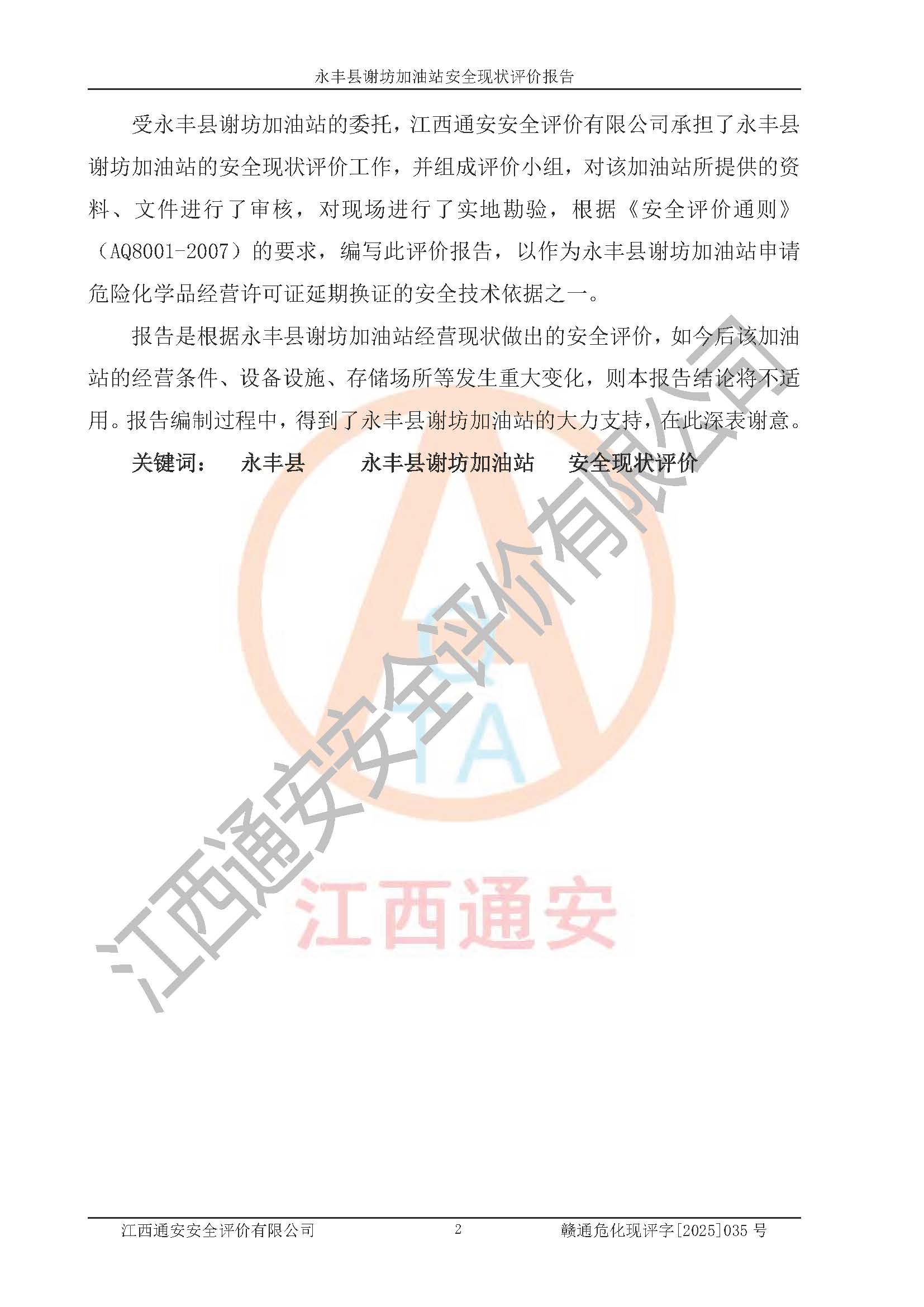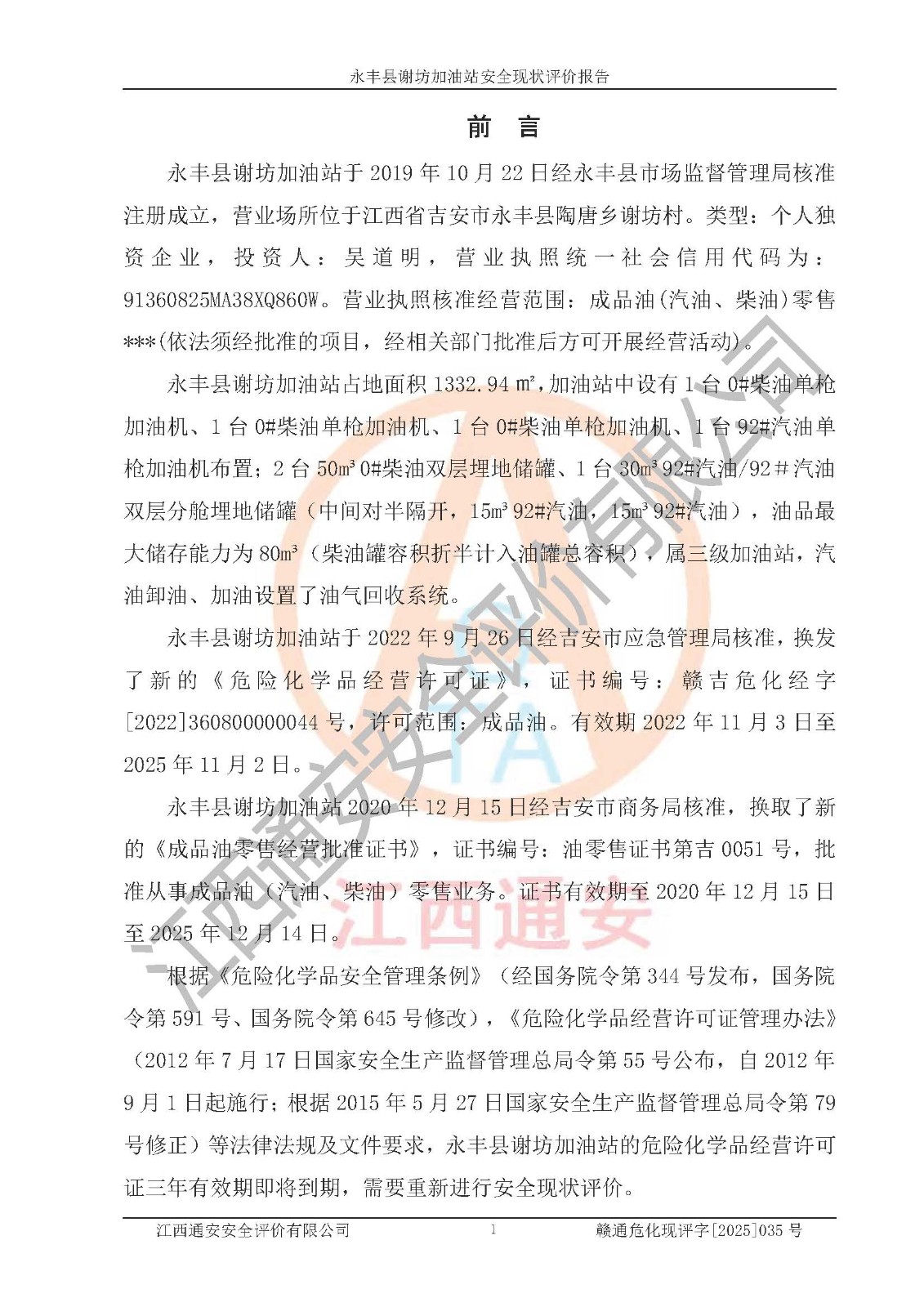 項(xiàng)目名稱 | 永豐縣謝坊加油站安全現(xiàn)狀評(píng)價(jià)報(bào)告 | ||||