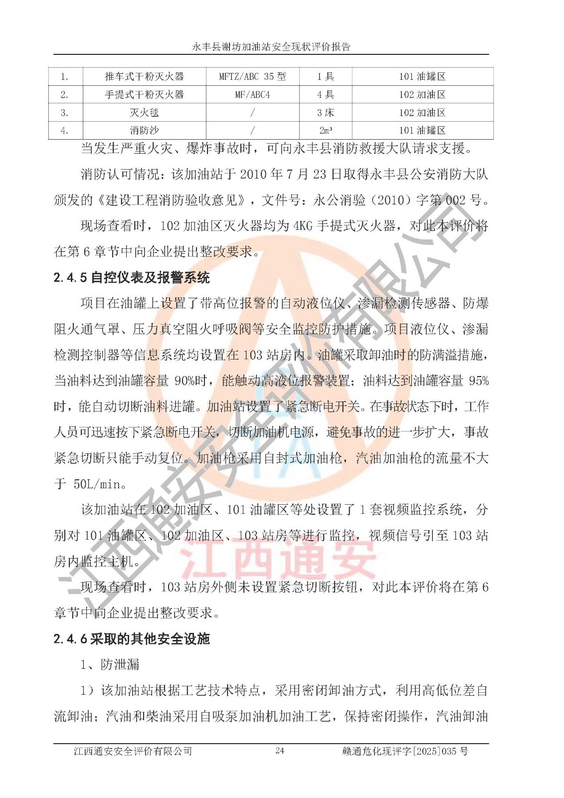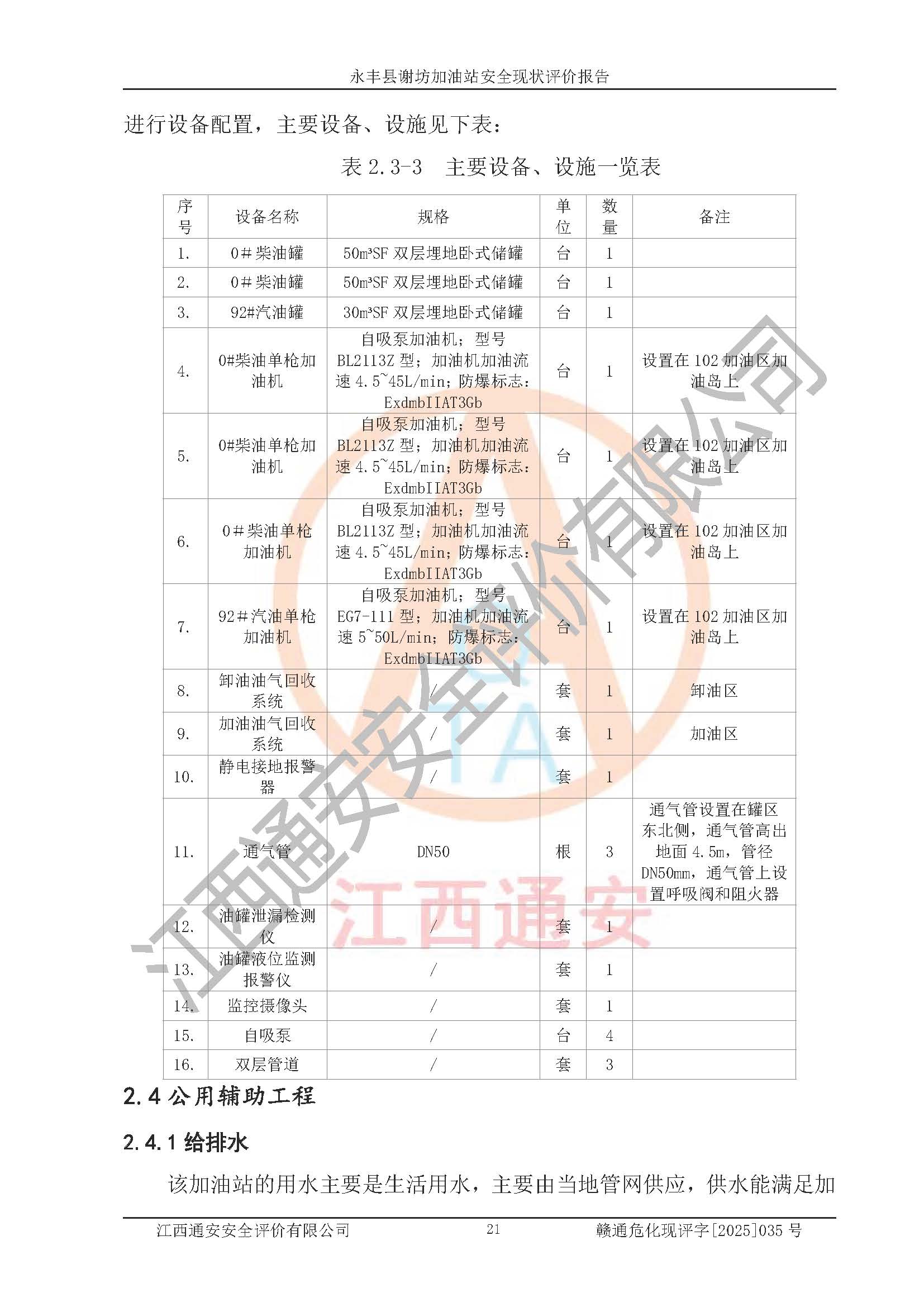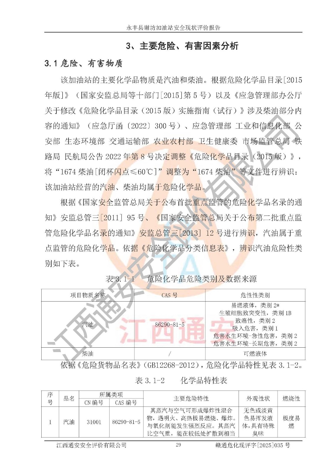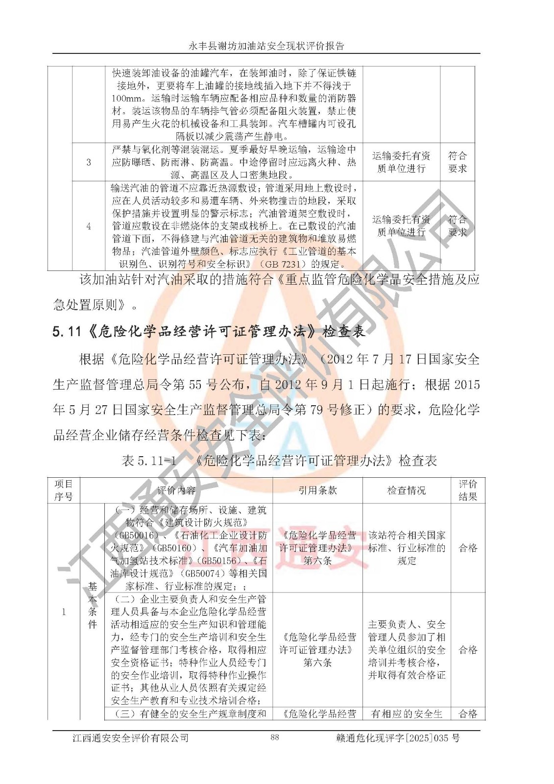 項(xiàng)目名稱 | 永豐縣謝坊加油站安全現(xiàn)狀評(píng)價(jià)報(bào)告 | ||||