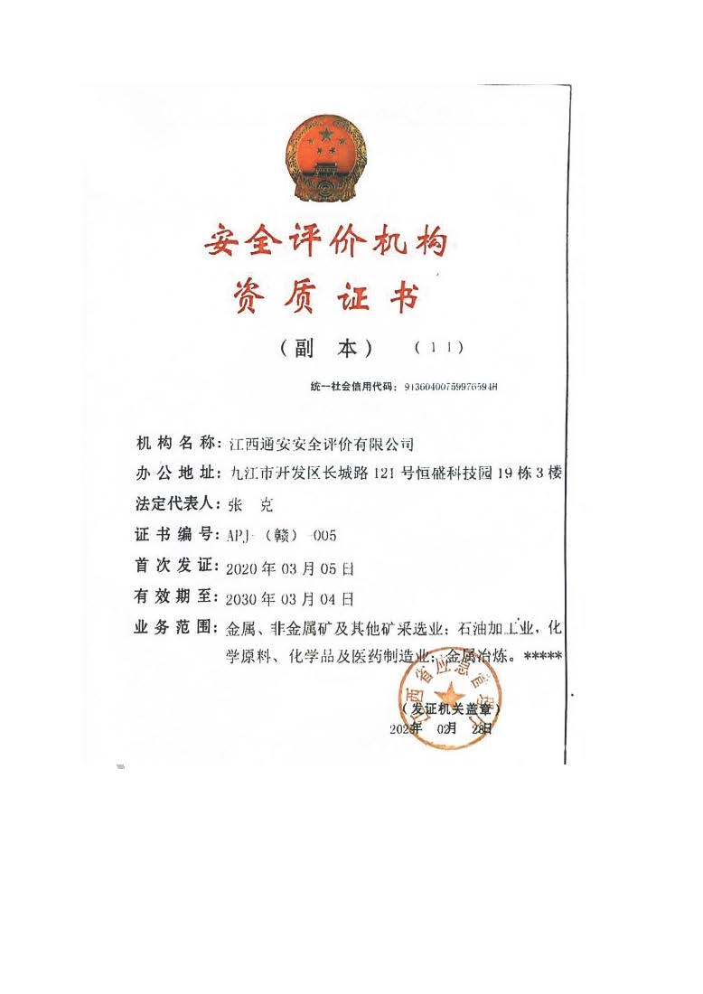 過程控制負(fù)責(zé)人 | 劉赟 | 參與評(píng)價(jià)安全評(píng)價(jià)師 | 謝英煌、龍鏡生、劉于萍、劉赟、 陳嘉鳴 | ||