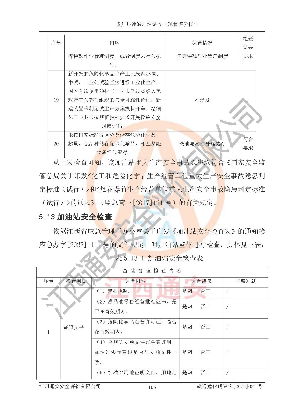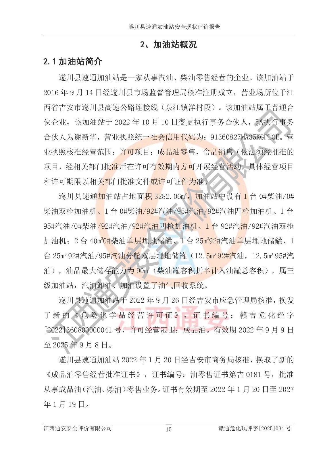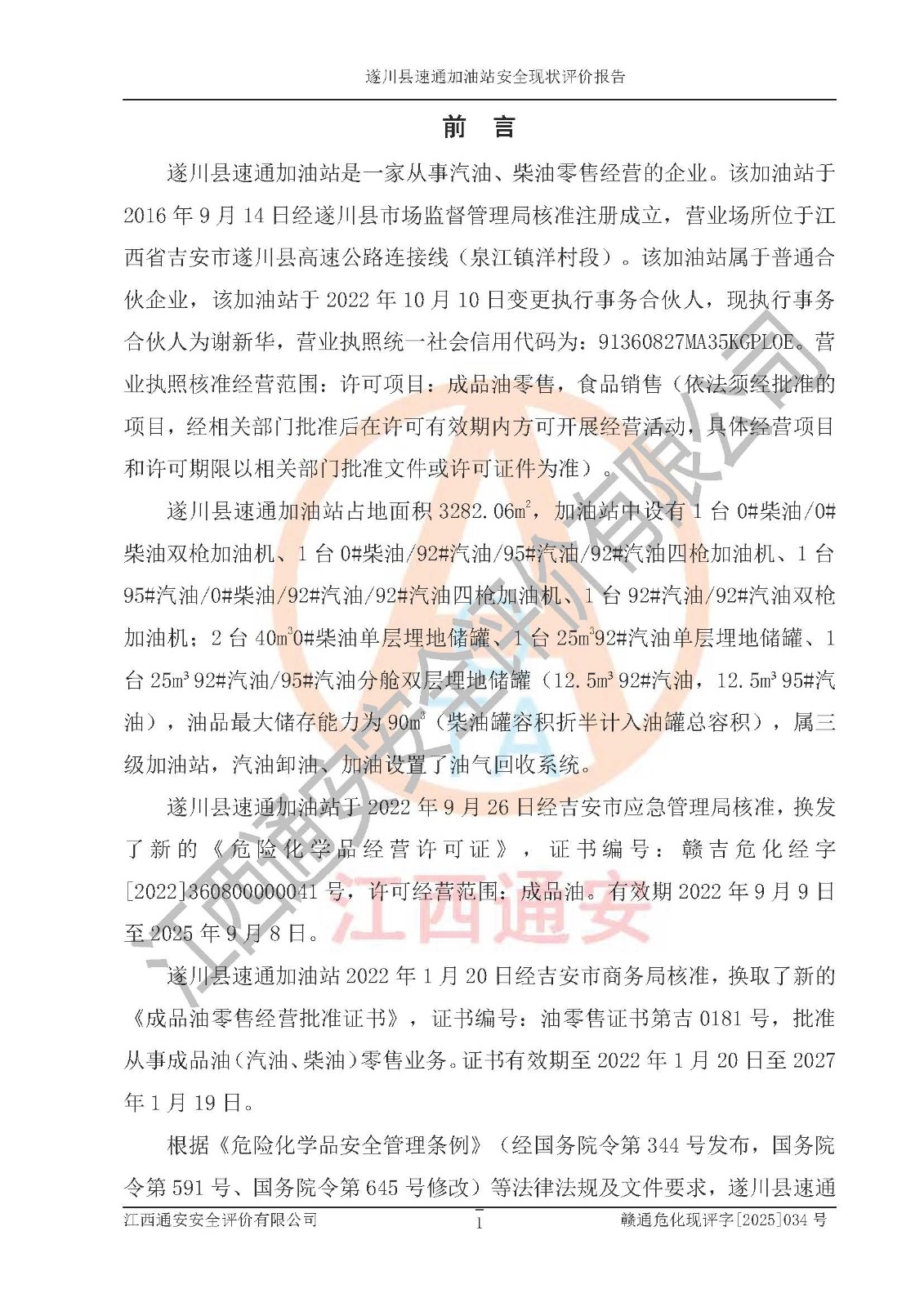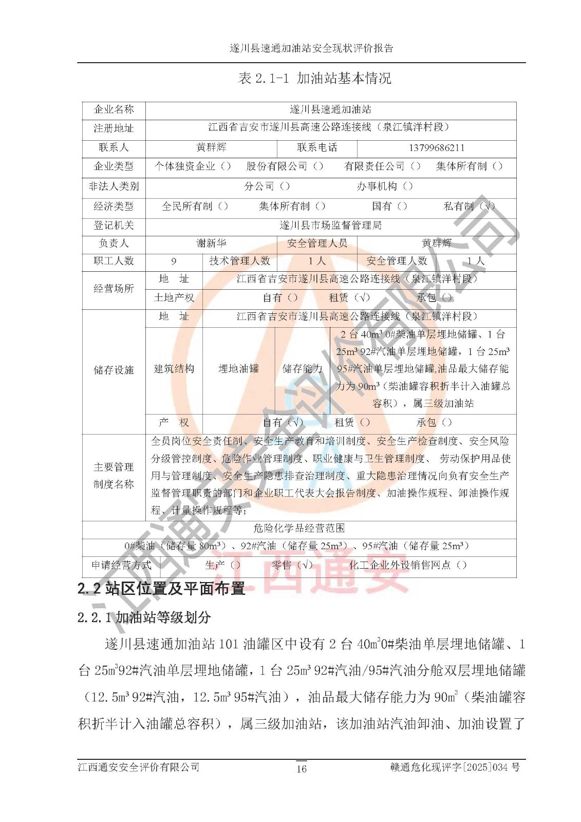 項(xiàng)目名稱 | 遂川縣速通加油站安全現(xiàn)狀評價(jià)報(bào)告 | ||||