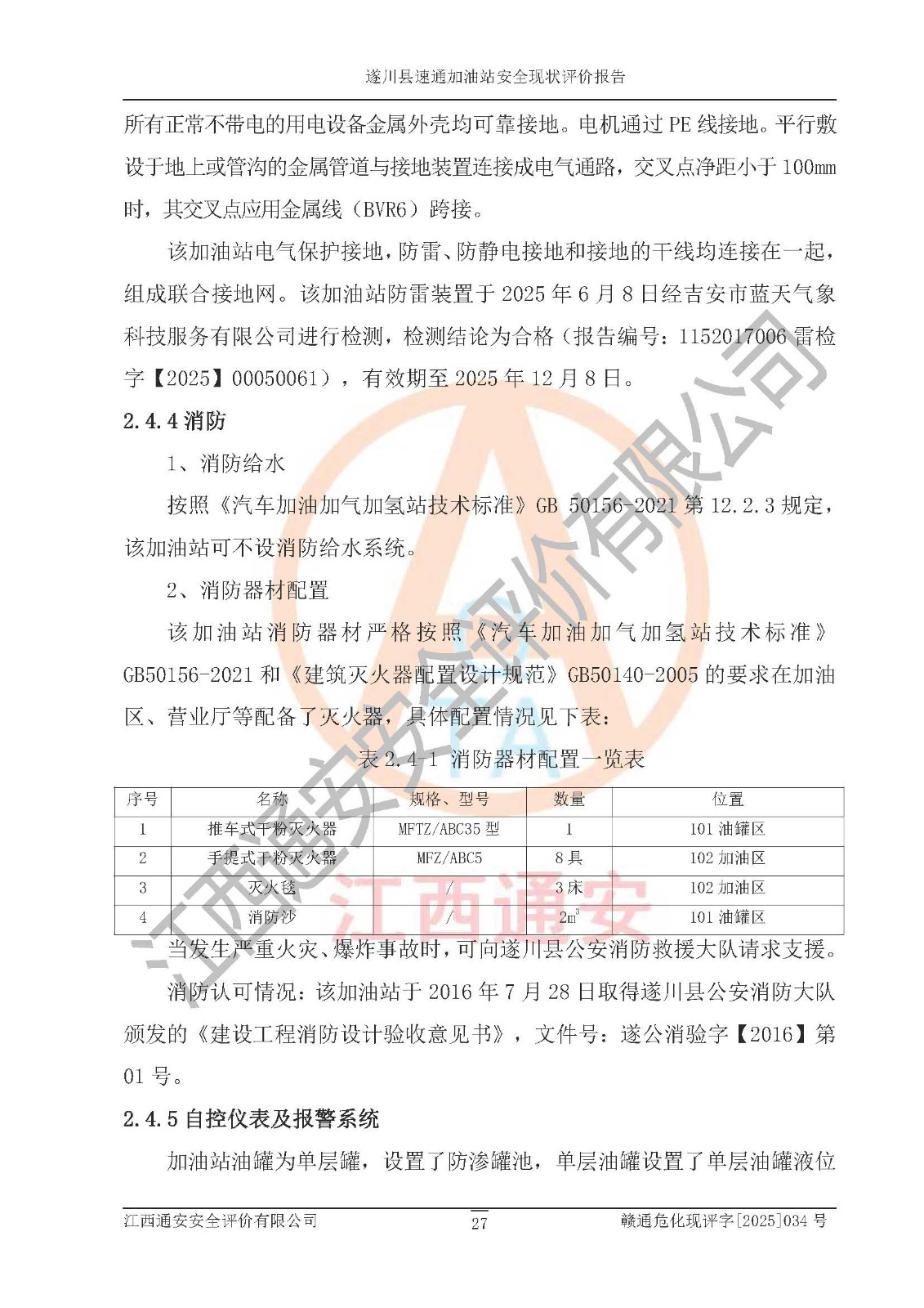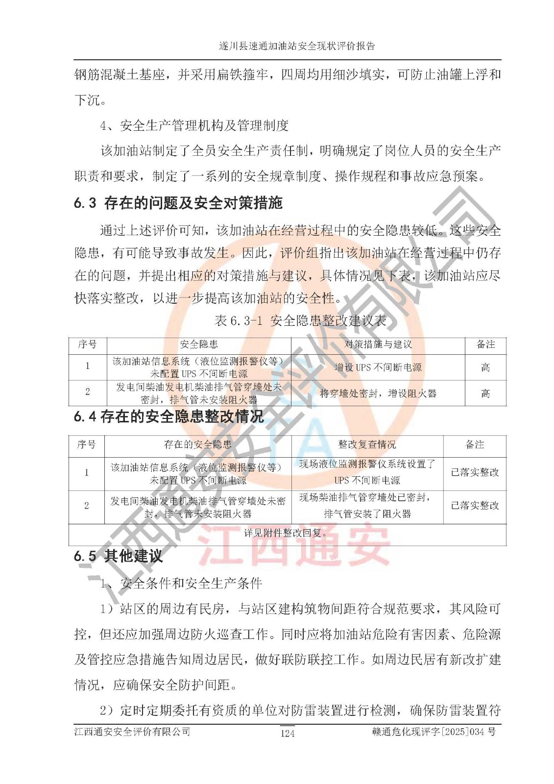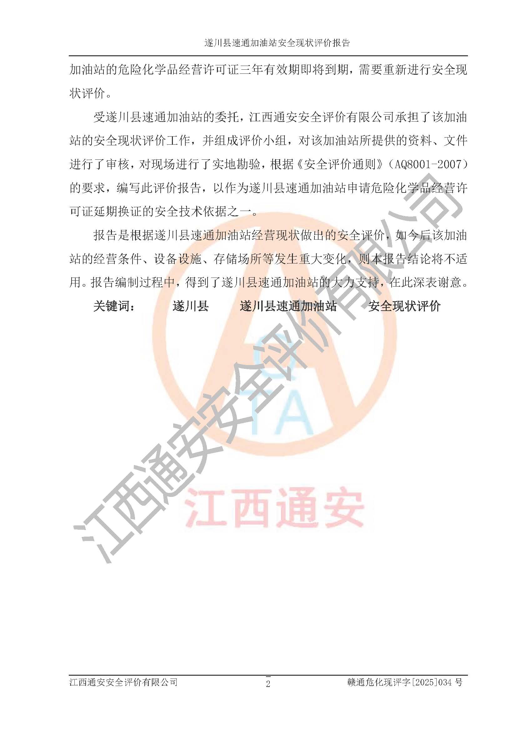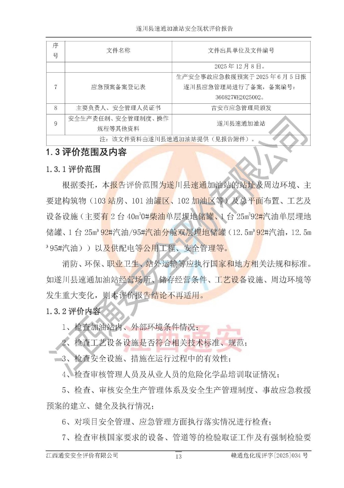 項(xiàng)目名稱 | 遂川縣速通加油站安全現(xiàn)狀評價(jià)報(bào)告 | ||||