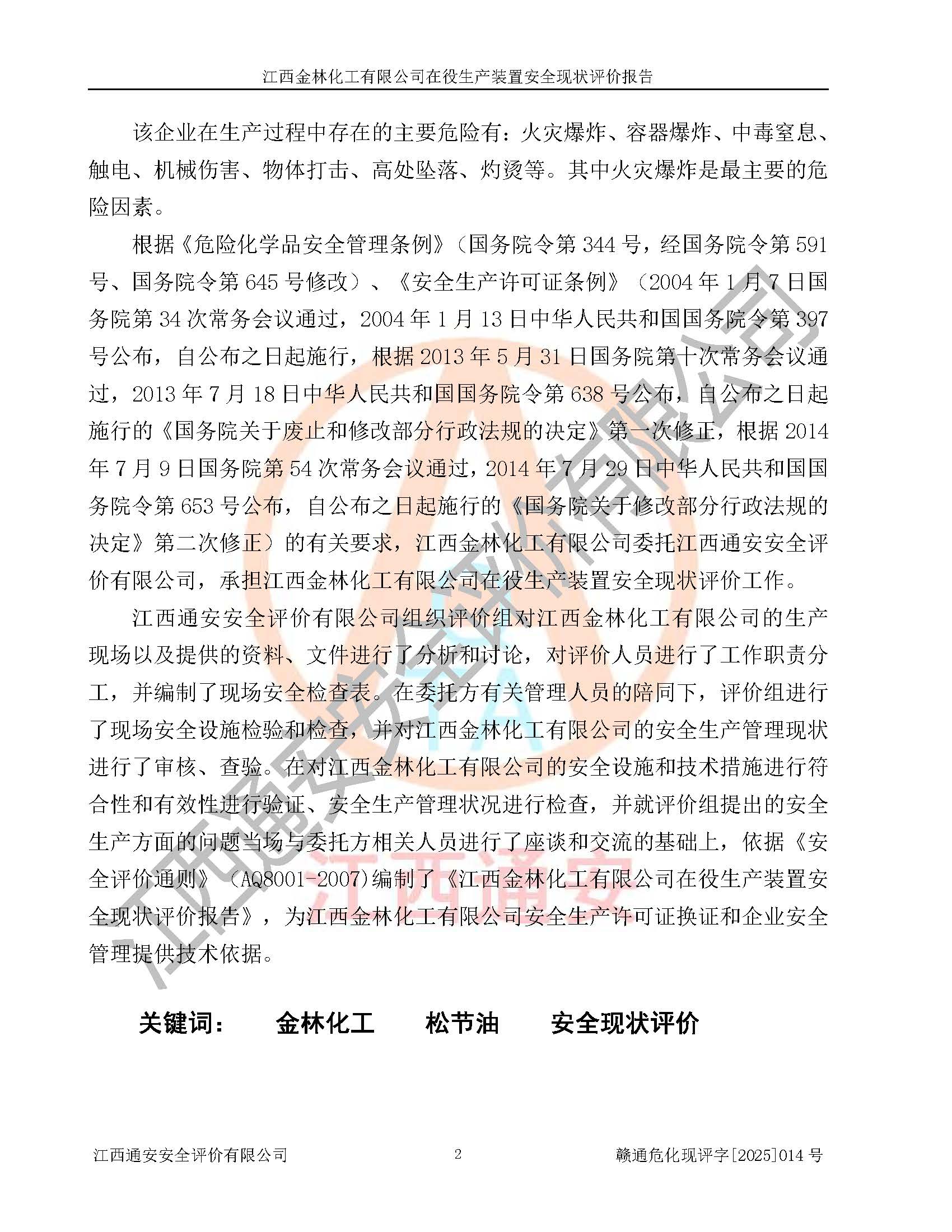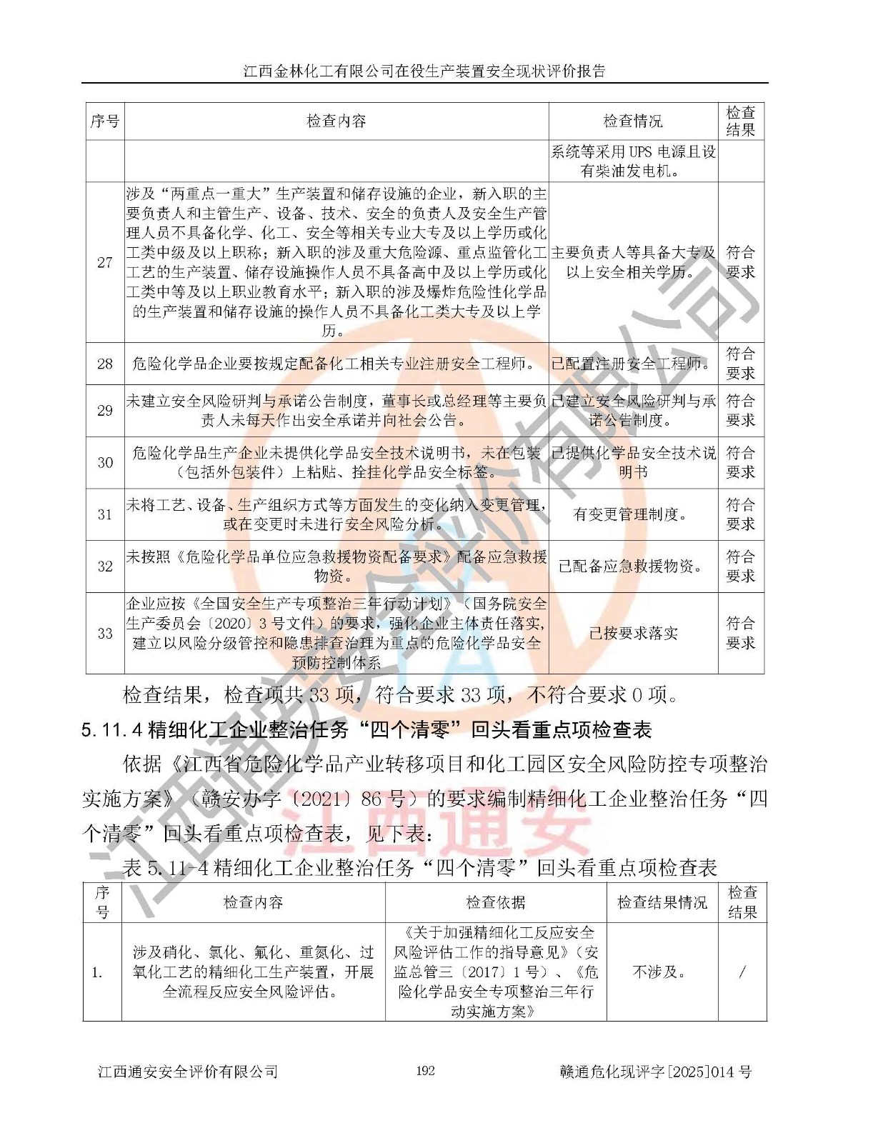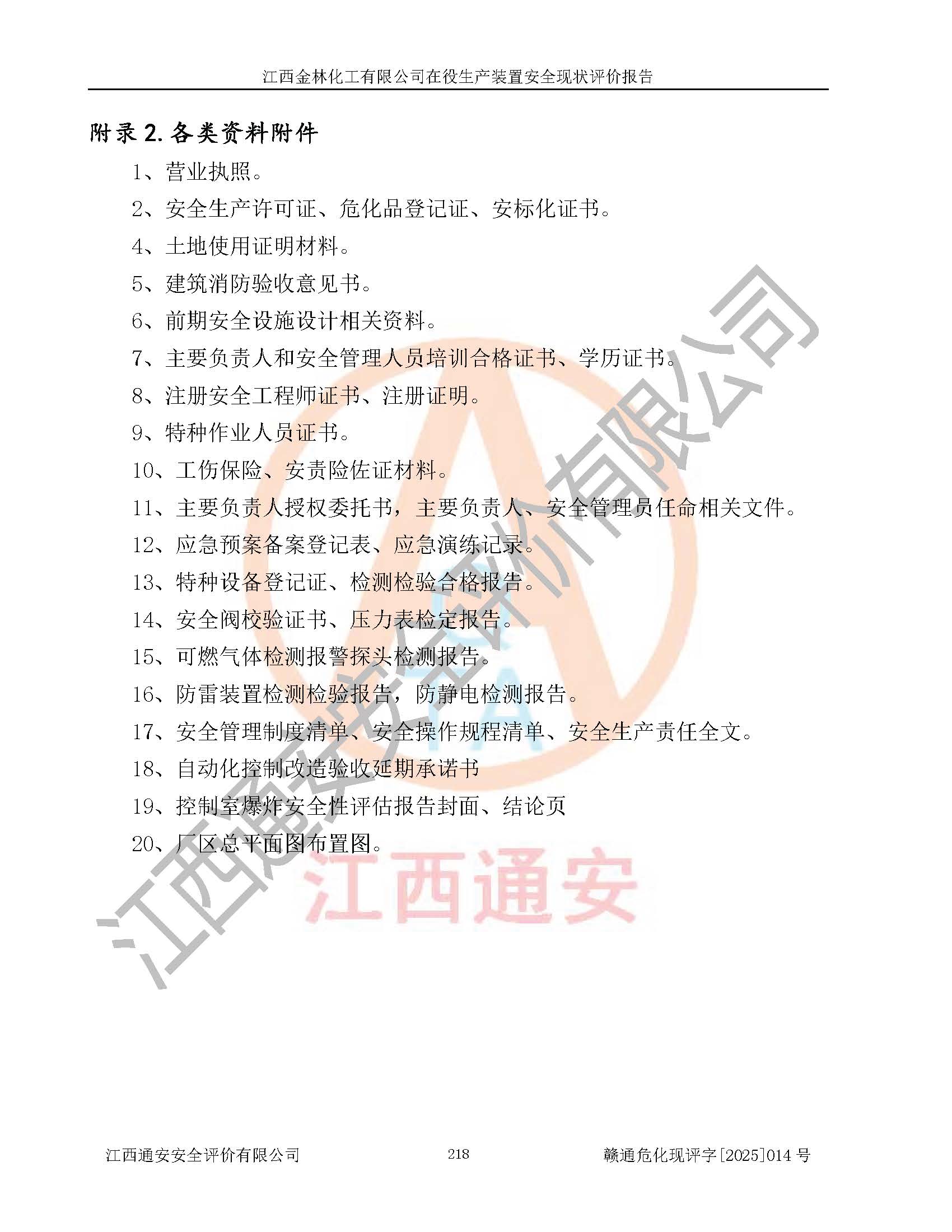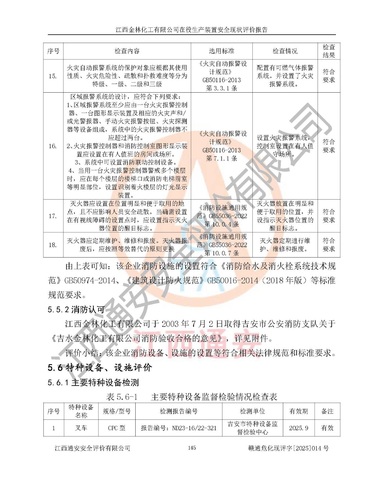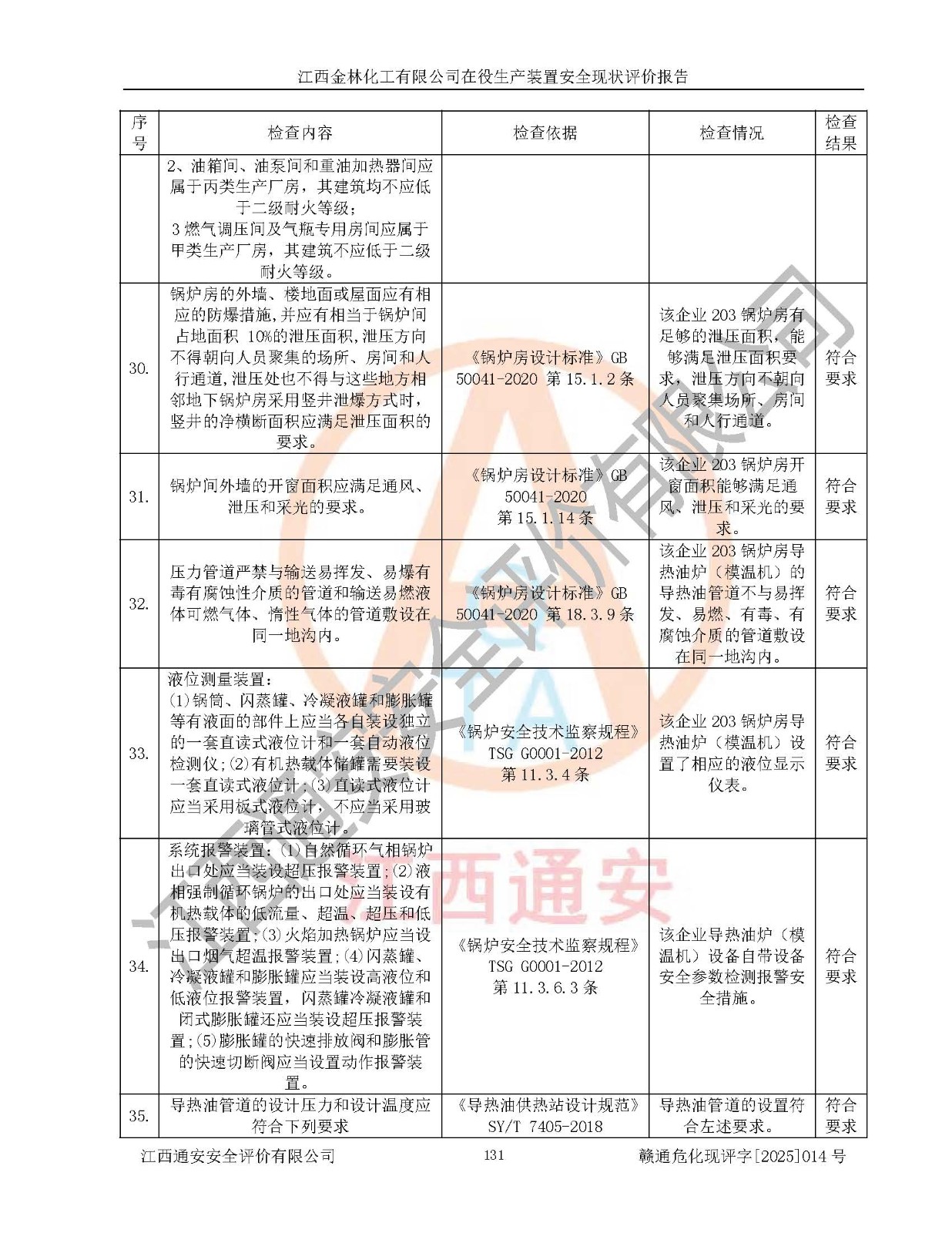 評價報告名稱 | 江西金林化工有限公司在役生產(chǎn)裝置安全現(xiàn)狀評價報告 | |||