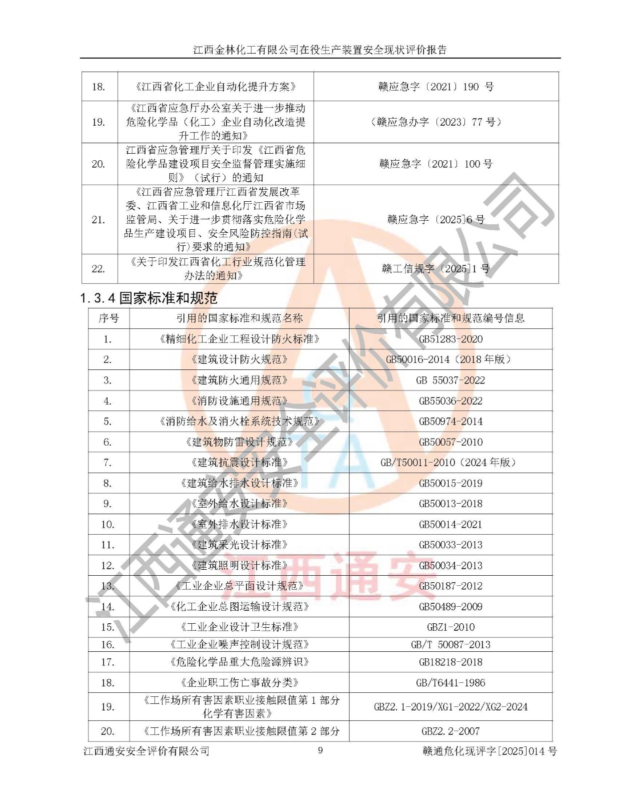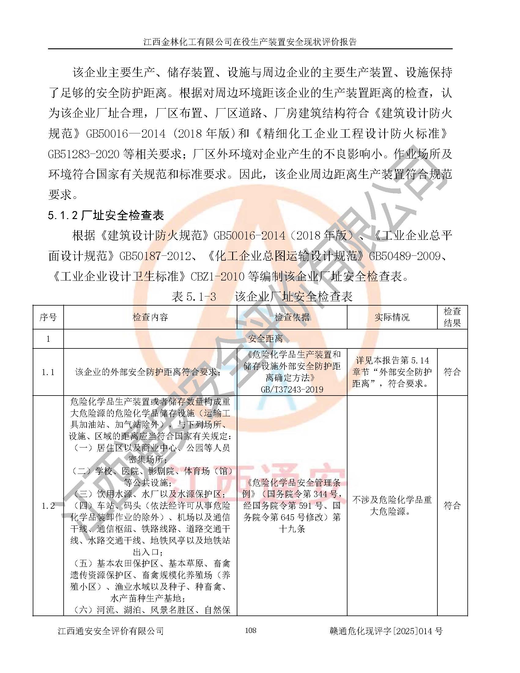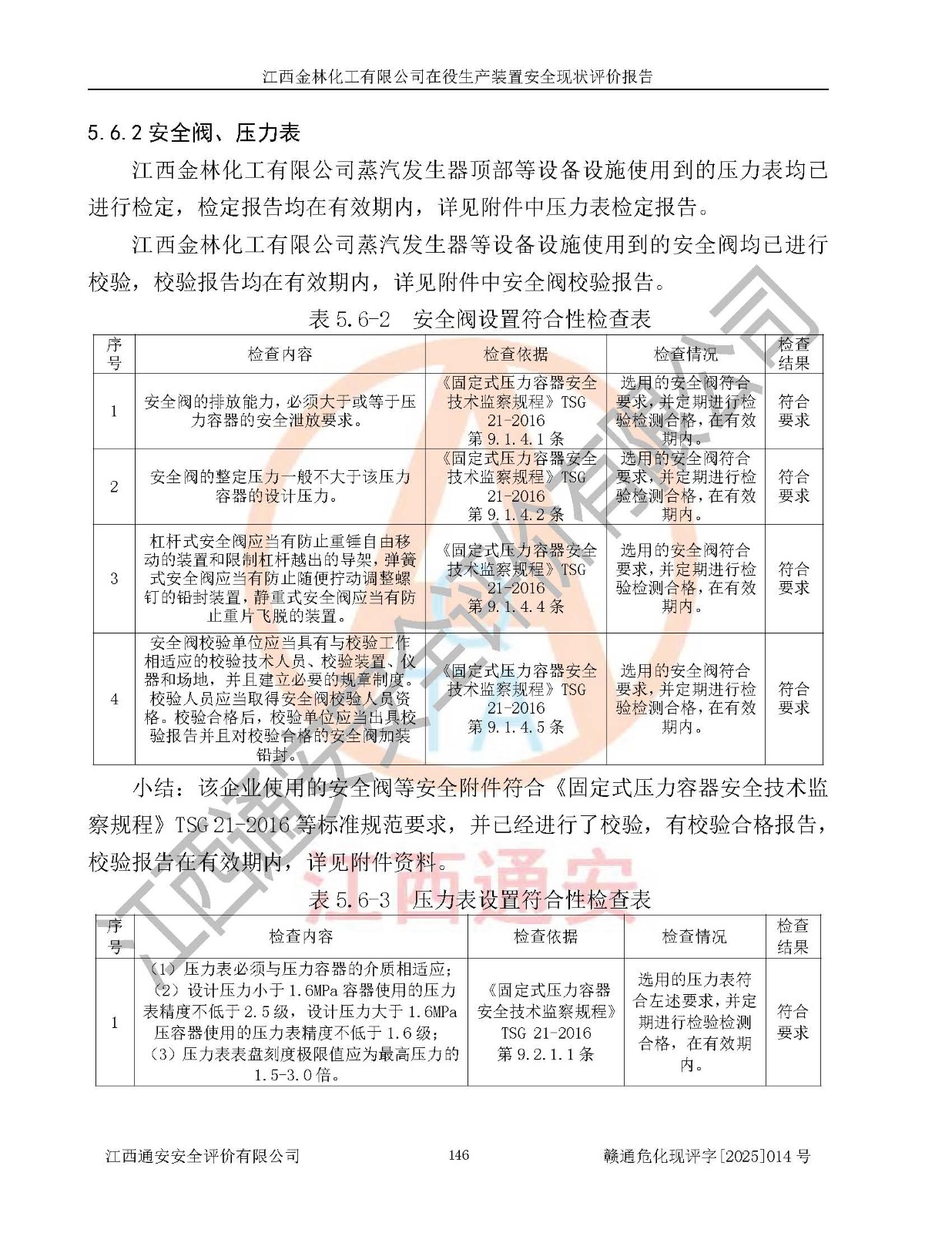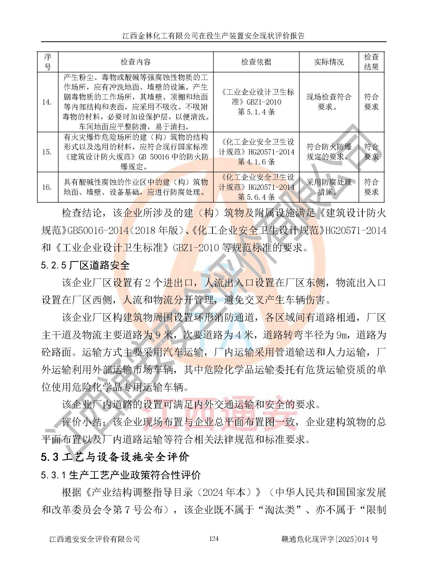 評價報告名稱 | 江西金林化工有限公司在役生產(chǎn)裝置安全現(xiàn)狀評價報告 | |||