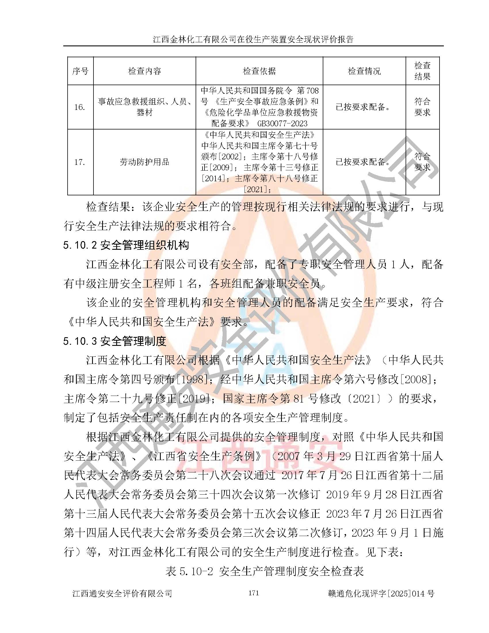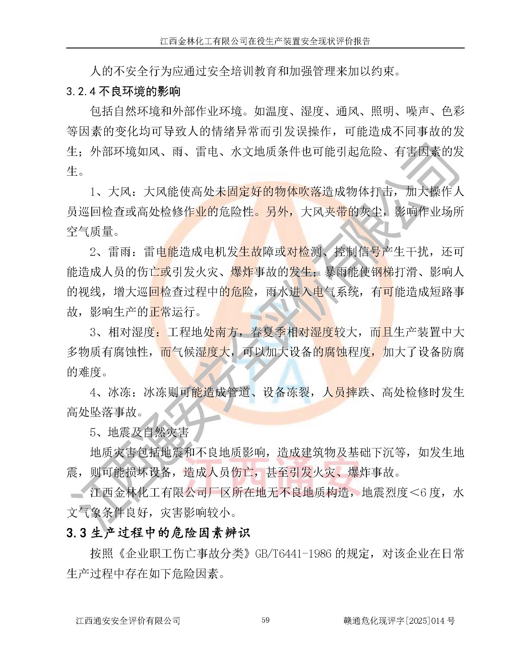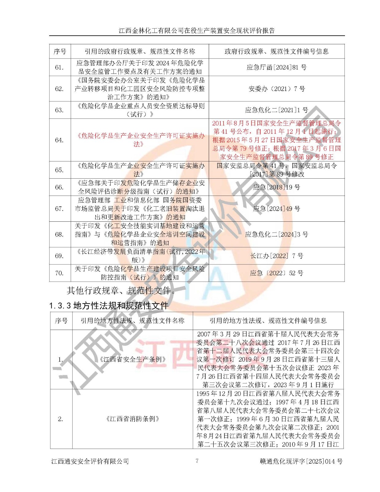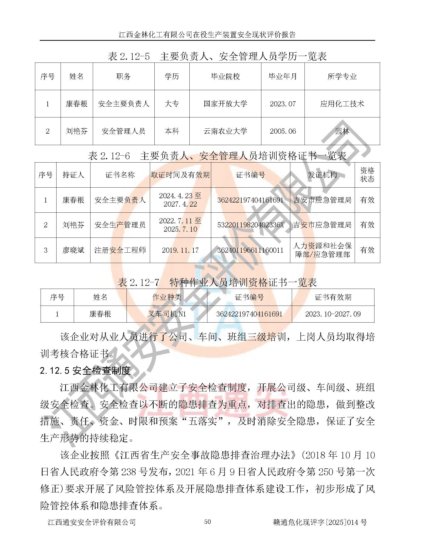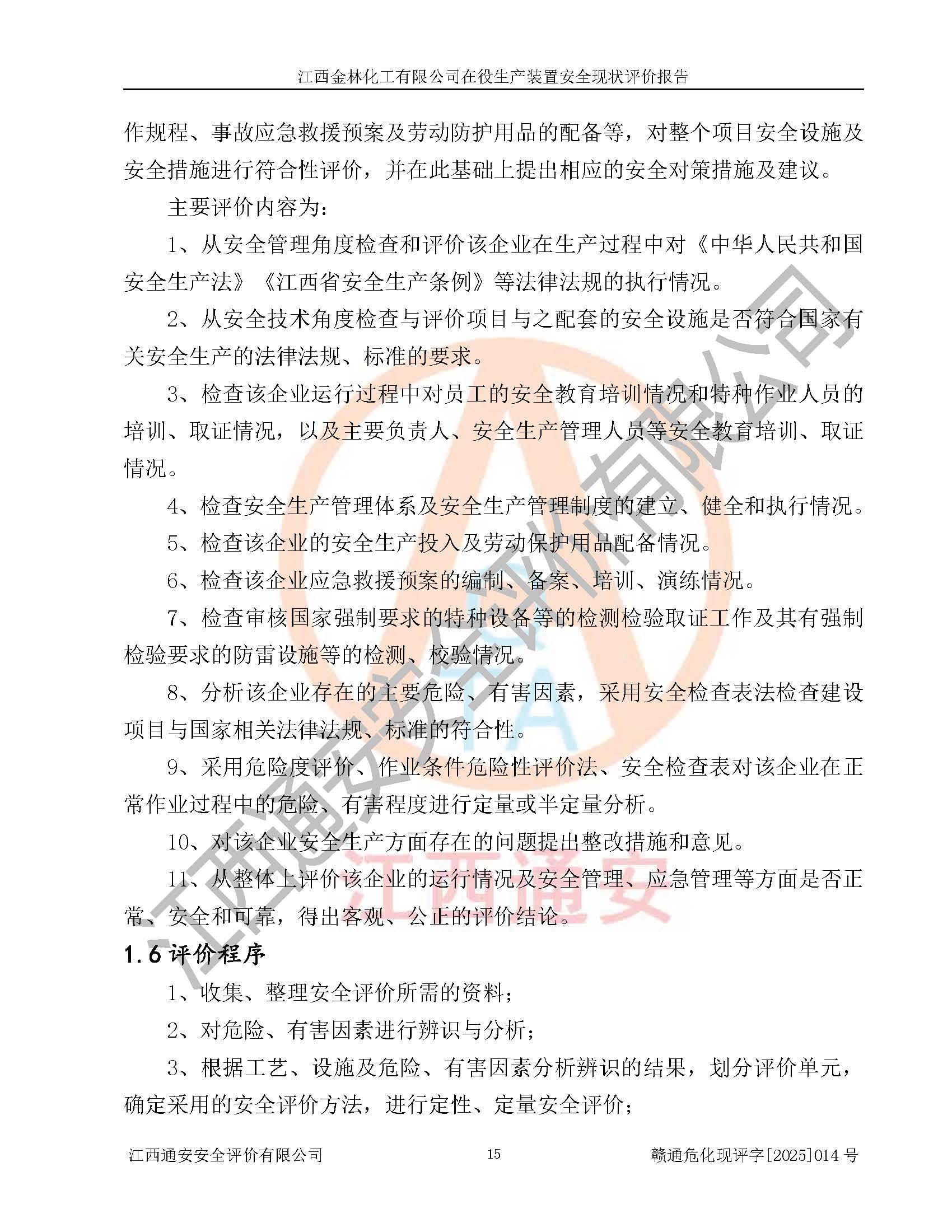 評價報告名稱 | 江西金林化工有限公司在役生產(chǎn)裝置安全現(xiàn)狀評價報告 | |||